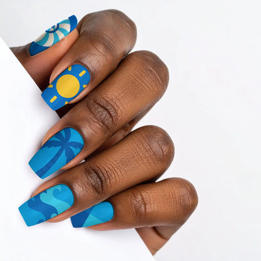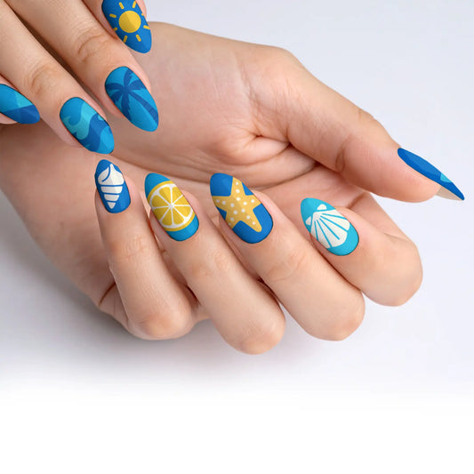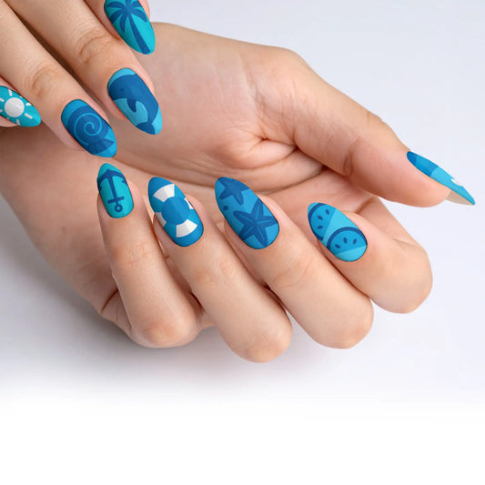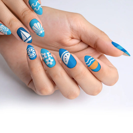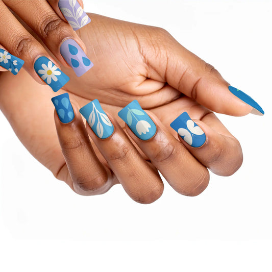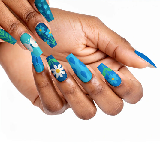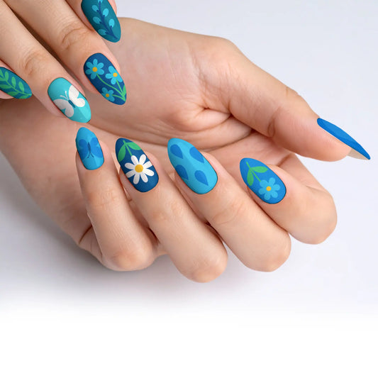 Azure Blossom Vibes Blue Spring Press-On Nails
