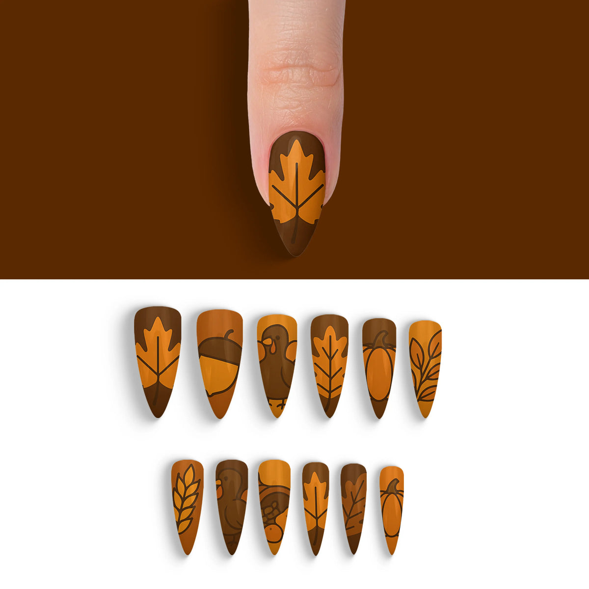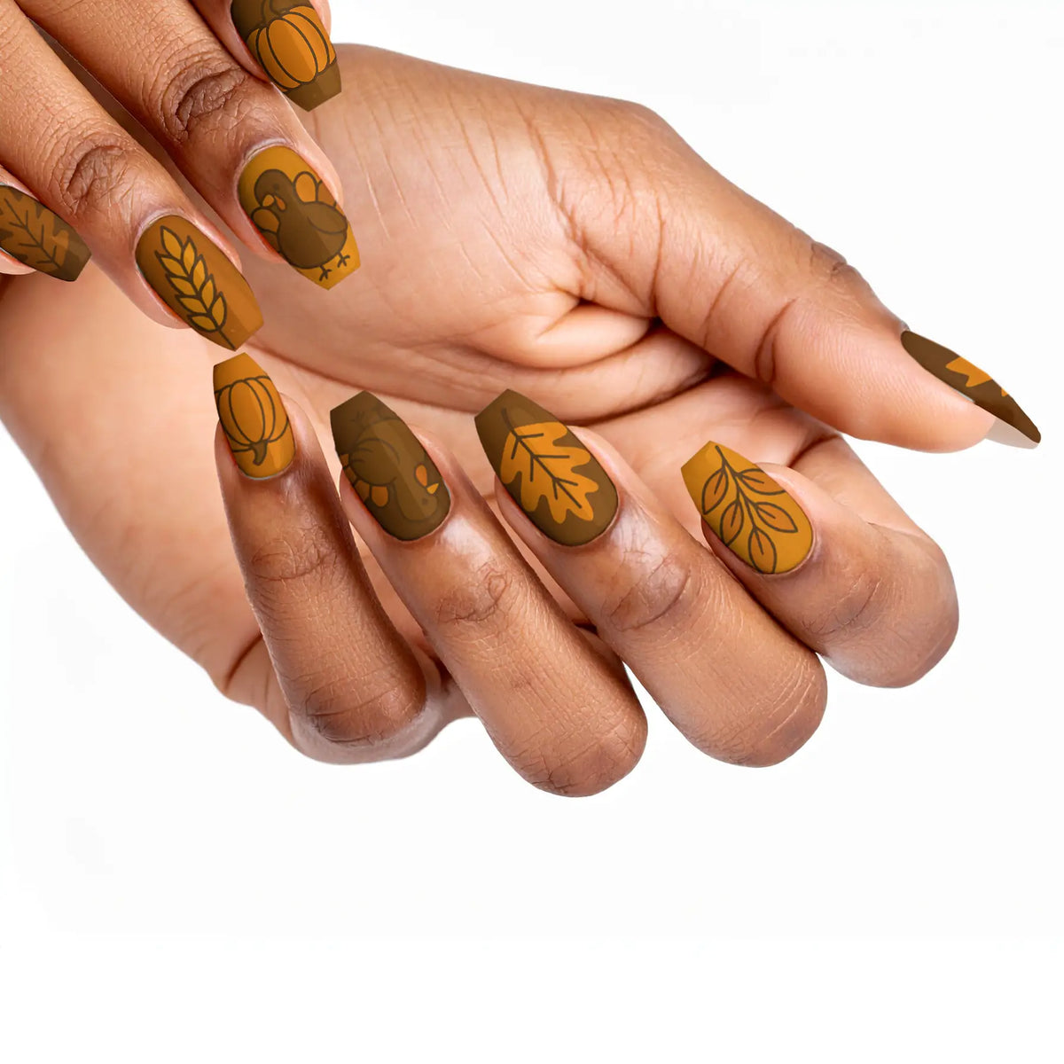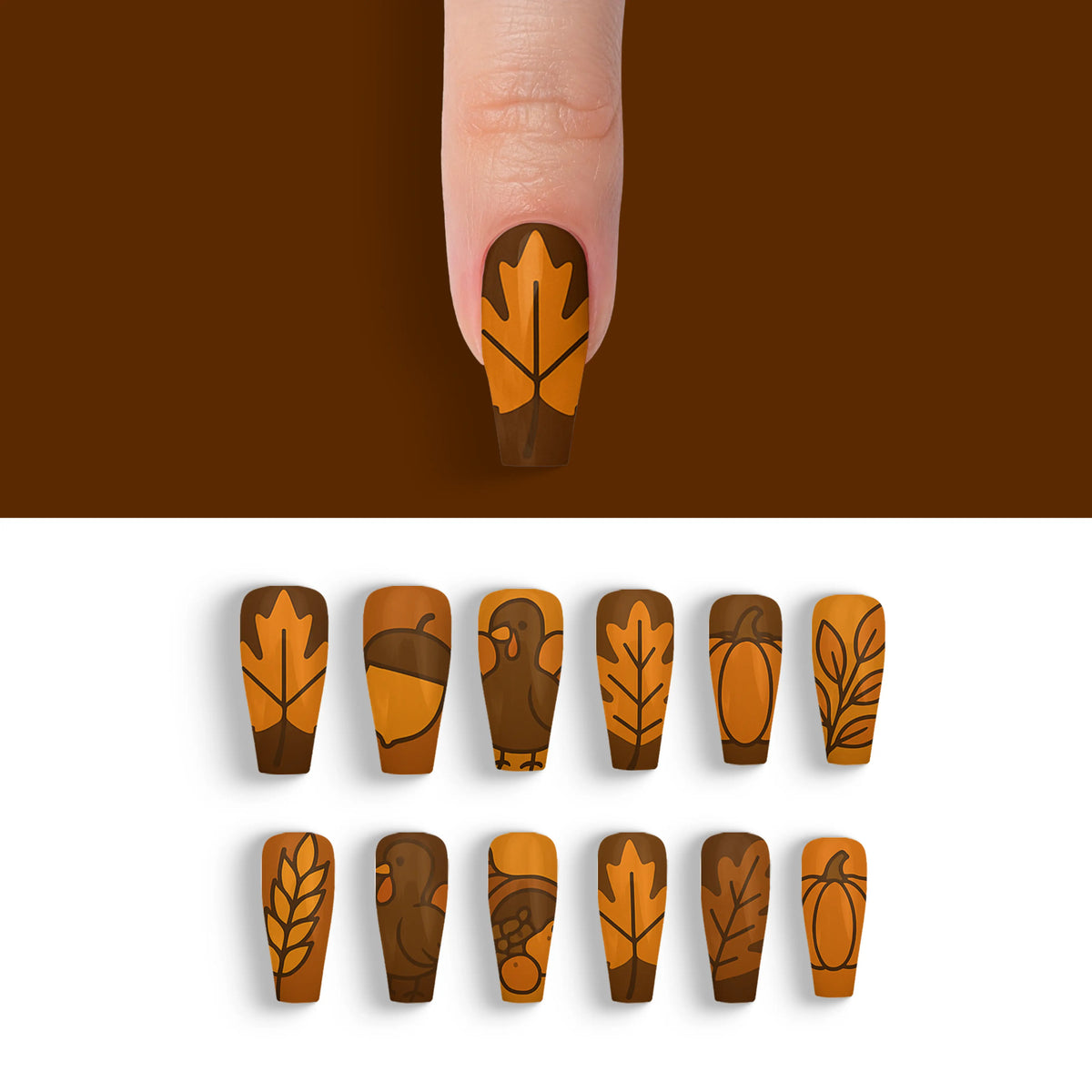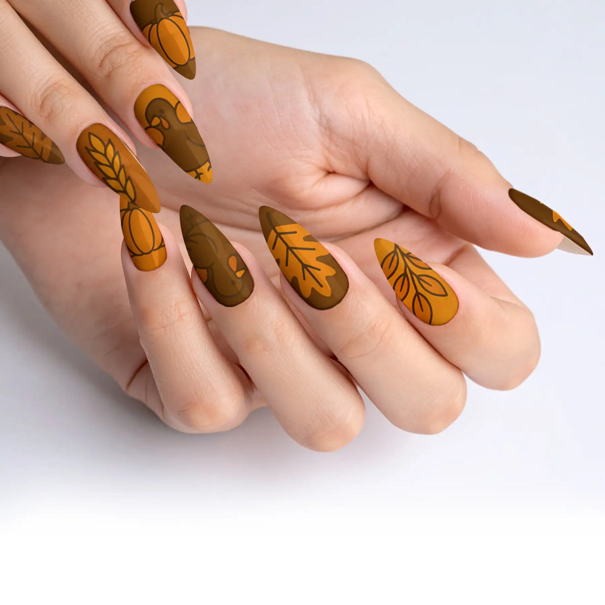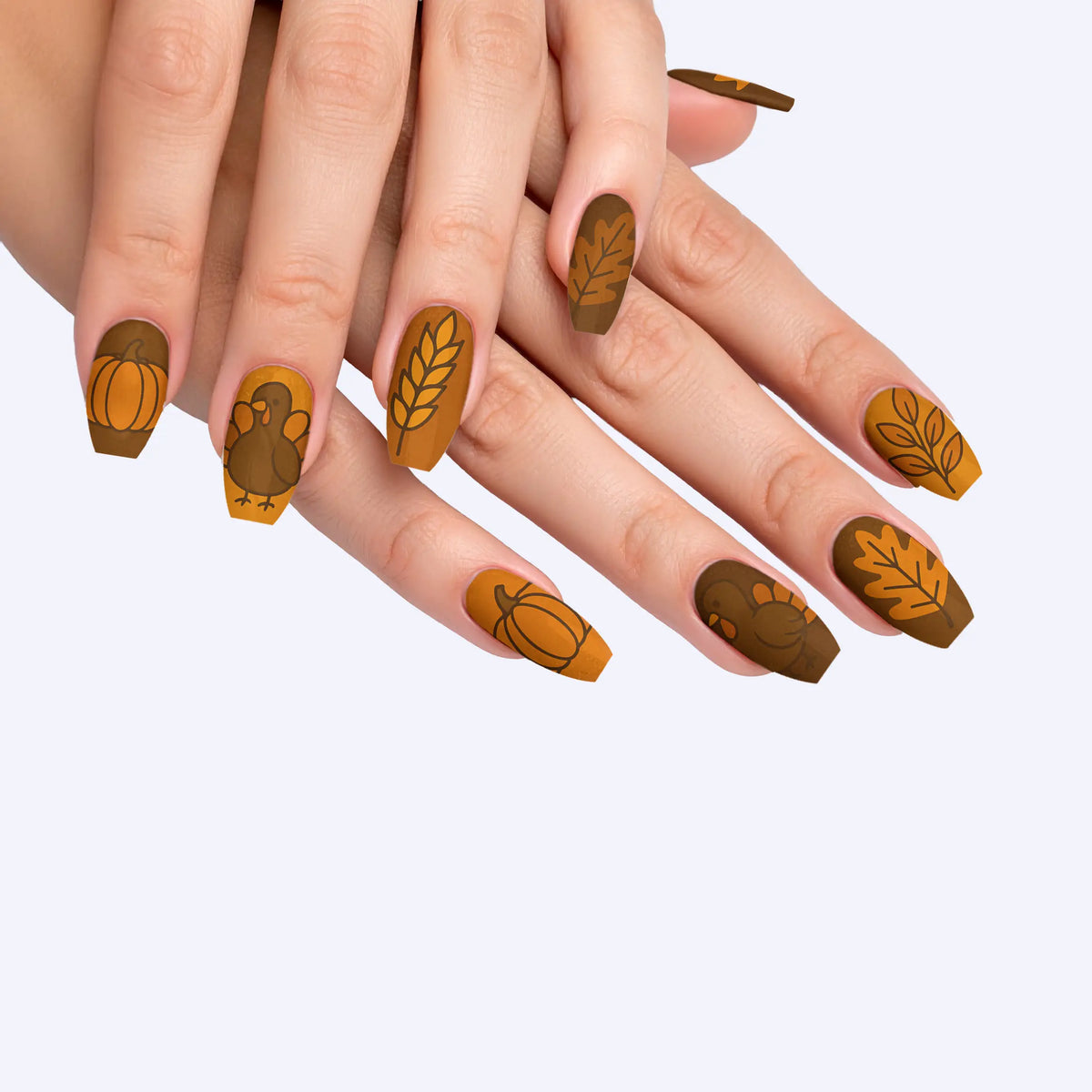 Autumn Feast Brown Thanksgiving Press-On Nails