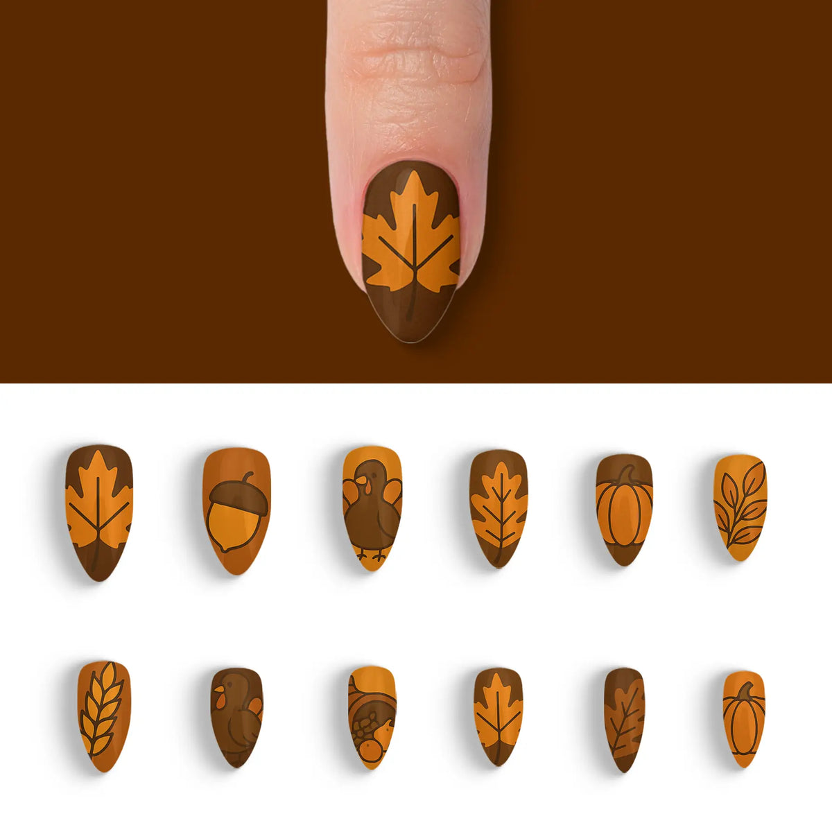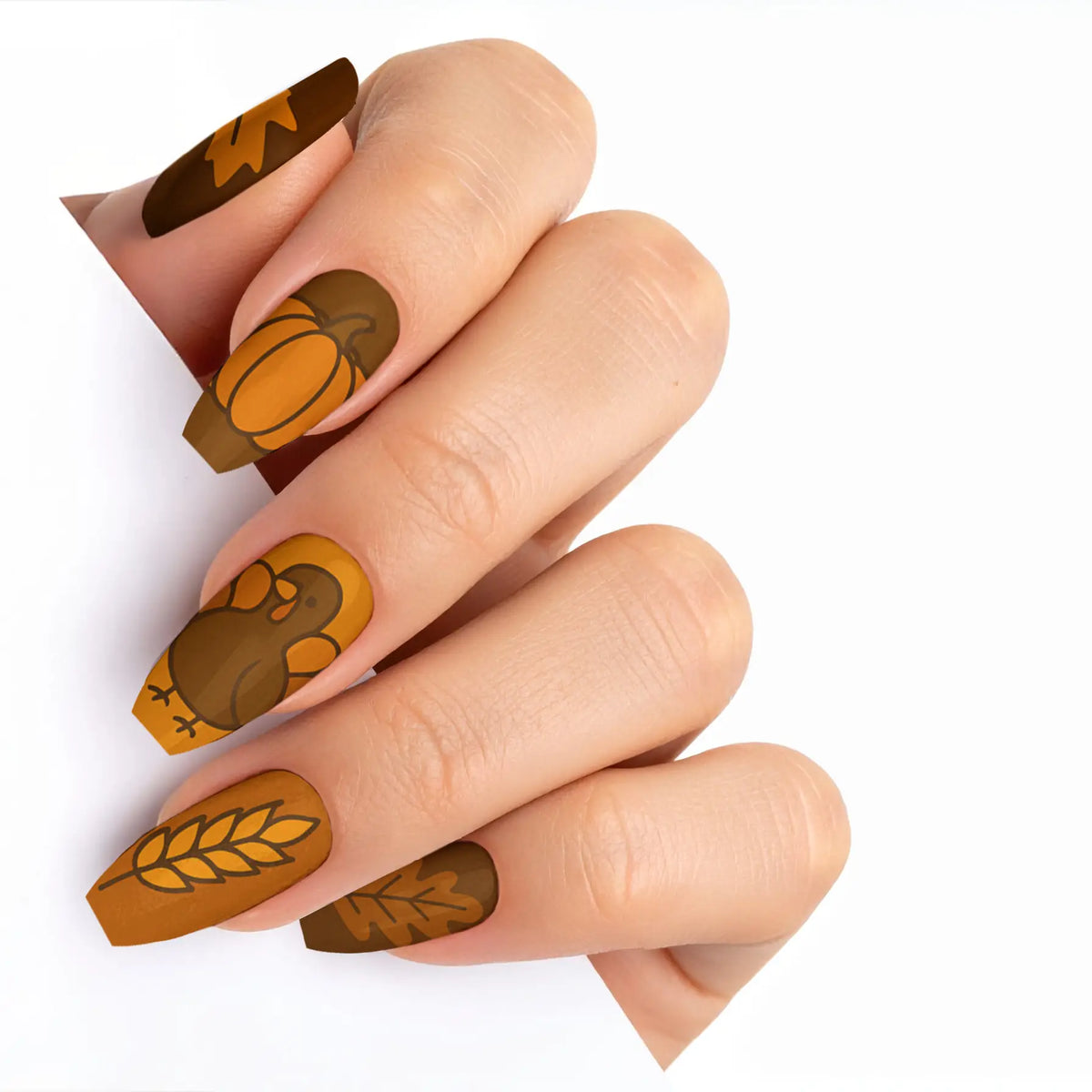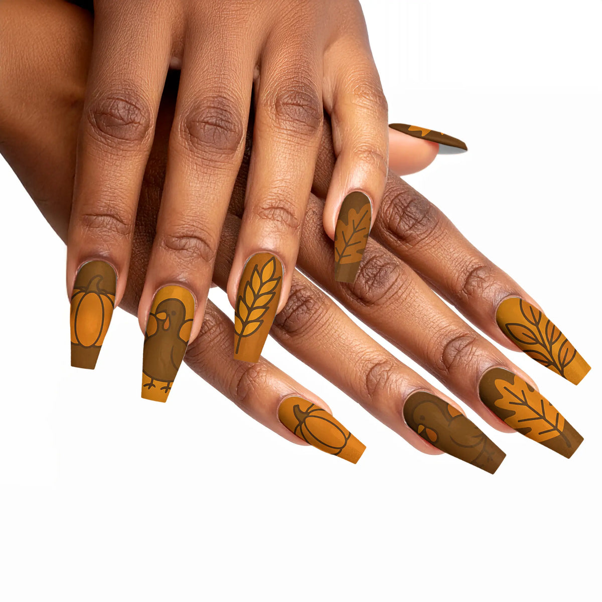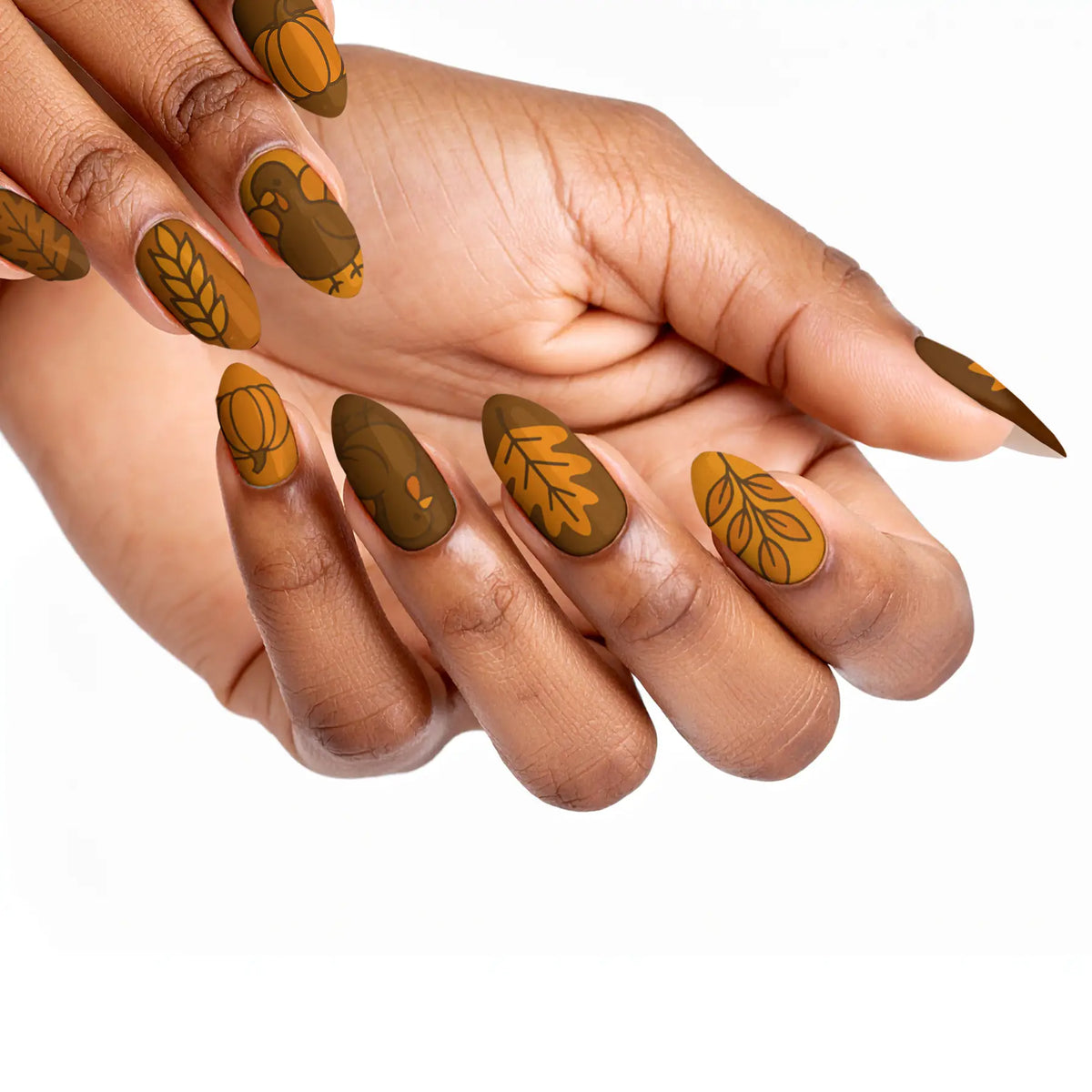 Autumn Feast Brown Thanksgiving Press-On Nails