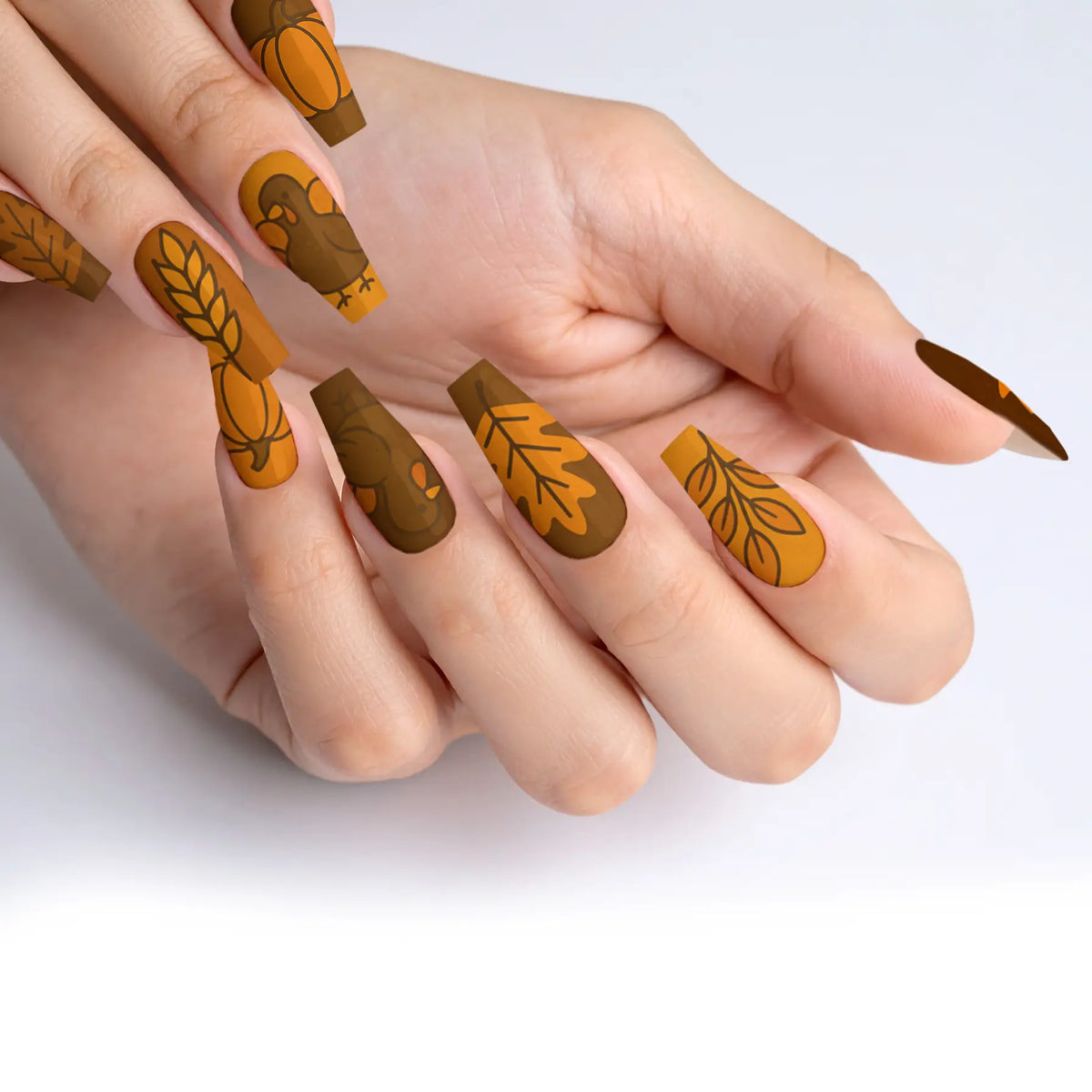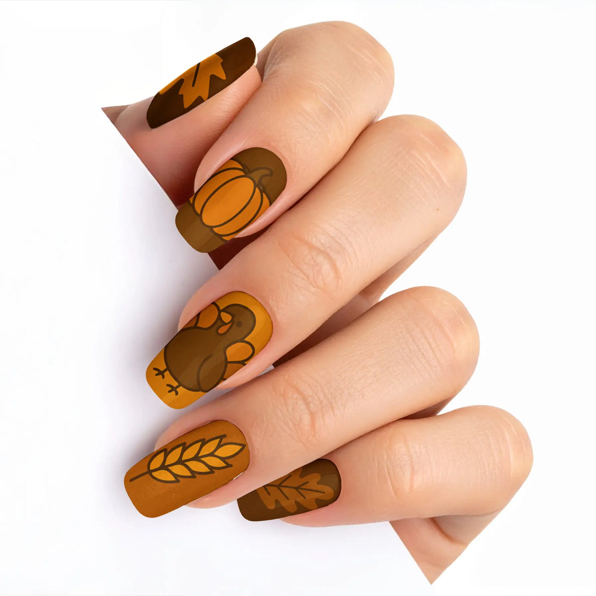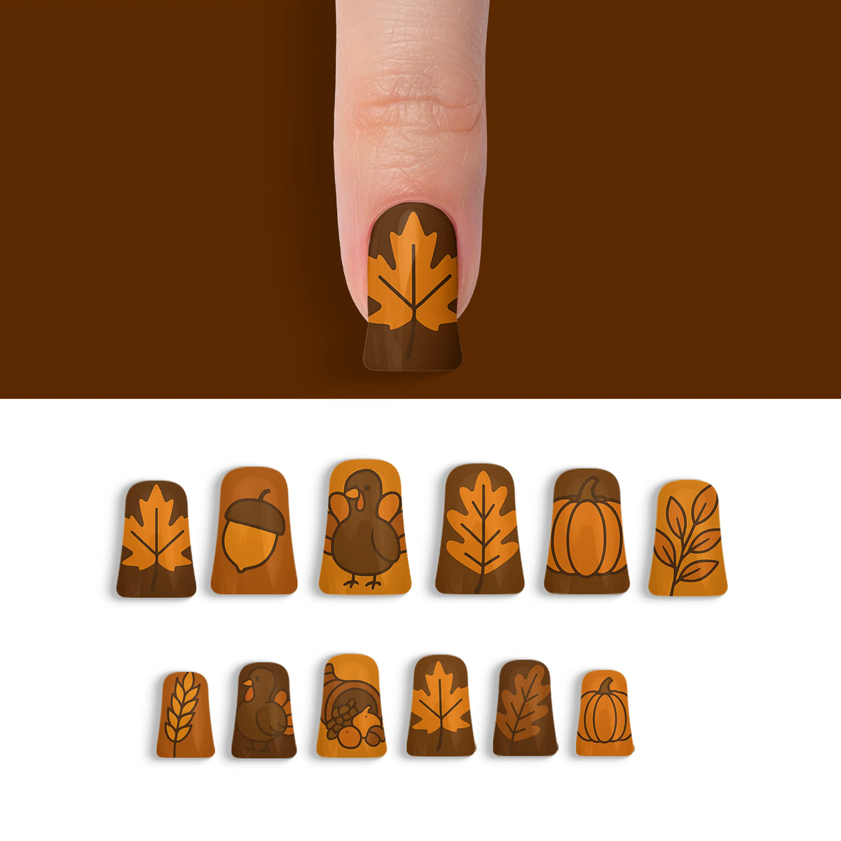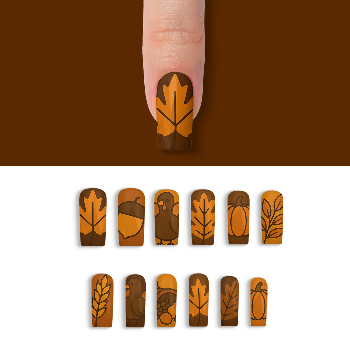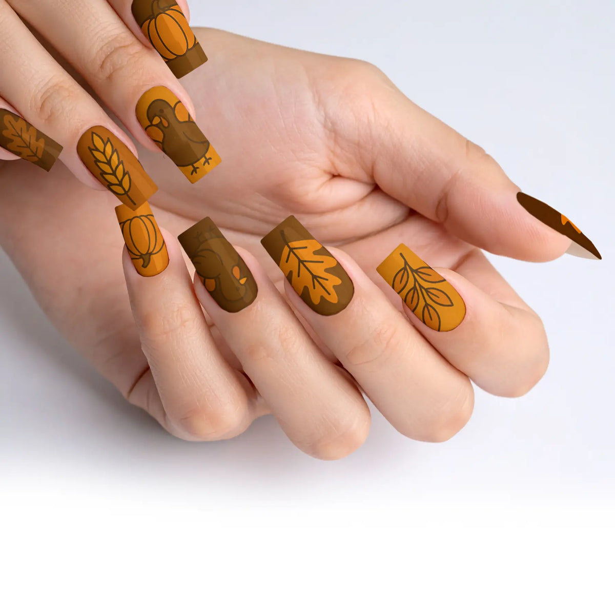 Autumn Feast Brown Thanksgiving Press-On Nails
