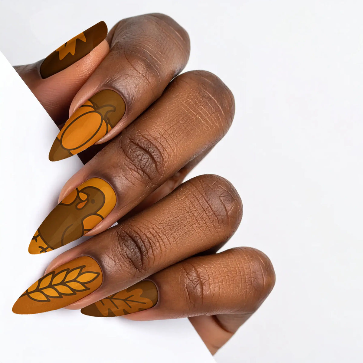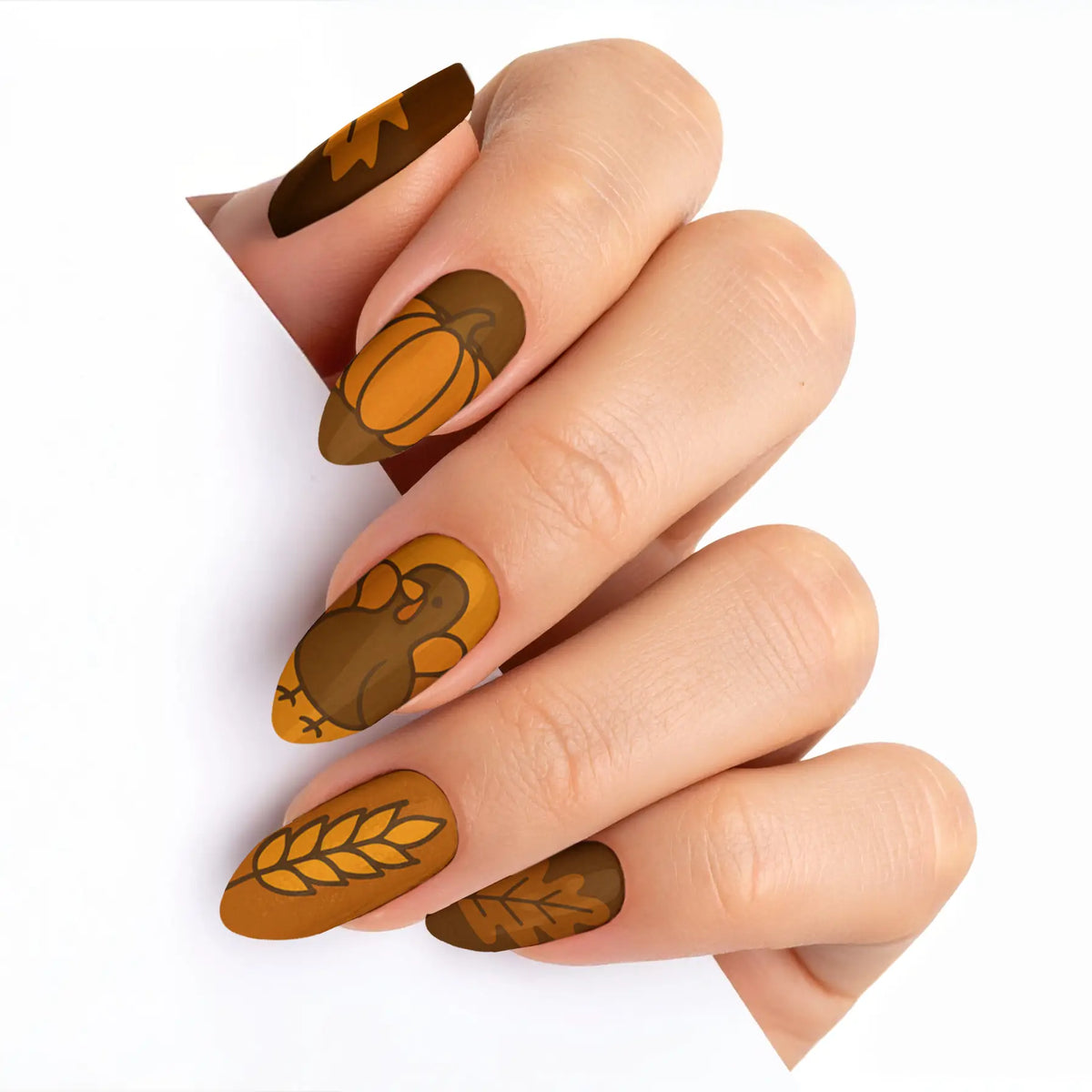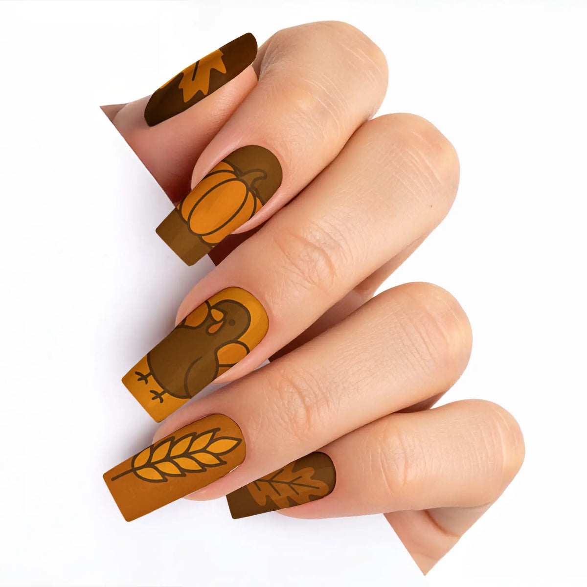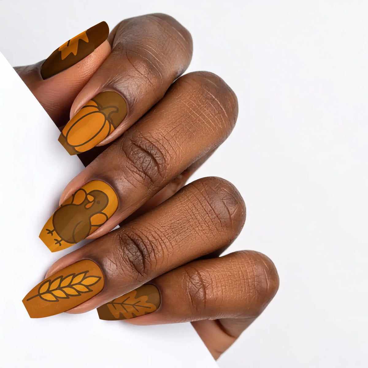 Autumn Feast Brown Thanksgiving Press-On Nails