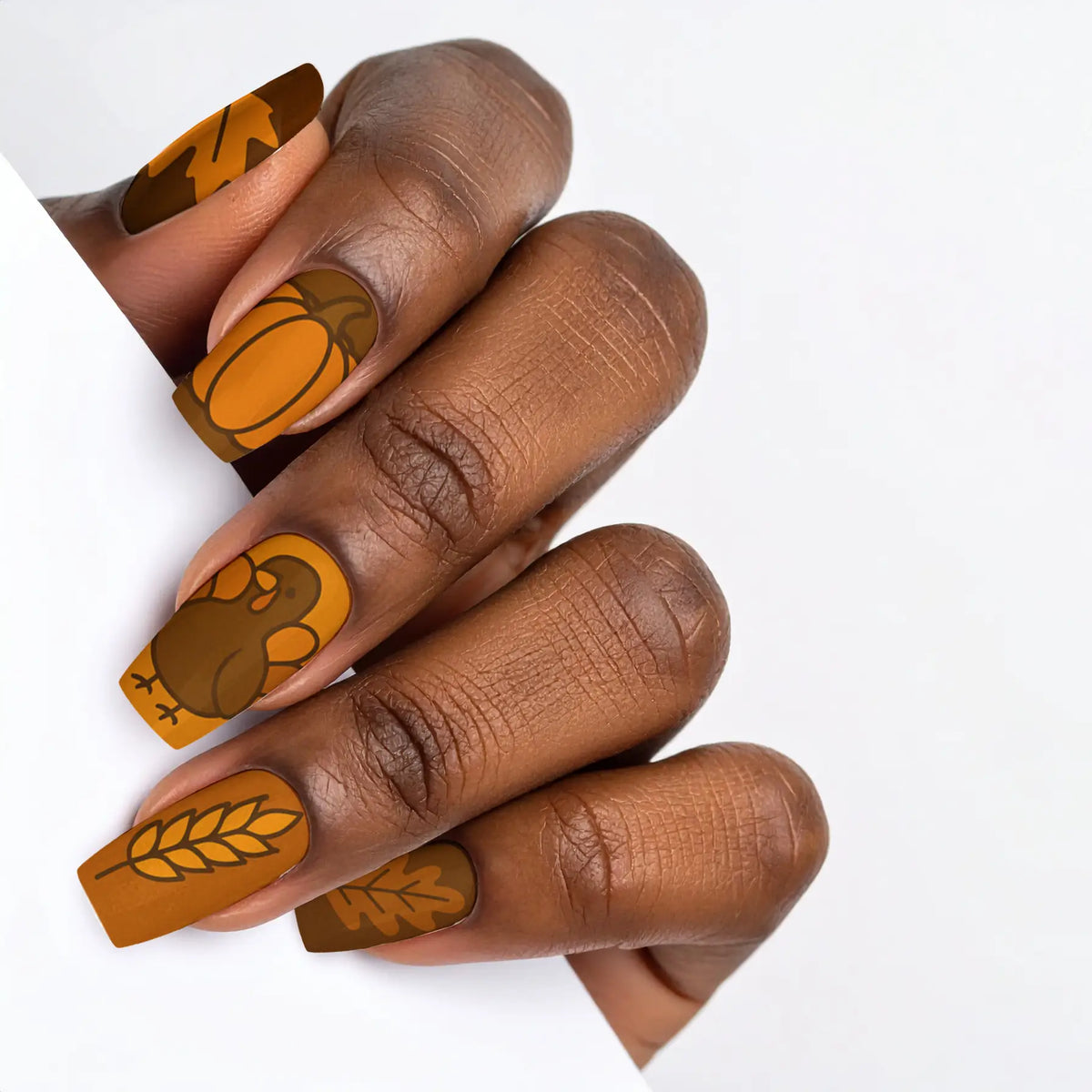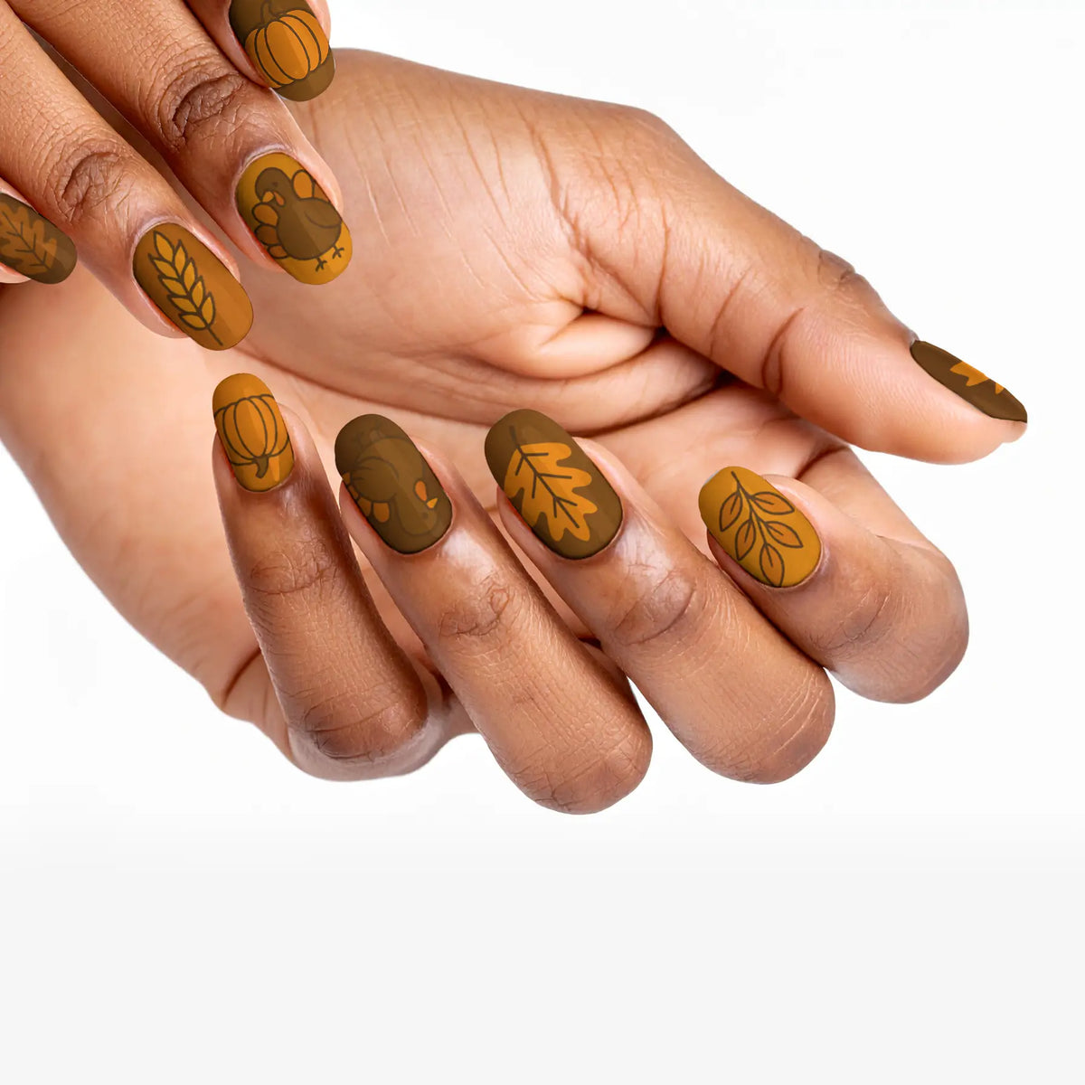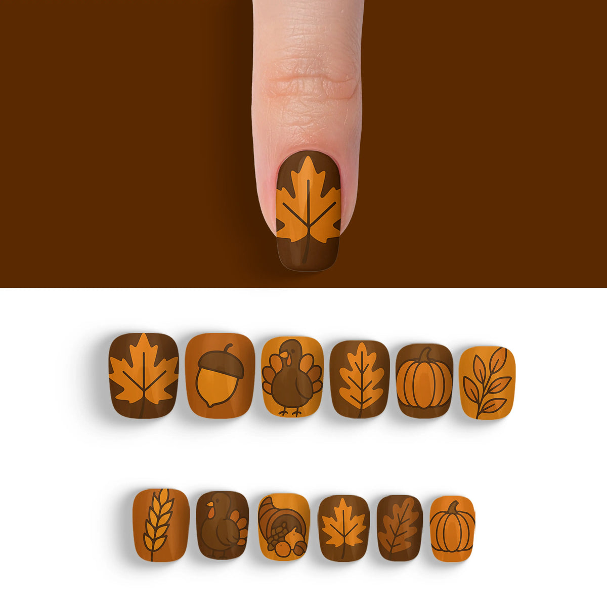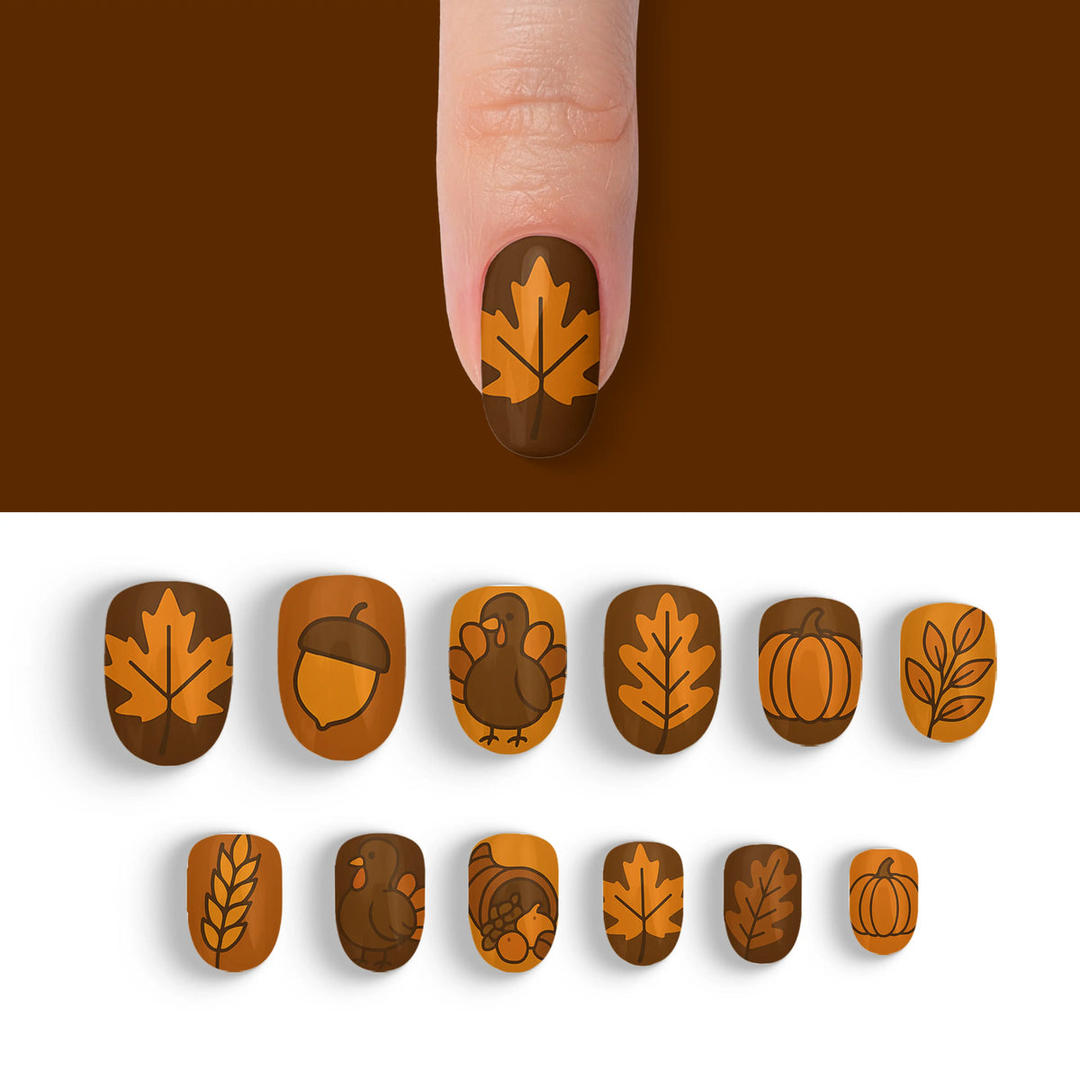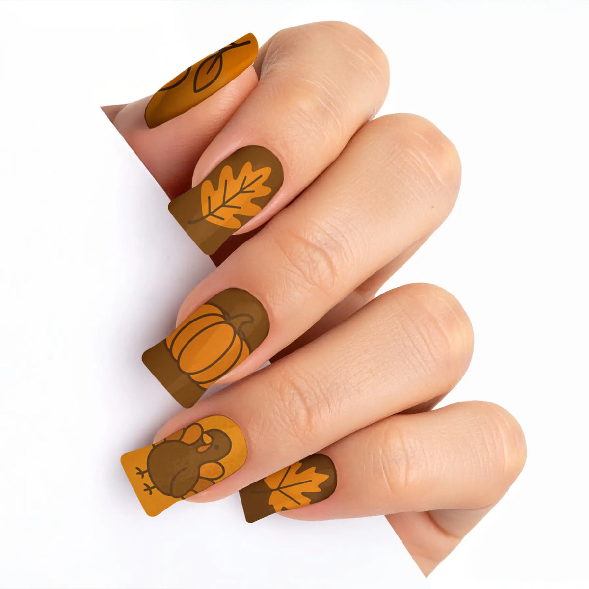 Autumn Feast Brown Thanksgiving Press-On Nails