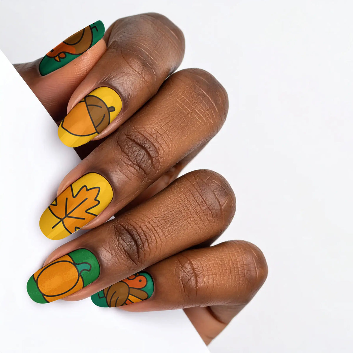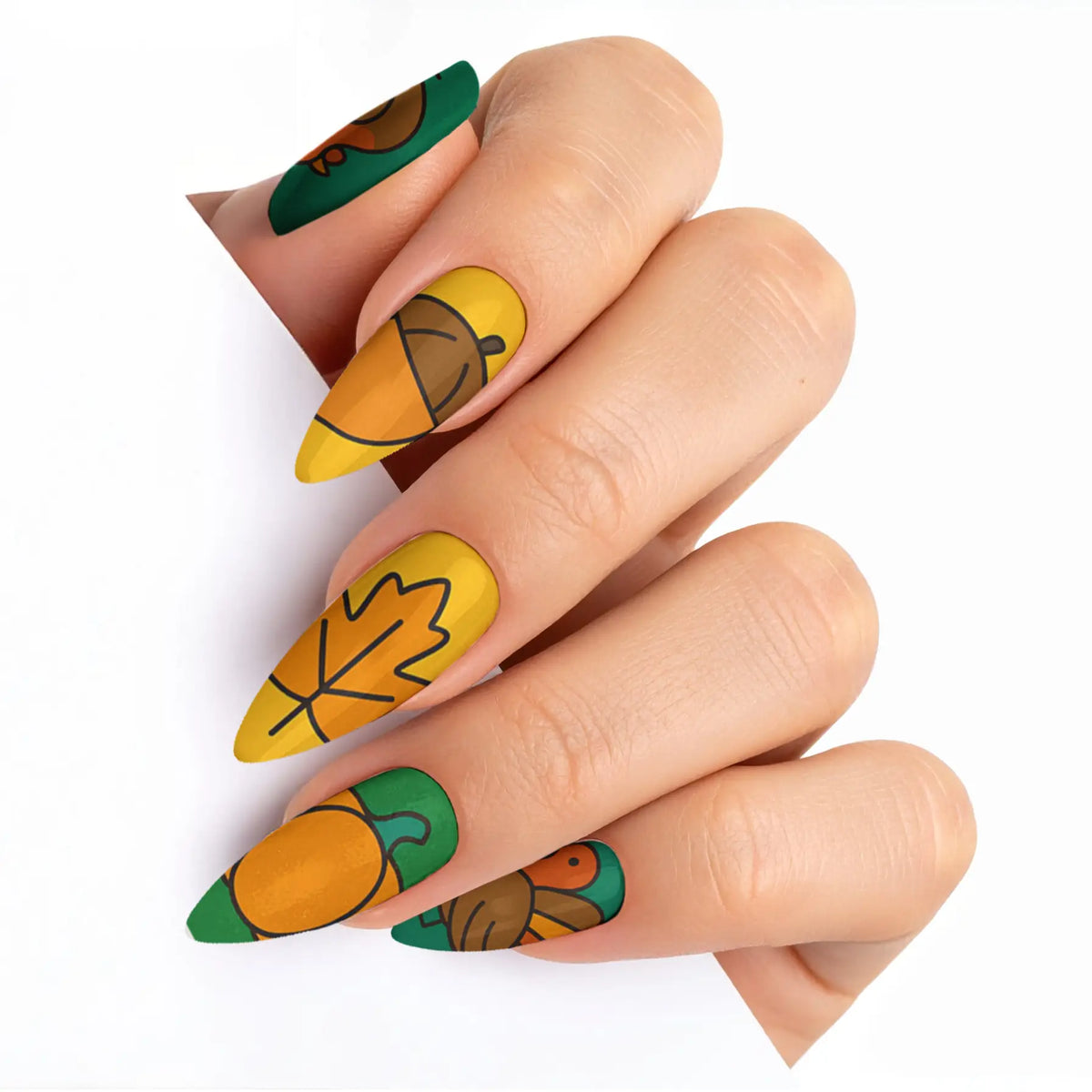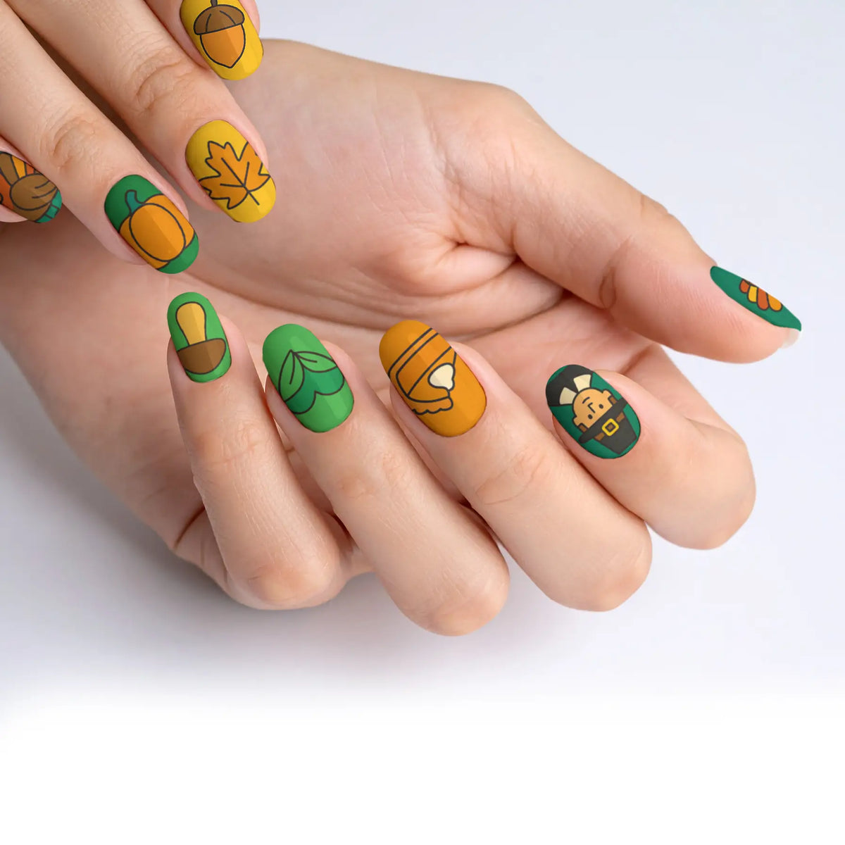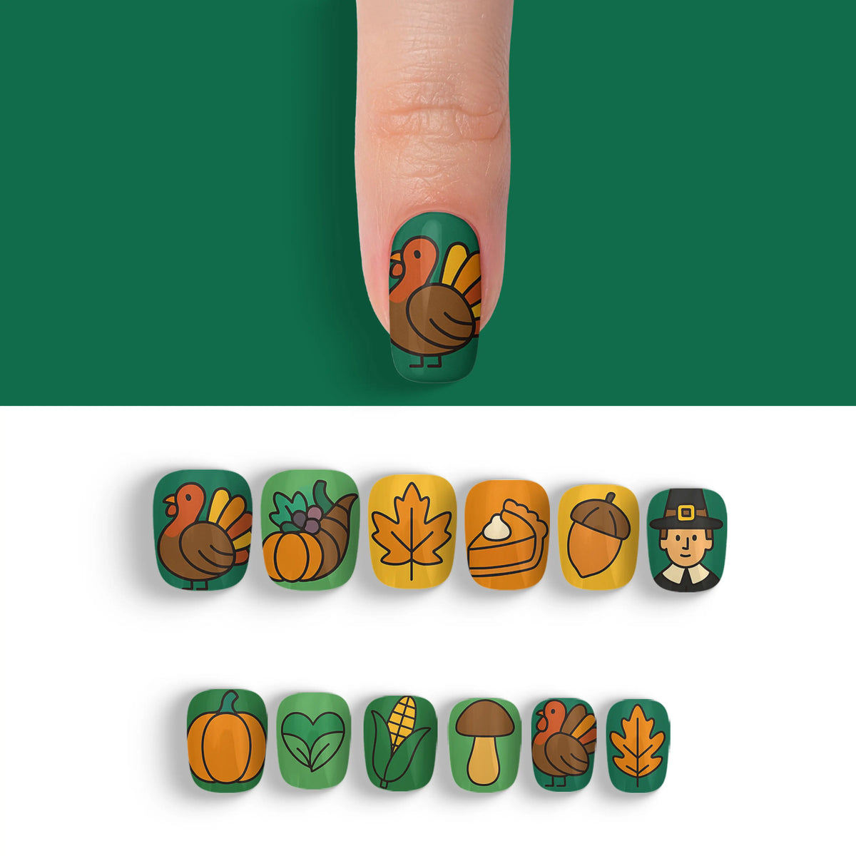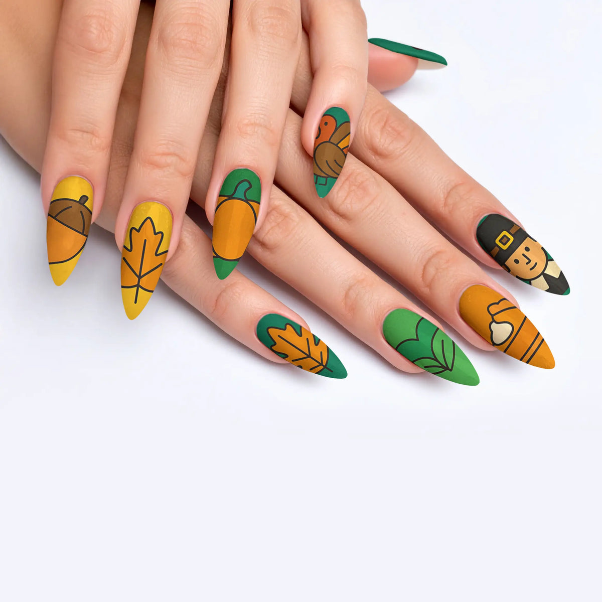 Elevate your style this season with our Autumn Green Glow Thanksgiving Press-On Nails, a lush collection that transforms your fingertips into a masterpiece. Inspired by the vibrant hues of fall, this set captures nature's opulence in a striking green palette. Perfect for festive gatherings or anytime you want to make a statement, each nail design is crafted to reflect sophistication and celebration. Enjoy salon-quality results from the comfort of your home, and let your nails speak elegance for any occasion.