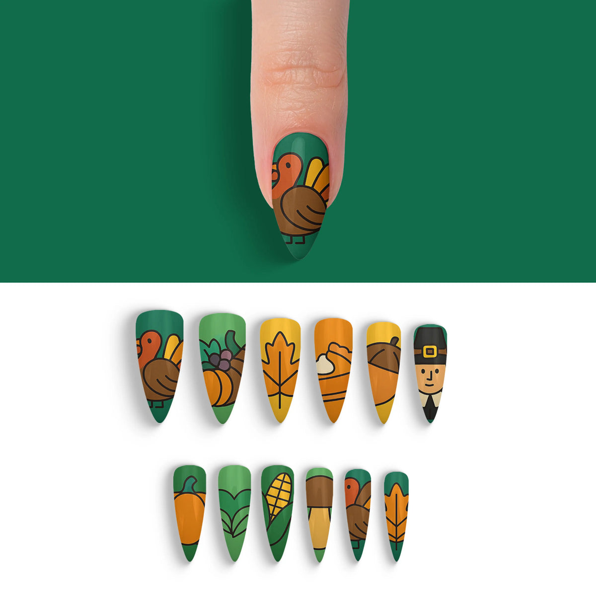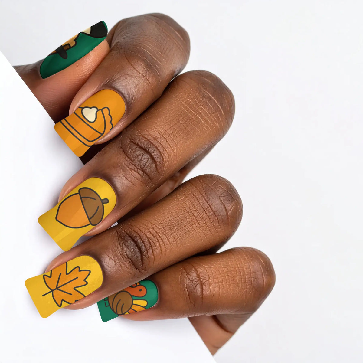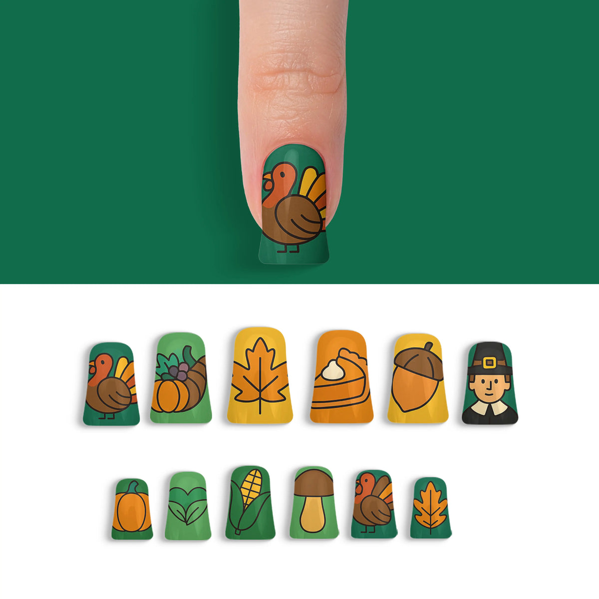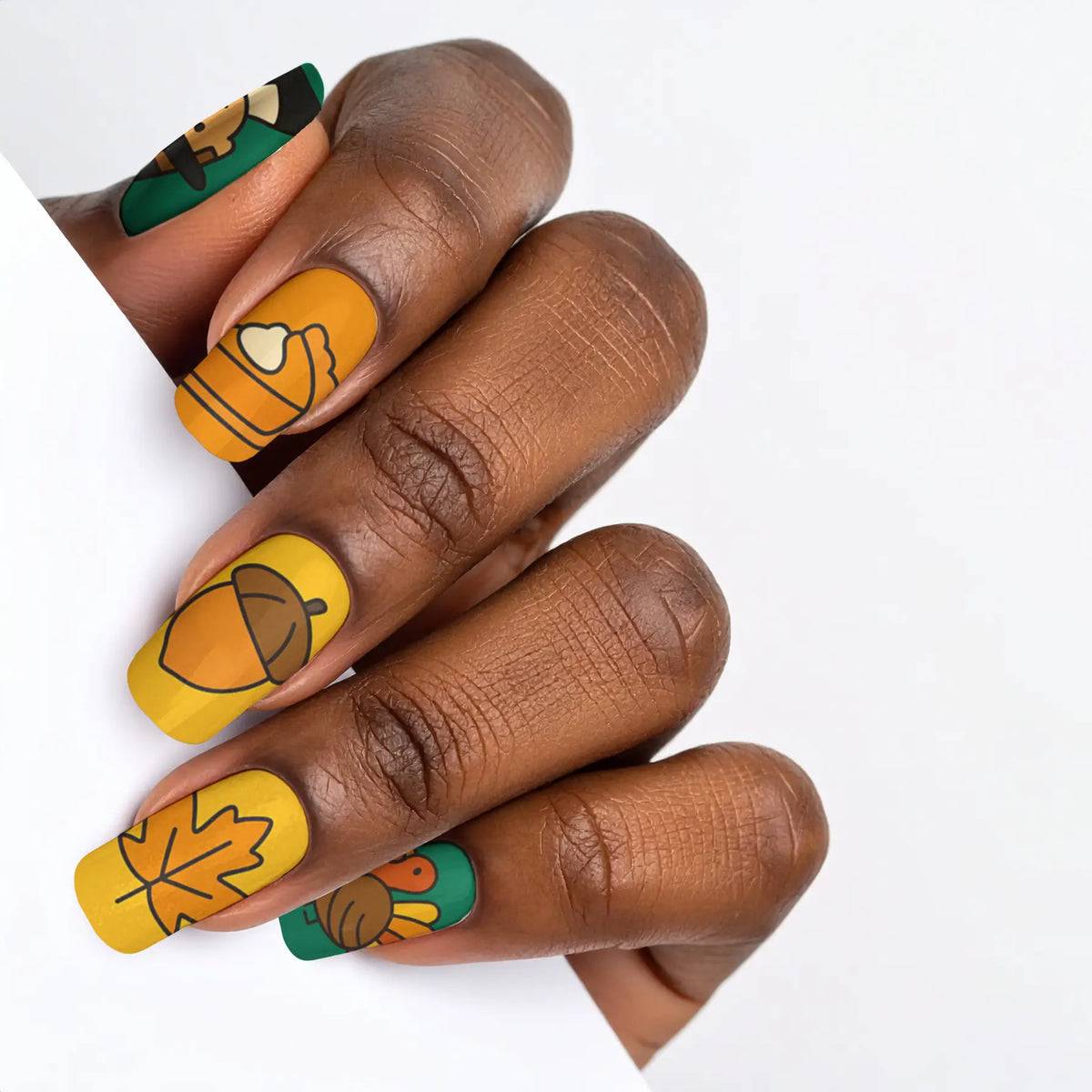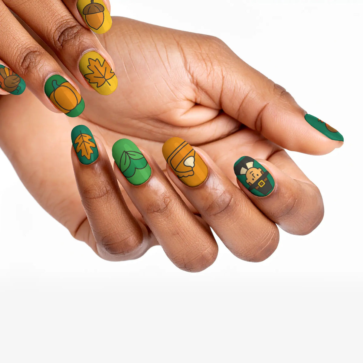 Elevate your style this season with our Autumn Green Glow Thanksgiving Press-On Nails, a lush collection that transforms your fingertips into a masterpiece. Inspired by the vibrant hues of fall, this set captures nature's opulence in a striking green palette. Perfect for festive gatherings or anytime you want to make a statement, each nail design is crafted to reflect sophistication and celebration. Enjoy salon-quality results from the comfort of your home, and let your nails speak elegance for any occasion.