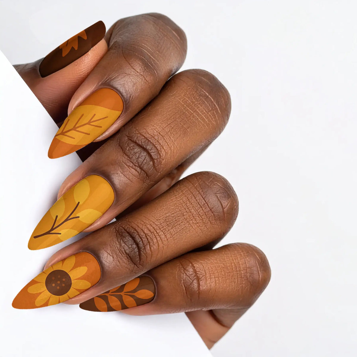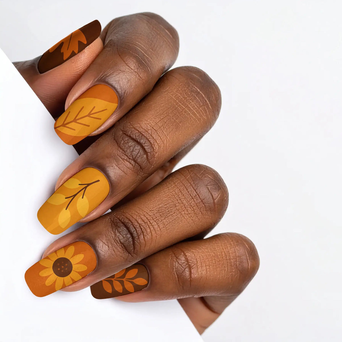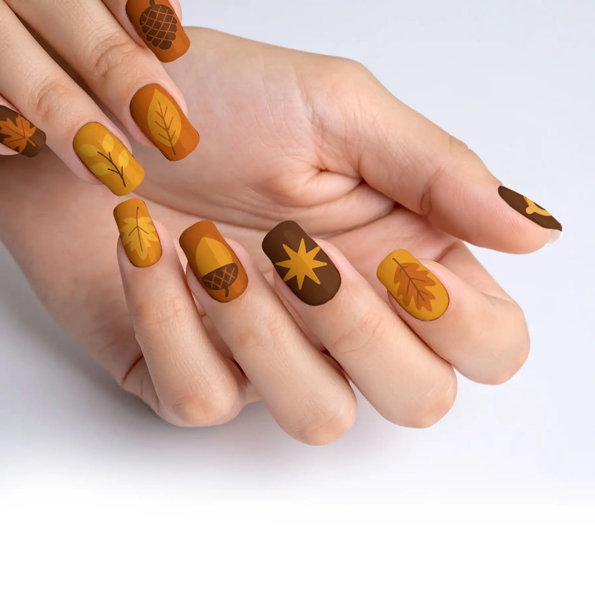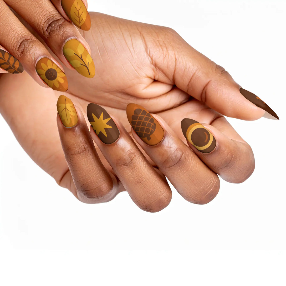 Embrace the beauty of fall with our Autumn Leaf Luxe Brown Elegance Press-On Nails, designed to transform your fingertips into stunning seasonal masterpieces. Each set draws inspiration from the rich, warm tones of autumn, capturing the essence of falling leaves in an array of beautiful brown shades. These luxurious designs offer a stylish and sophisticated look, perfect for any occasion this season. Effortlessly elevate your nail game with this reusable and durable set, allowing you to enjoy salon-quality nails that last.