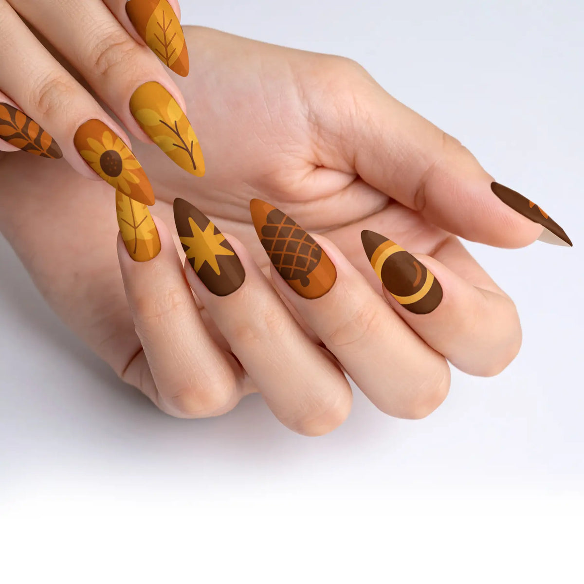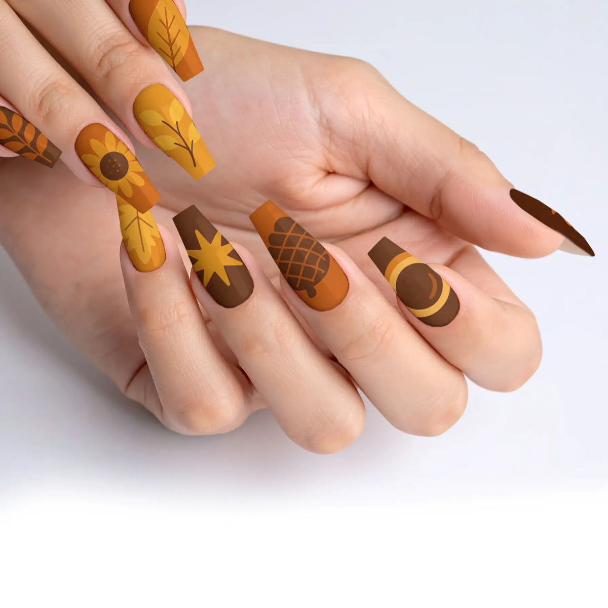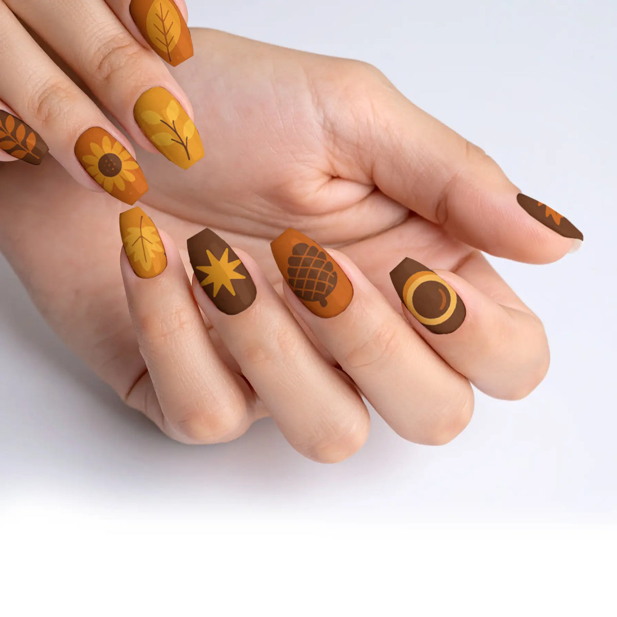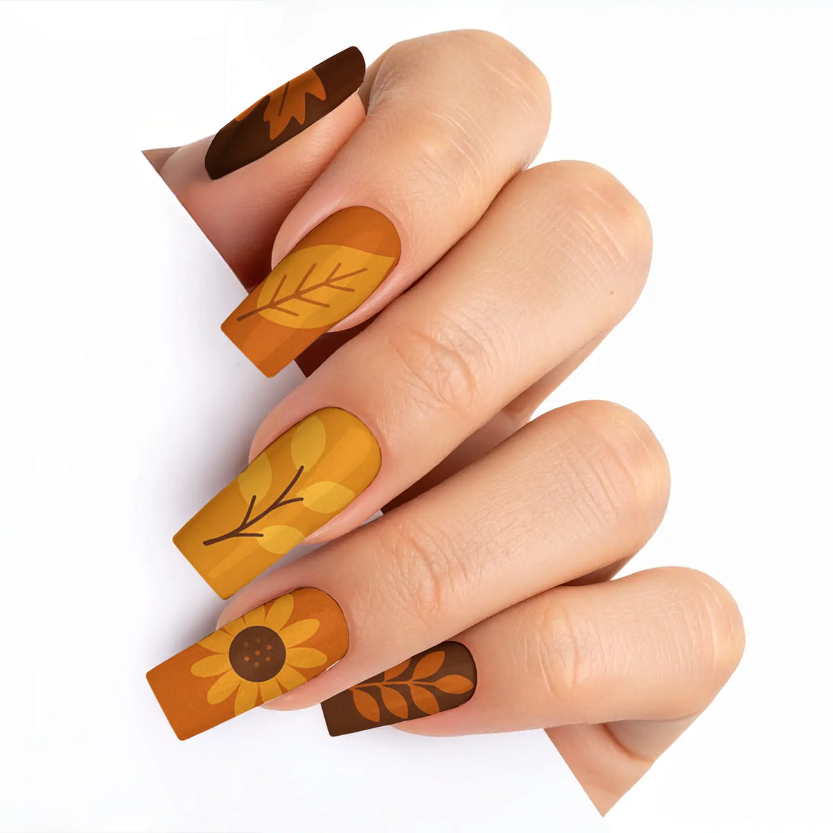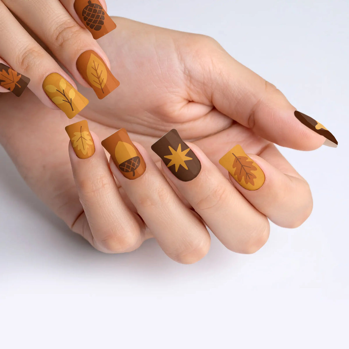 Autumn Leaf Luxe Brown Elegance Press-On Nails