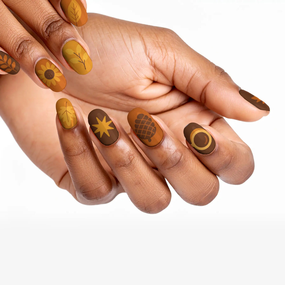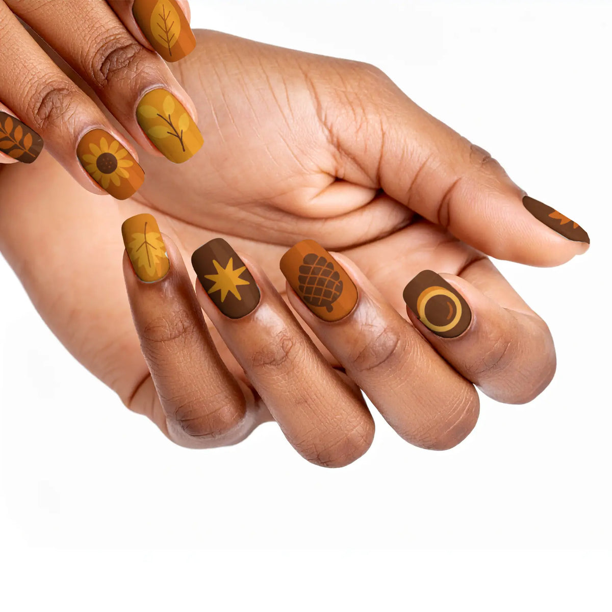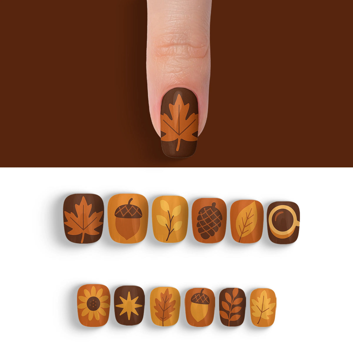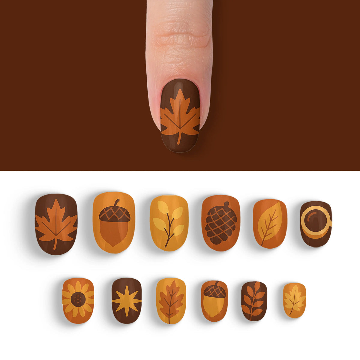 - Features 12 unique fall-inspired designs in rich brown hues.