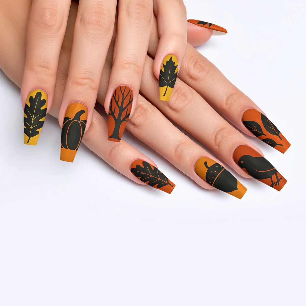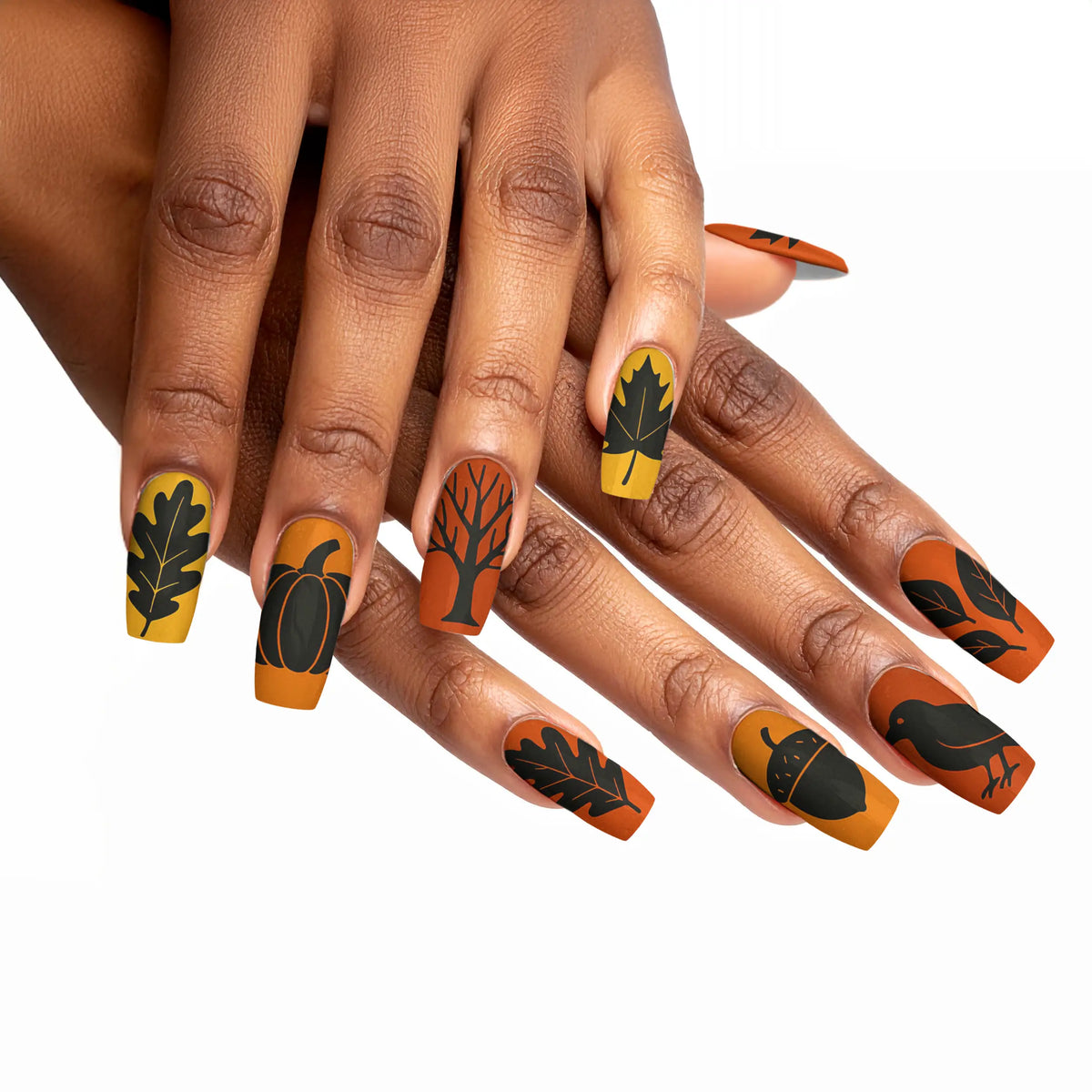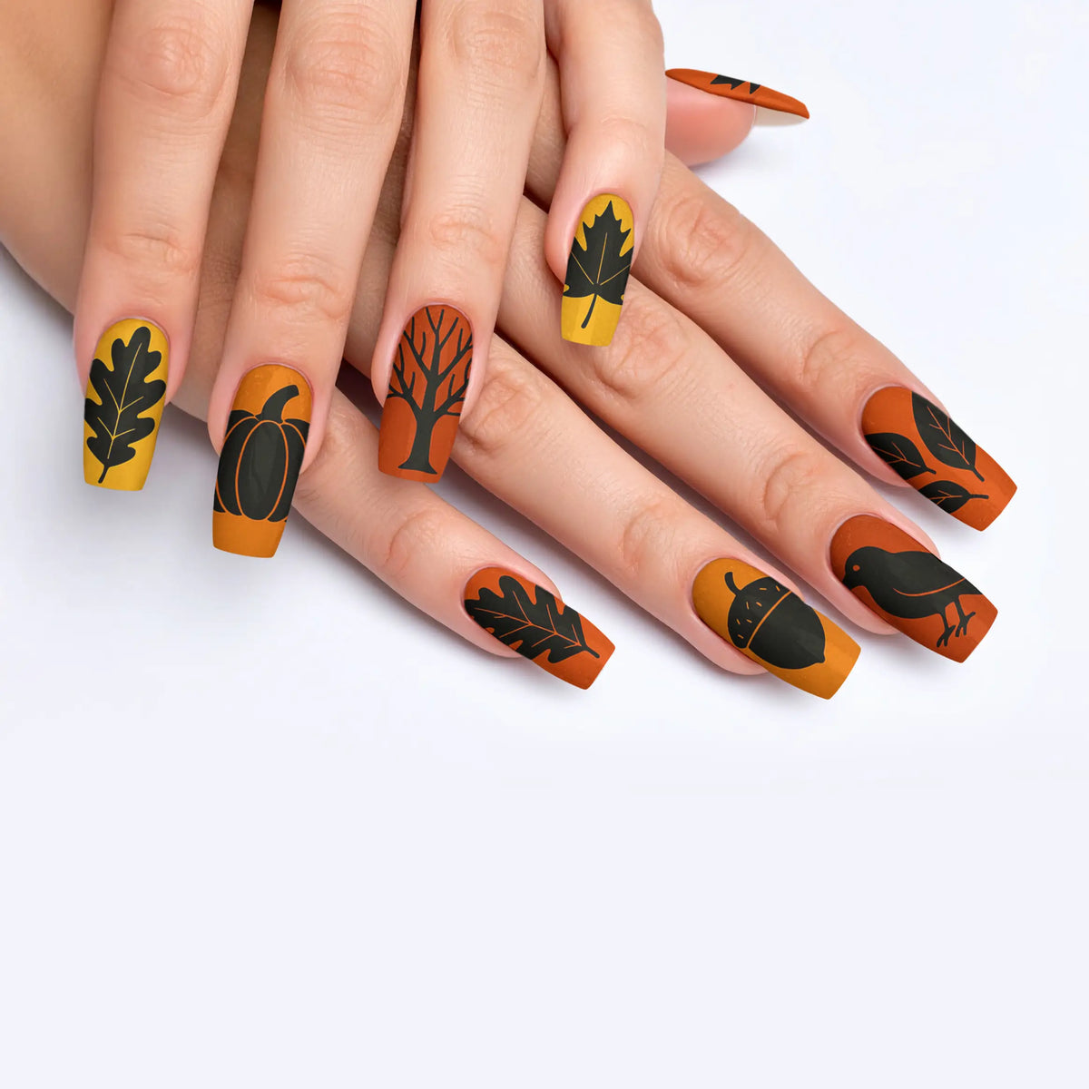 Embrace the mystique of dark elegance with our captivating collection of black-themed press-on nails, designed to perfectly capture the essence of fall and autumn. This exquisite assortment features 12 unique designs, each tailored to elevate your style with a sophisticated edge. Whether you're stepping into a glamorous event or simply wish to add a touch of high-end allure to your everyday ensemble, these press-on nails offer the ideal combination of ease and resilience. With straightforward application and top-tier quality, they promise enduring beauty and effortless charm that lasts.