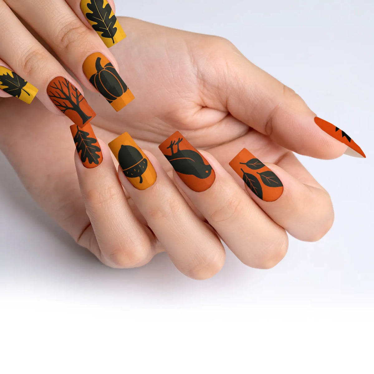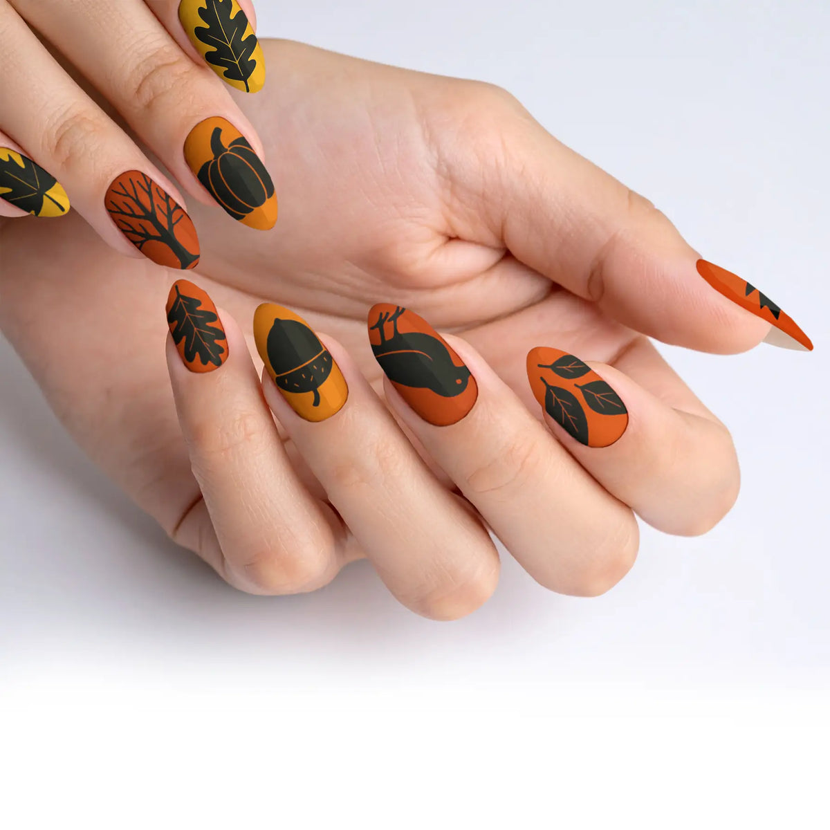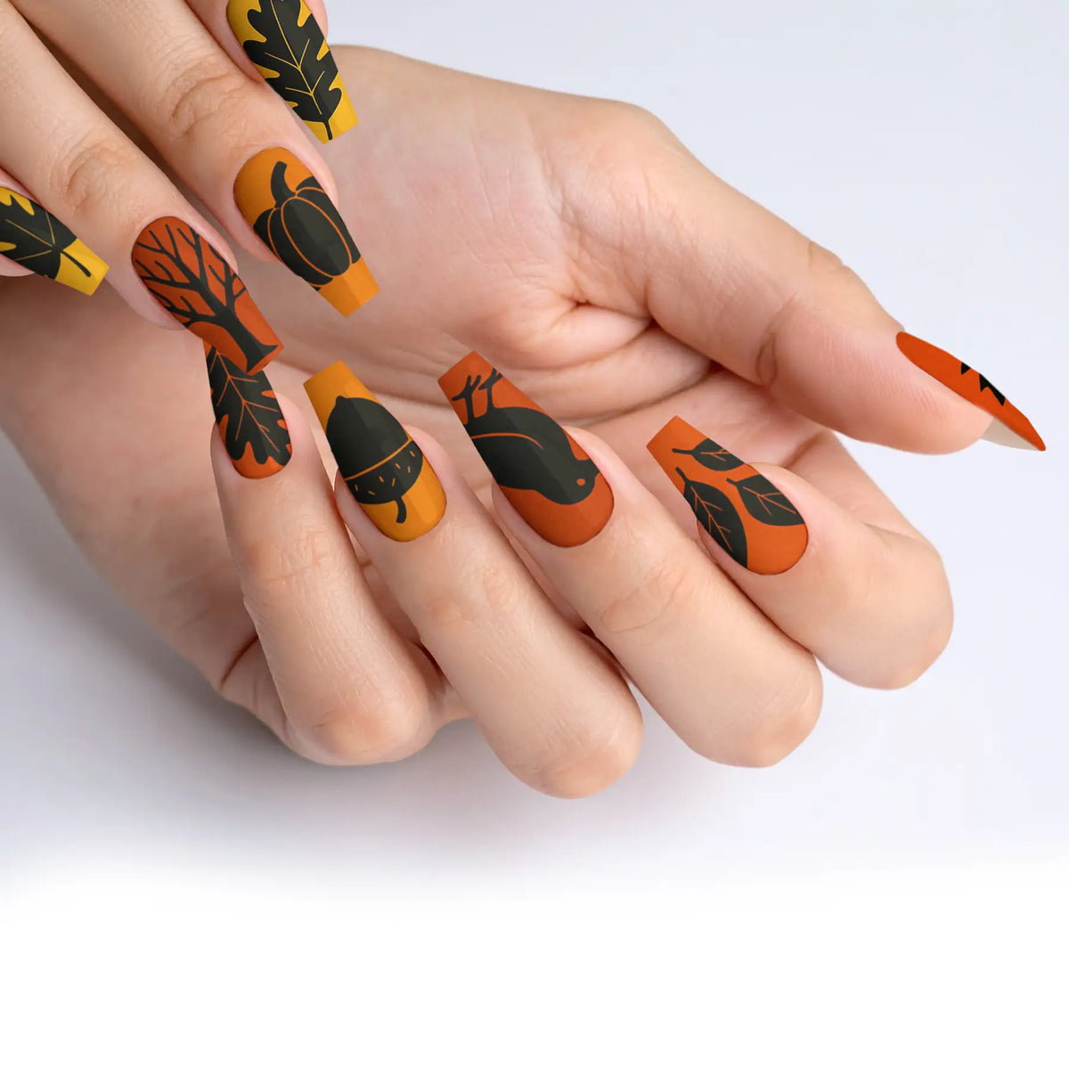 Embrace the mystique of dark elegance with our captivating collection of black-themed press-on nails, designed to perfectly capture the essence of fall and autumn. This exquisite assortment features 12 unique designs, each tailored to elevate your style with a sophisticated edge. Whether you're stepping into a glamorous event or simply wish to add a touch of high-end allure to your everyday ensemble, these press-on nails offer the ideal combination of ease and resilience. With straightforward application and top-tier quality, they promise enduring beauty and effortless charm that lasts.