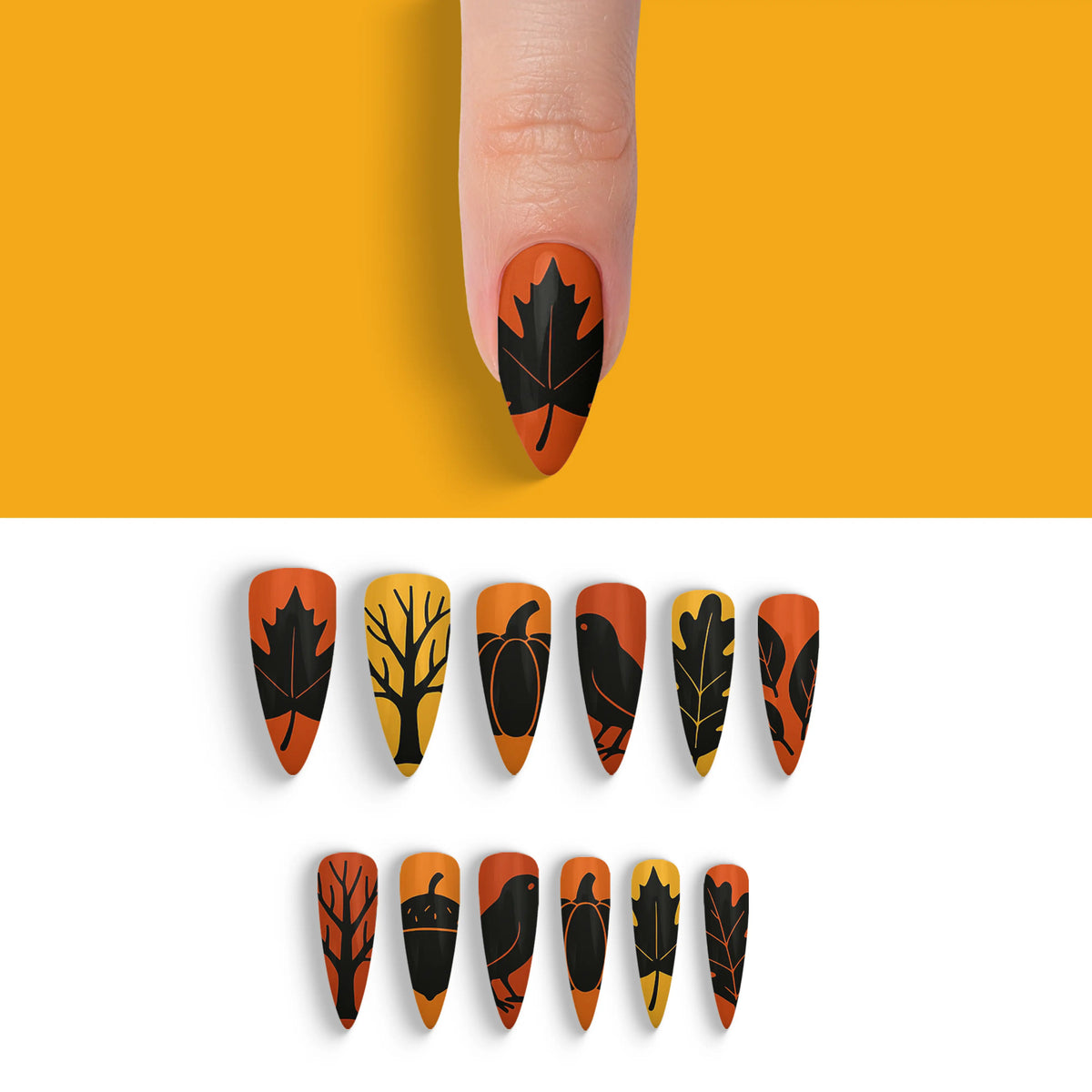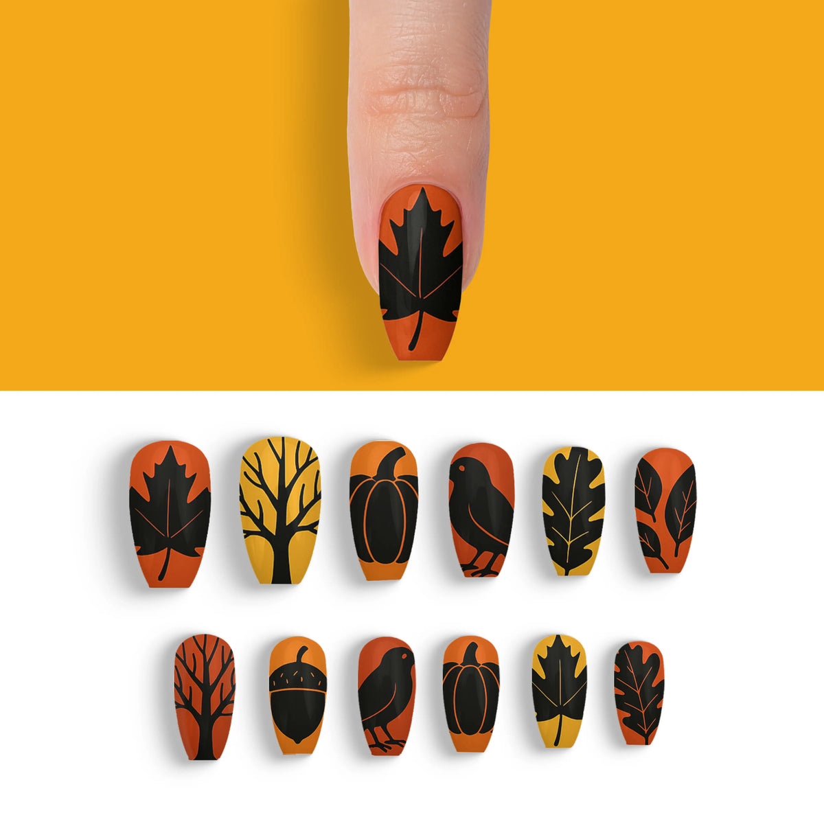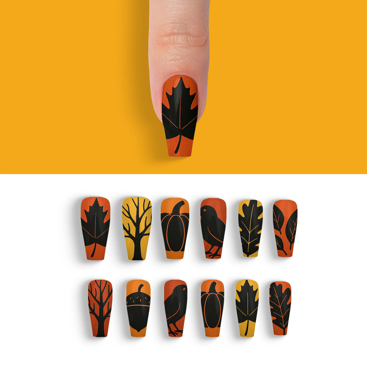 Autumn Noir Magic Black Fall Press-On Nails