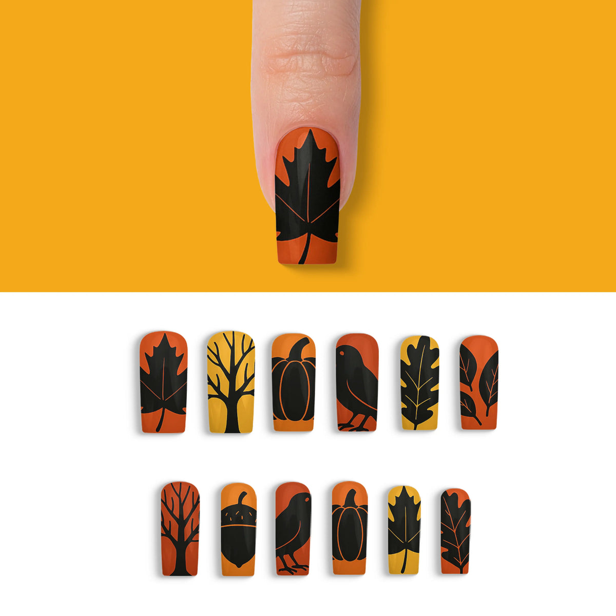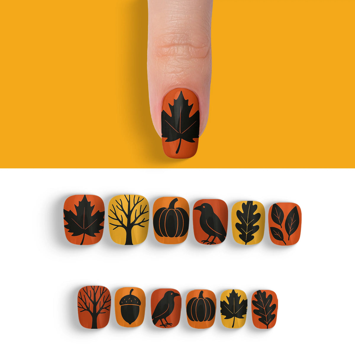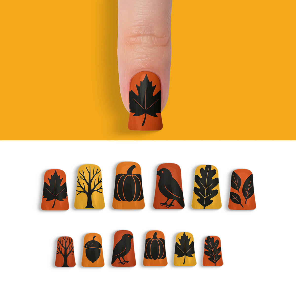 Autumn Noir Magic Black Fall Press-On Nails