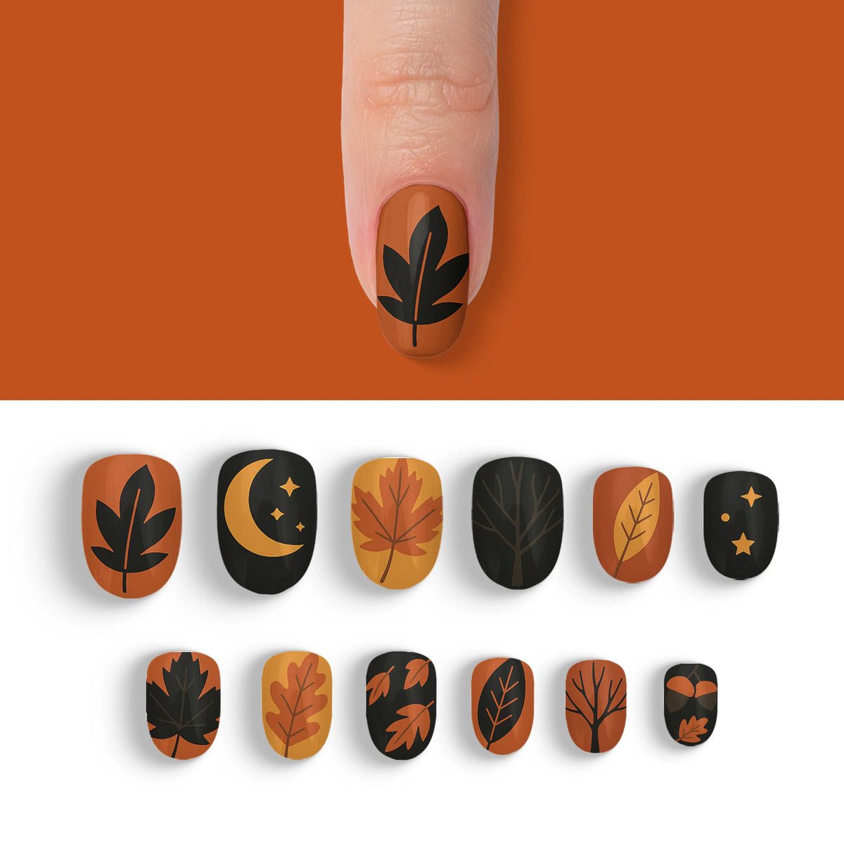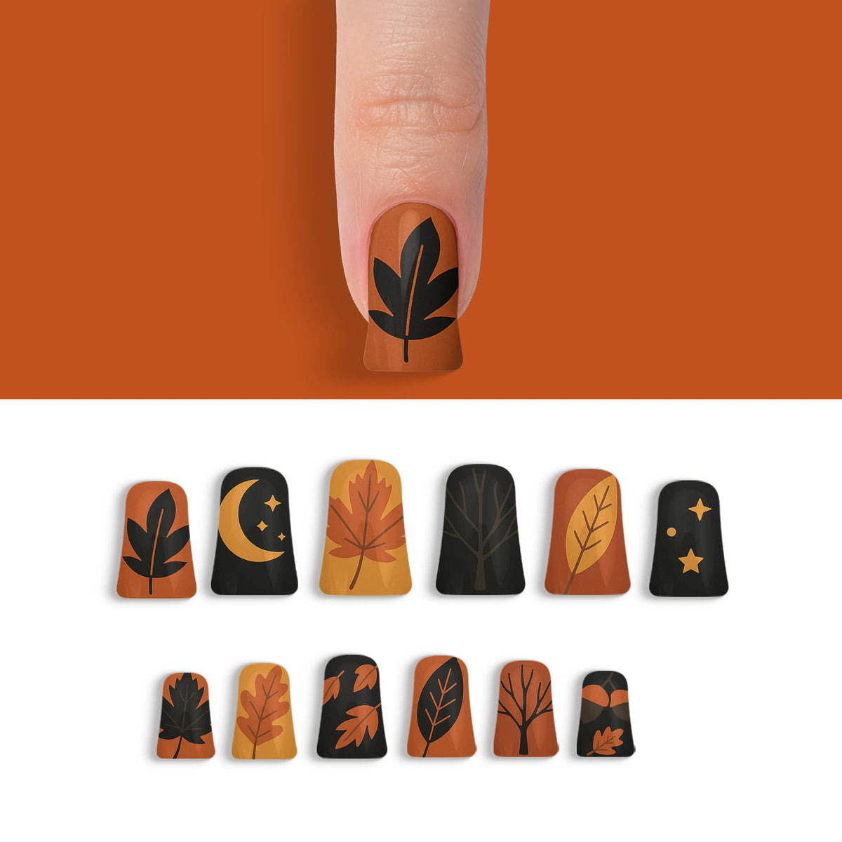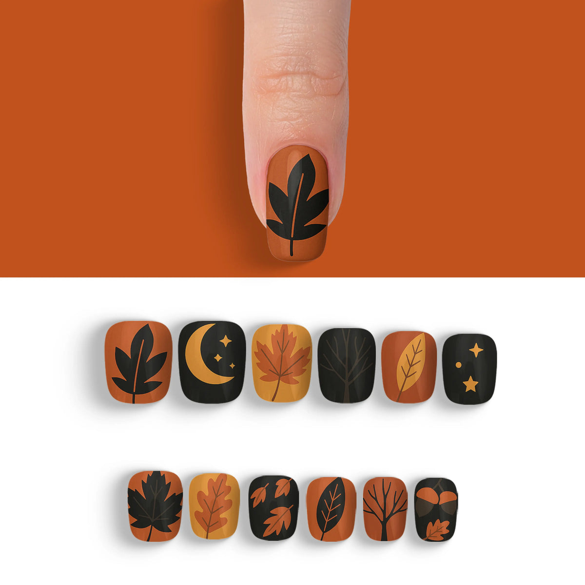 Dive into the allure of autumn with a touch of sophistication using our Autumn Obsidian Black Fall Press-On Nails. These captivating nails are perfect for the season's fashion-forward trendsetters who appreciate the mystique of black. Reflecting the rich colors and shadows of fall, they effortlessly add a chic flair to any outfit. With 12 distinct and enchanting designs in this collection, you can effortlessly switch up your style to suit any occasion, all while enjoying a salon-quality experience that's both durable and reusable. Experience the ease of salon-style nails at home without the hassle of an appointment.