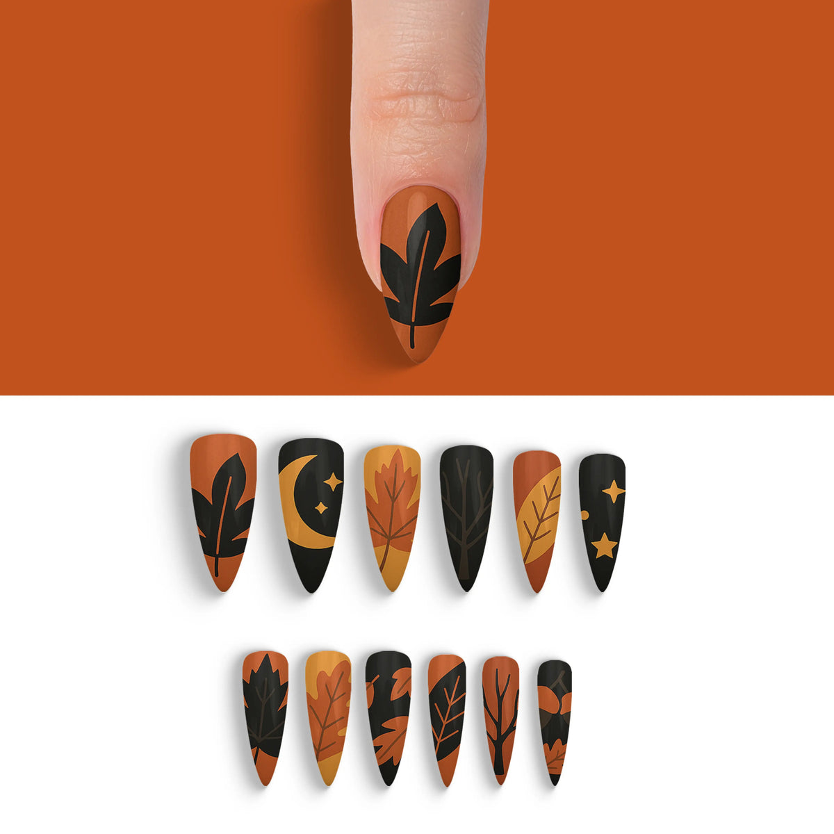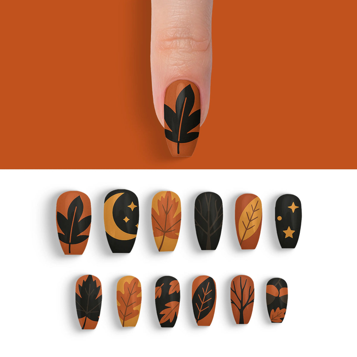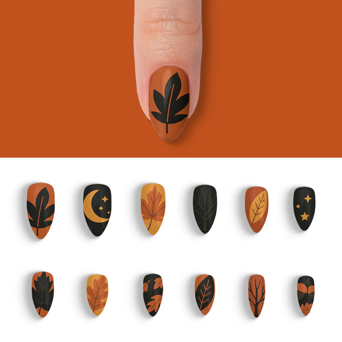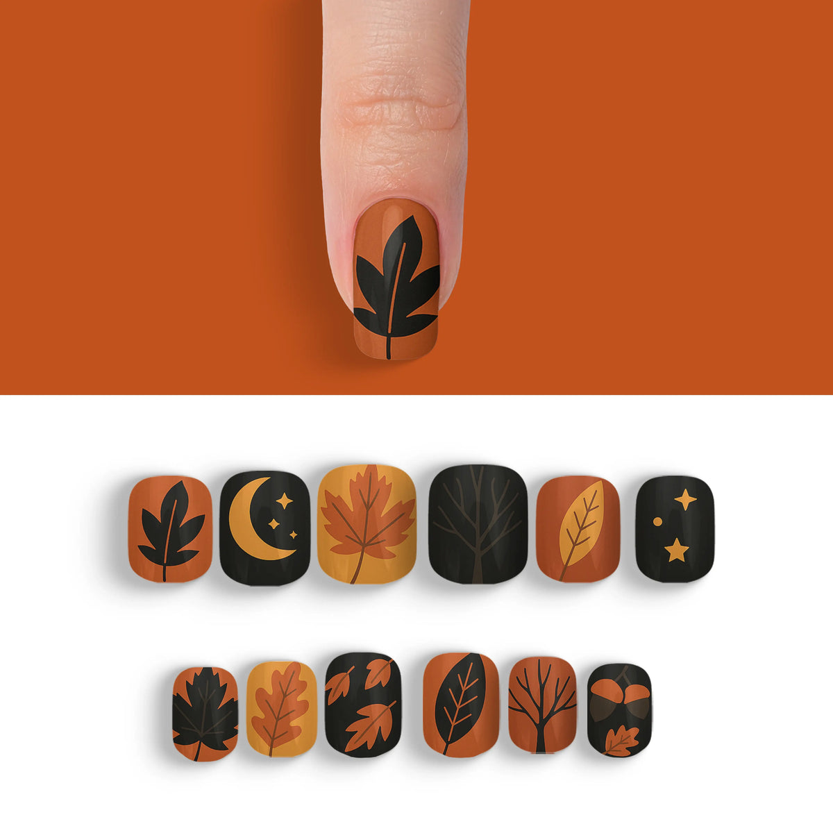 Dive into the allure of autumn with a touch of sophistication using our Autumn Obsidian Black Fall Press-On Nails. These captivating nails are perfect for the season's fashion-forward trendsetters who appreciate the mystique of black. Reflecting the rich colors and shadows of fall, they effortlessly add a chic flair to any outfit. With 12 distinct and enchanting designs in this collection, you can effortlessly switch up your style to suit any occasion, all while enjoying a salon-quality experience that's both durable and reusable. Experience the ease of salon-style nails at home without the hassle of an appointment.
