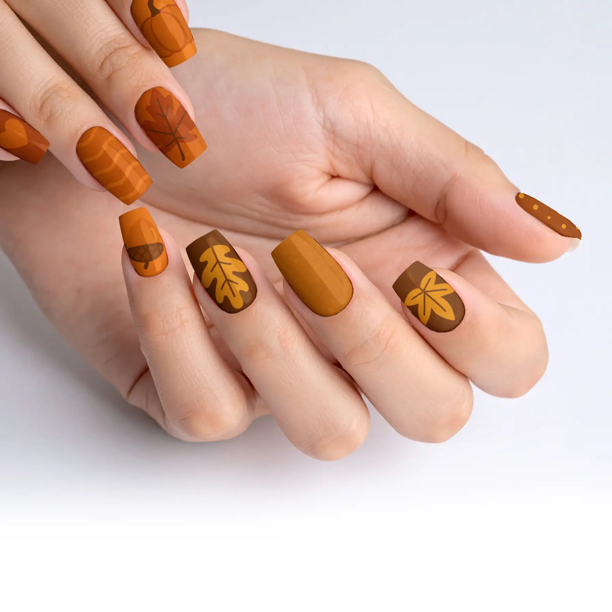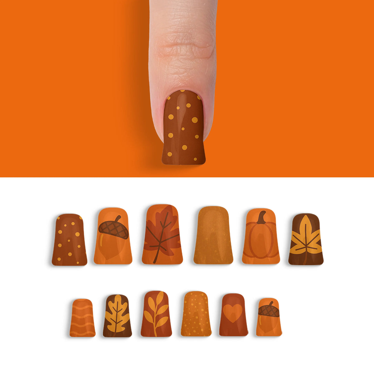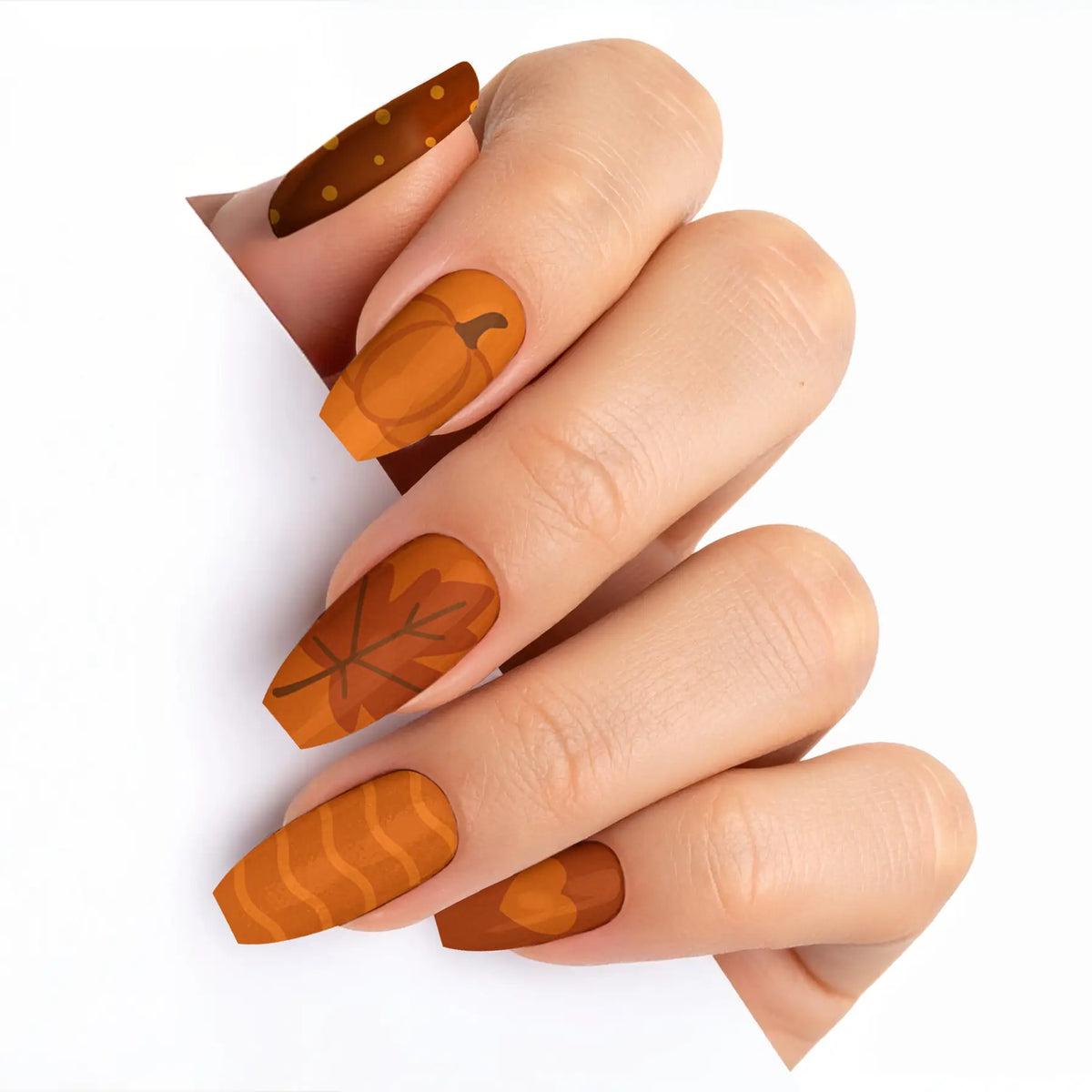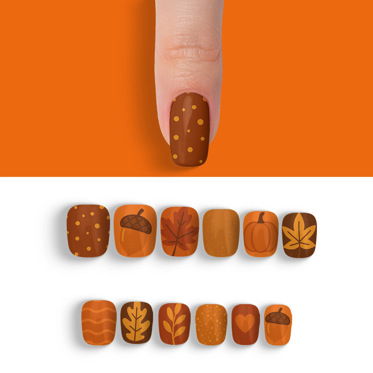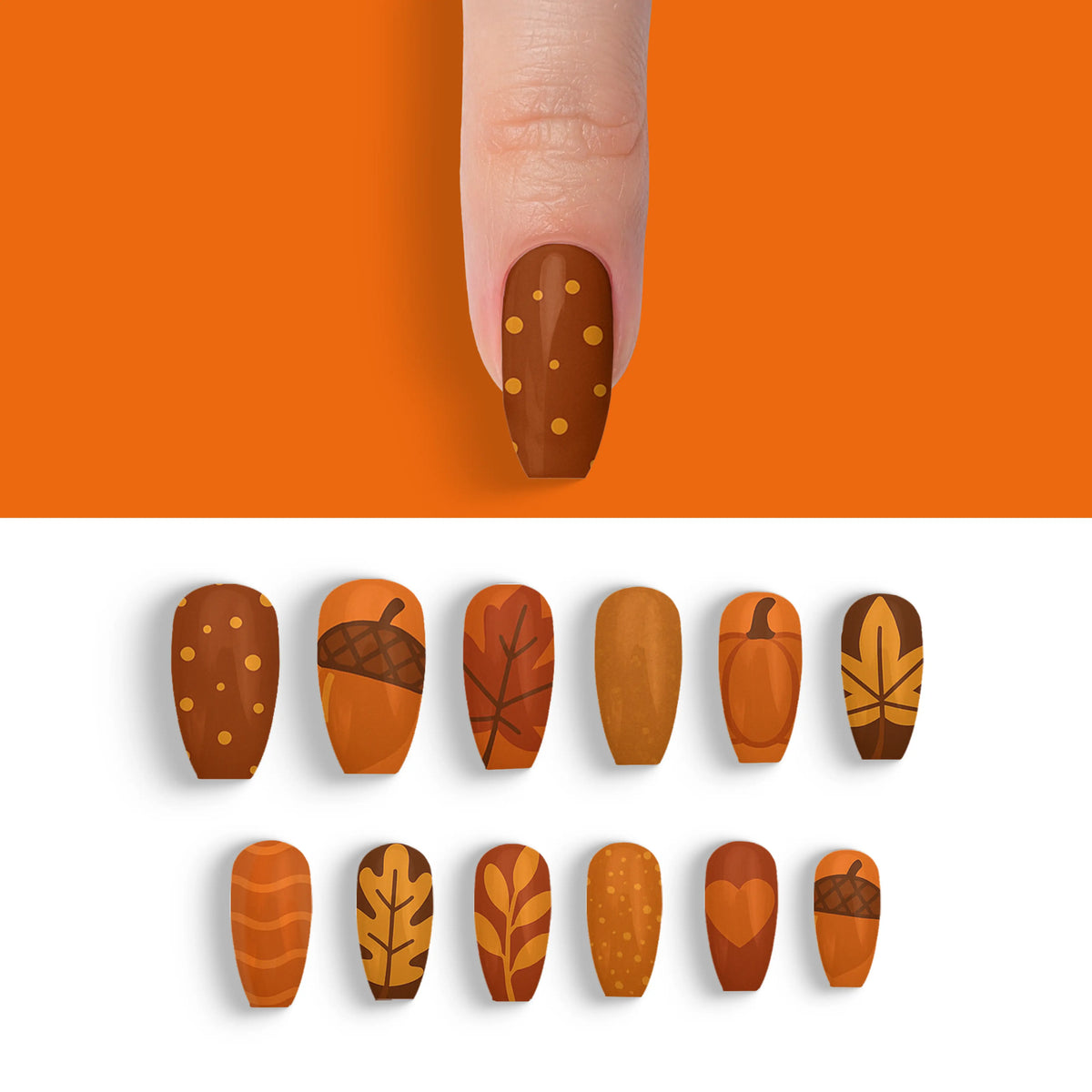 Welcome the cozy charm of autumn with our captivating press-on nails, designed to mirror the warm, inviting palette of fall. Each nail is inspired by the deep, earthy shades of the season, making it a perfect accessory to enhance your look during the brisk, cool days. These nails offer not only a breathtaking salon-quality finish but also the ease of use, allowing you to achieve professional results effortlessly. With their robust and reusable nature, this set promises long-lasting beauty and adaptability, making them essential for any trendsetter.