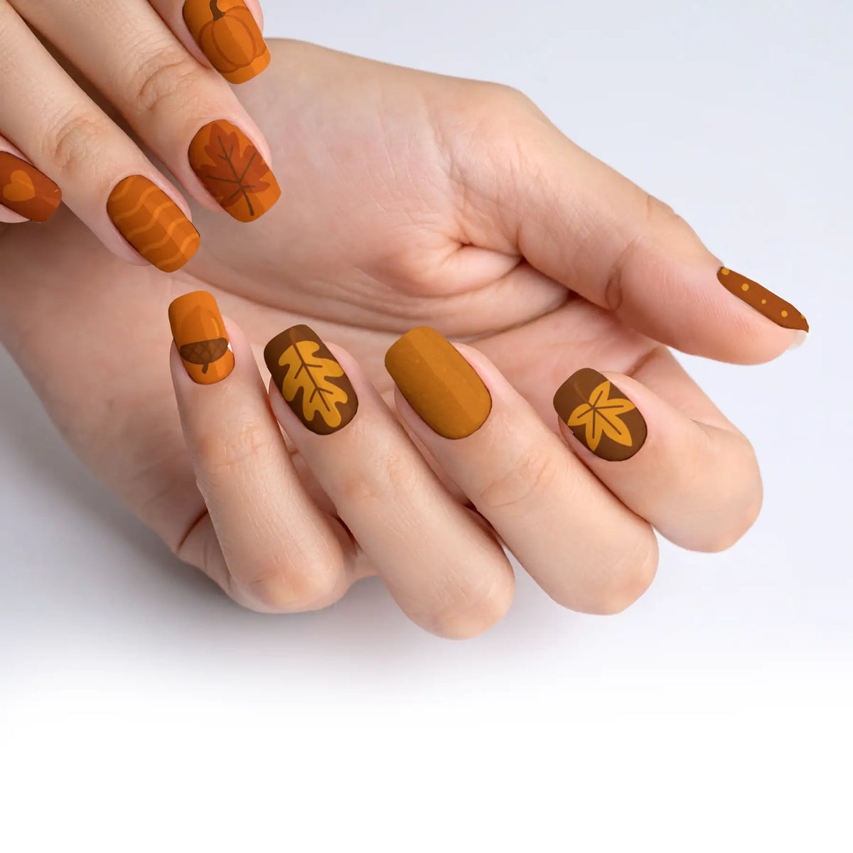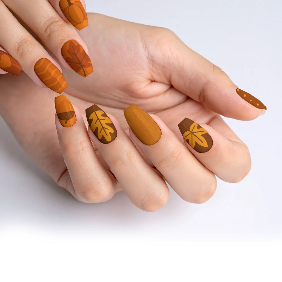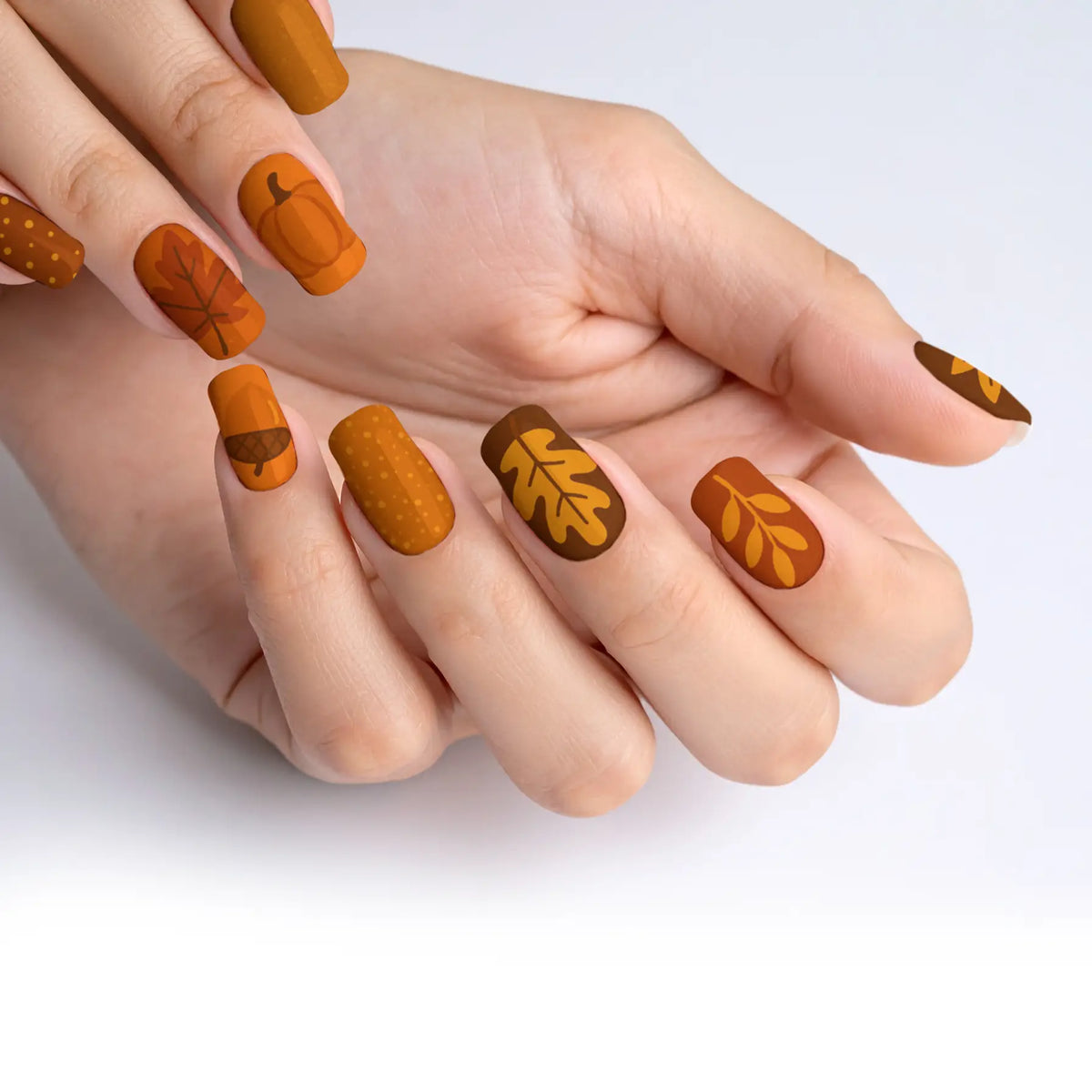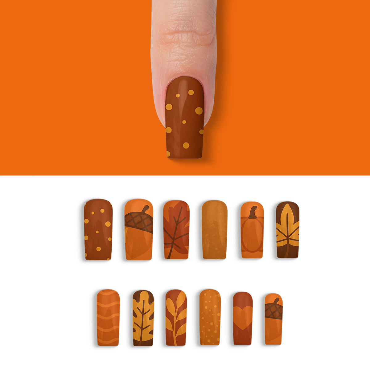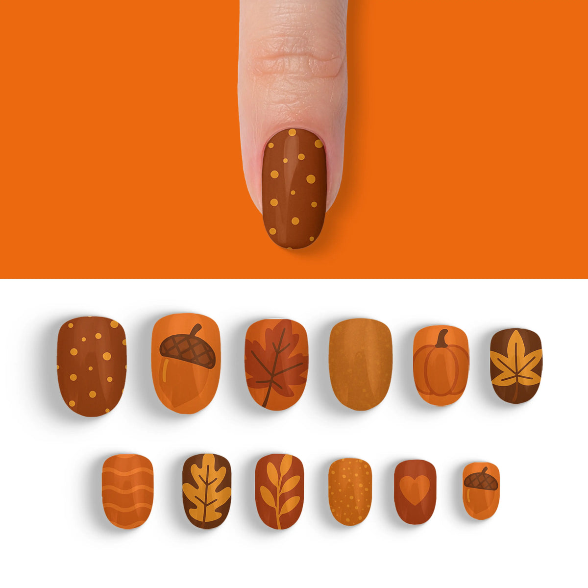 Welcome the cozy charm of autumn with our captivating press-on nails, designed to mirror the warm, inviting palette of fall. Each nail is inspired by the deep, earthy shades of the season, making it a perfect accessory to enhance your look during the brisk, cool days. These nails offer not only a breathtaking salon-quality finish but also the ease of use, allowing you to achieve professional results effortlessly. With their robust and reusable nature, this set promises long-lasting beauty and adaptability, making them essential for any trendsetter.