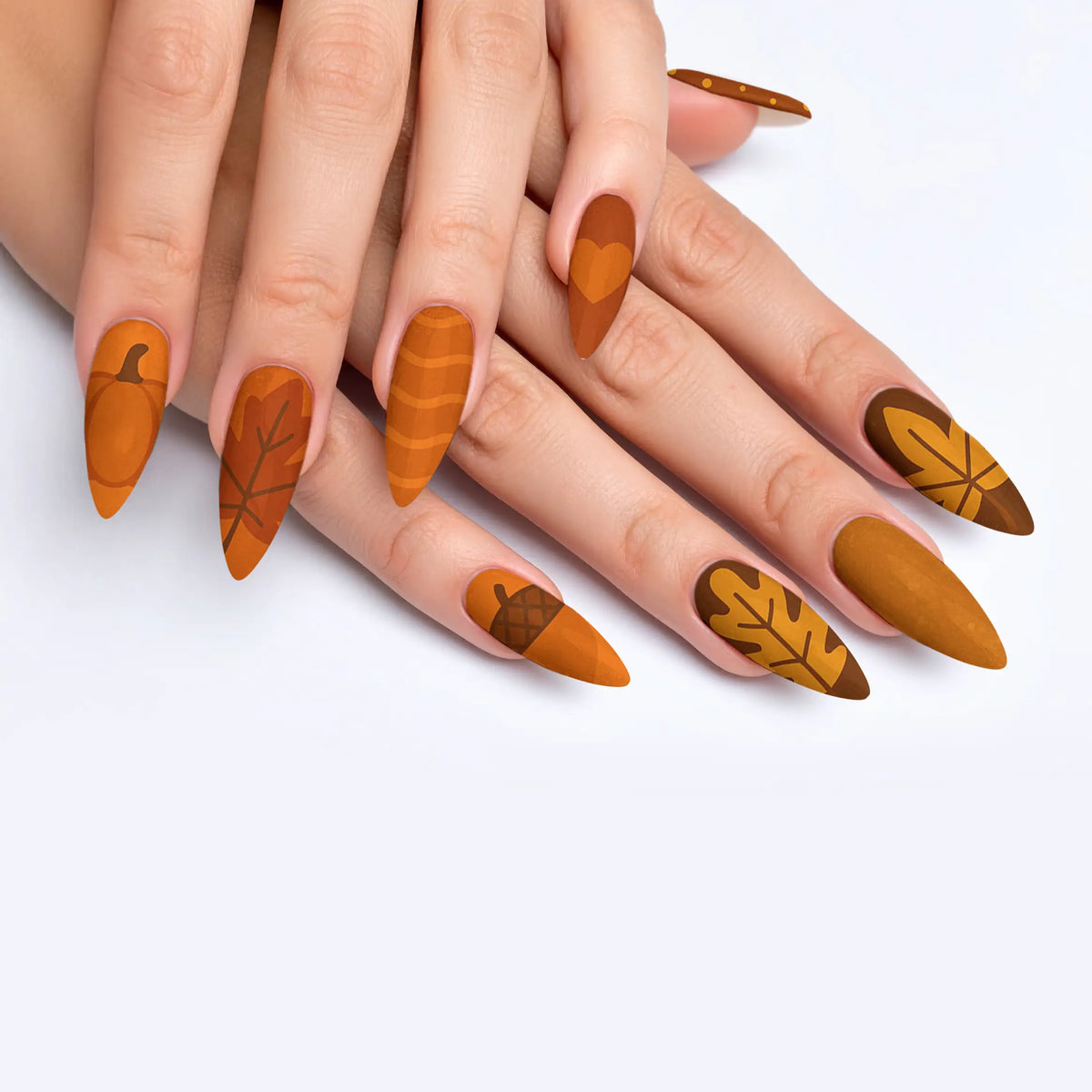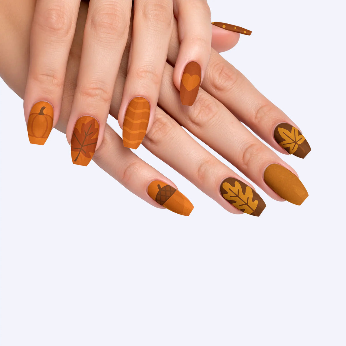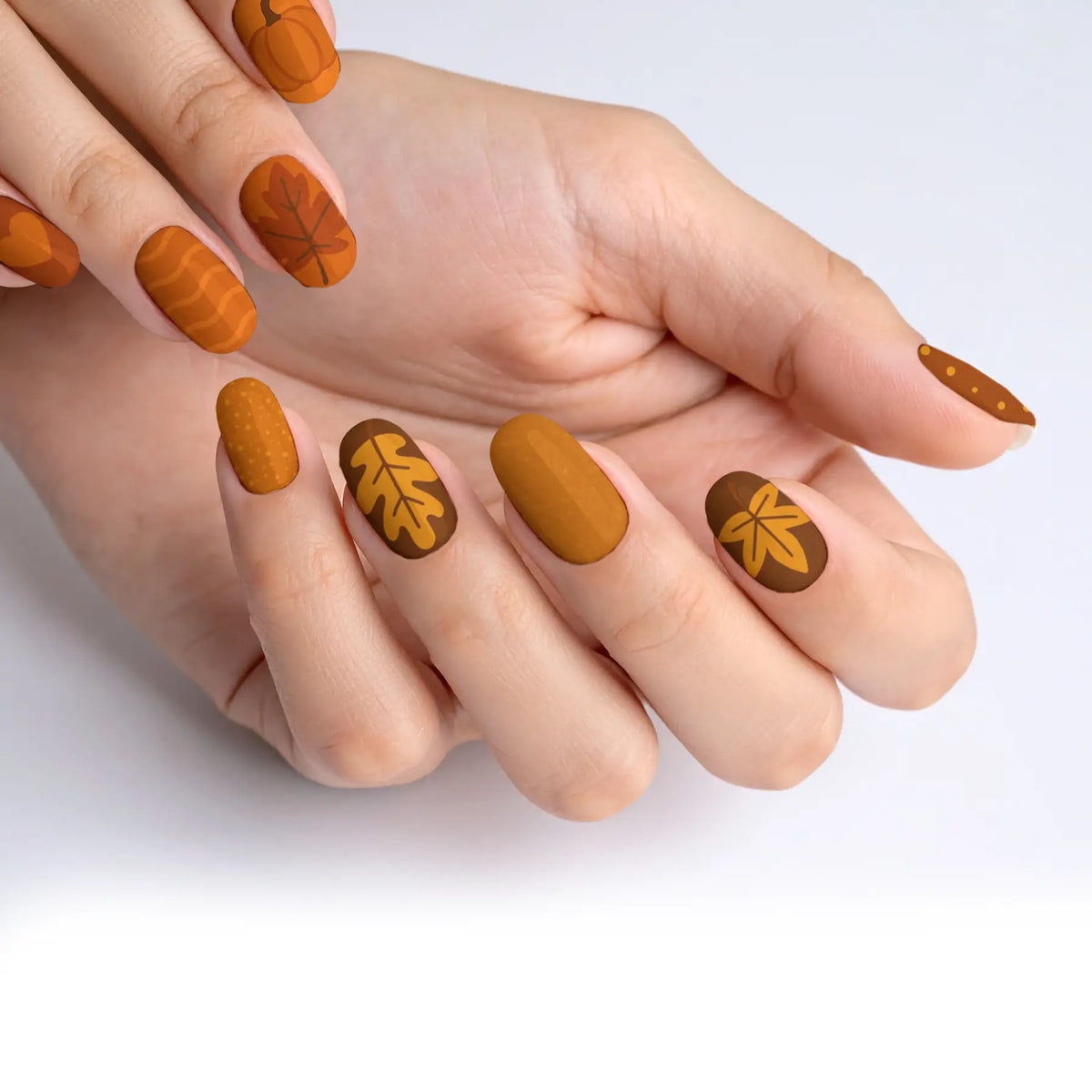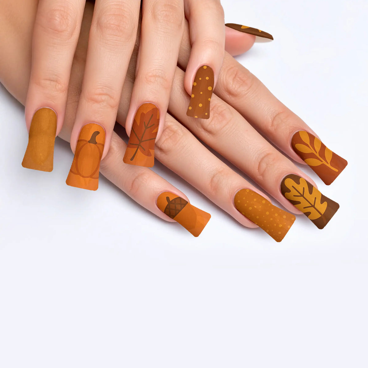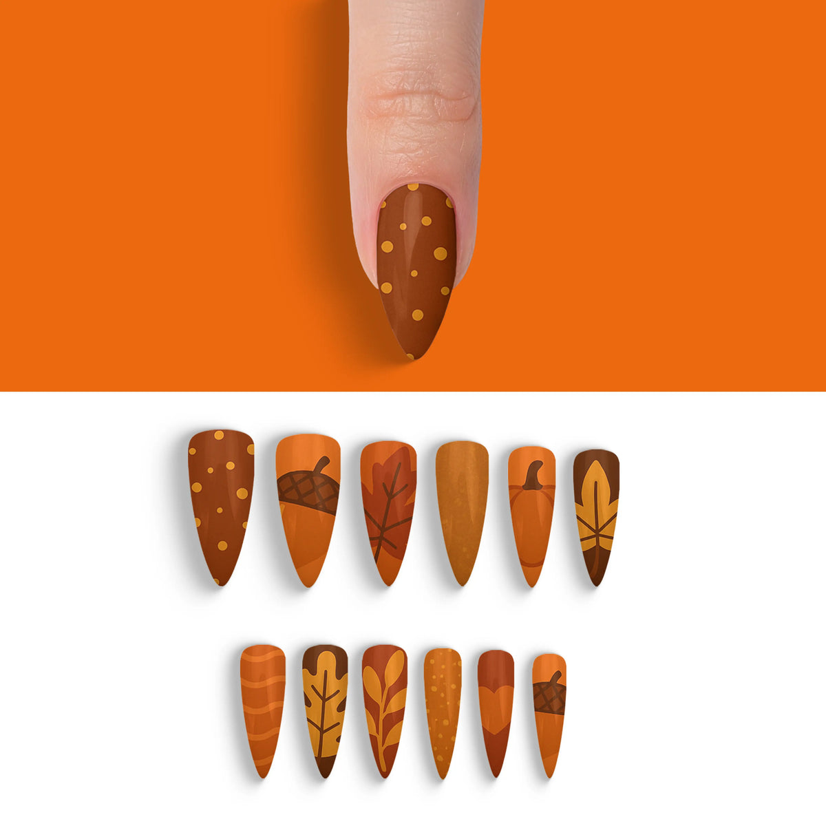Welcome the cozy charm of autumn with our captivating press-on nails, designed to mirror the warm, inviting palette of fall. Each nail is inspired by the deep, earthy shades of the season, making it a perfect accessory to enhance your look during the brisk, cool days. These nails offer not only a breathtaking salon-quality finish but also the ease of use, allowing you to achieve professional results effortlessly. With their robust and reusable nature, this set promises long-lasting beauty and adaptability, making them essential for any trendsetter.