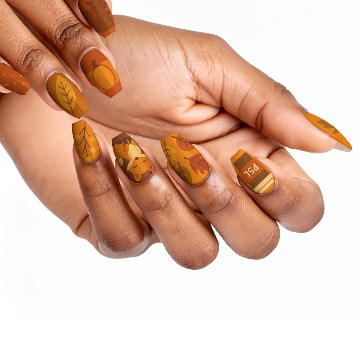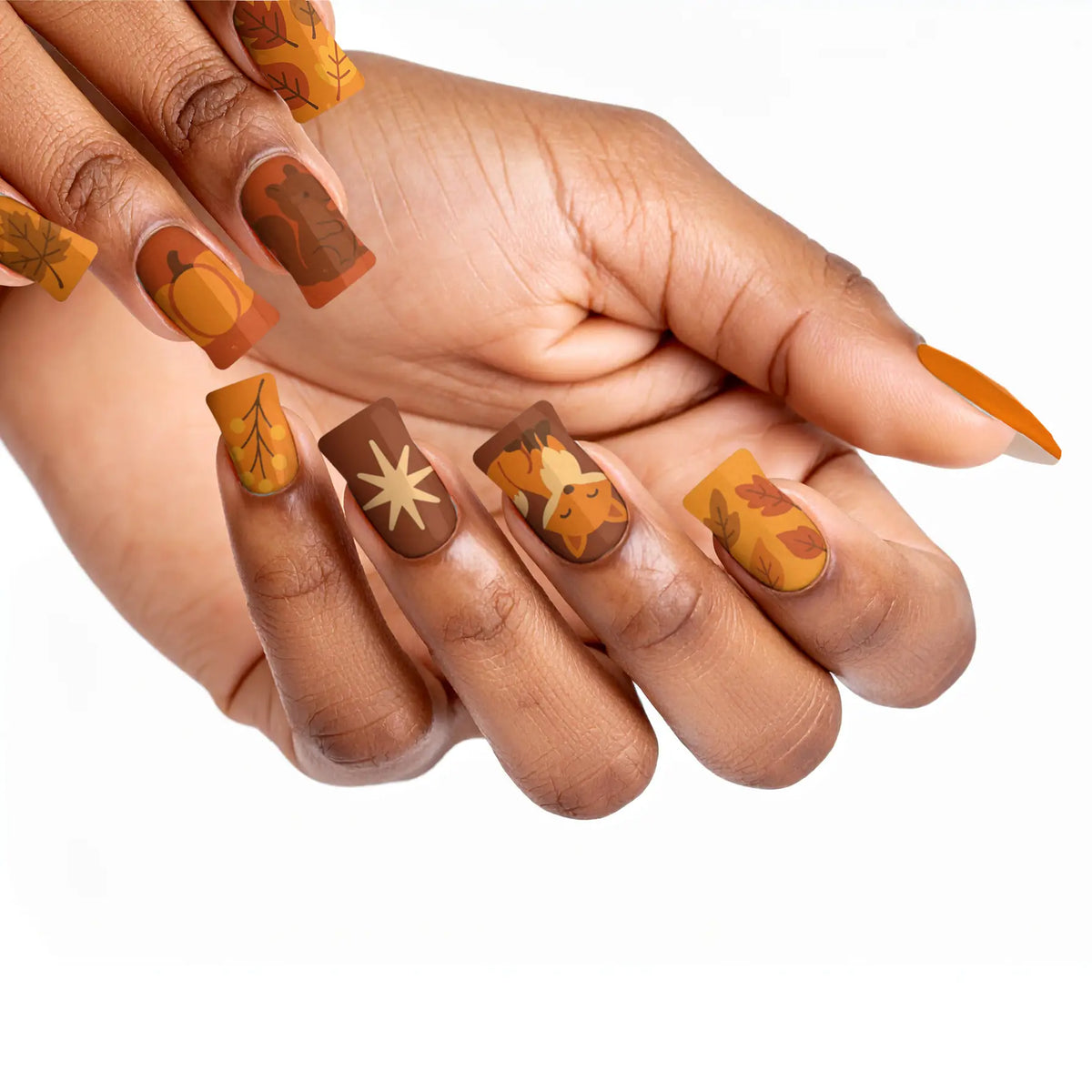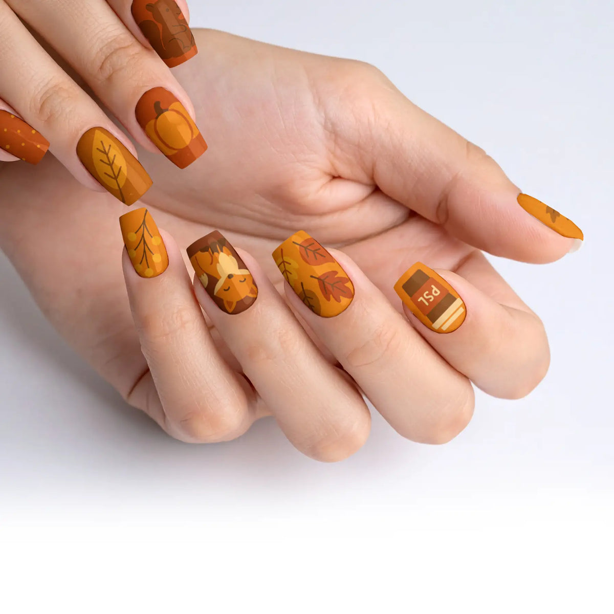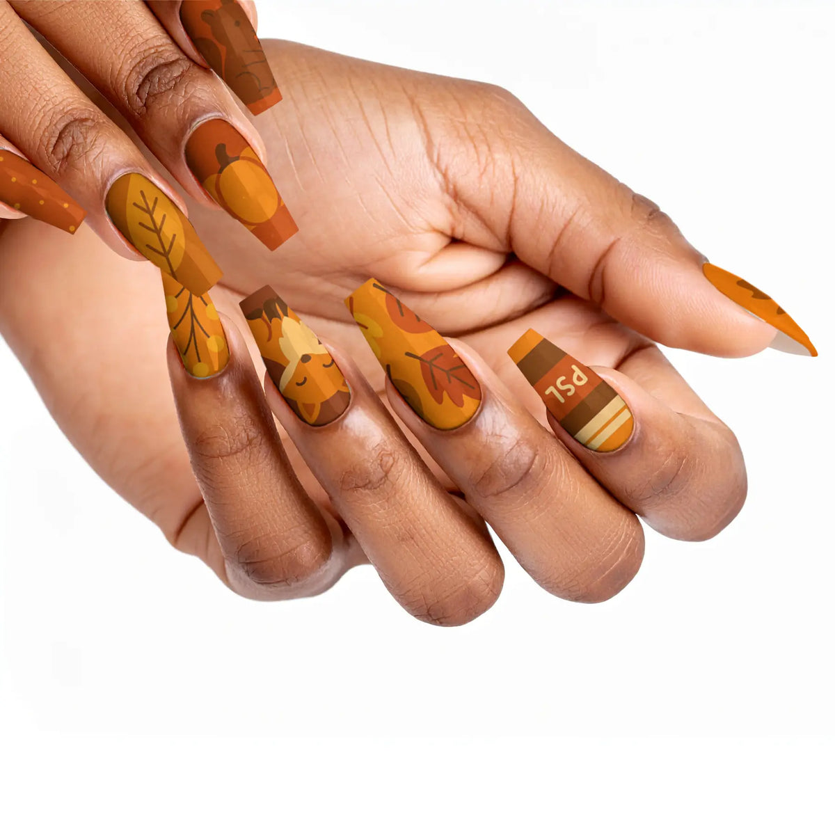 Step into the cozy embrace of autumn with our stunning collection of press-on nails, perfect for capturing the essence of a crisp, fall day. These chic nail designs draw inspiration from the rich, earthy palette of autumn, offering a range of brown tones that echo the beauty of nature. From the golden hues reminiscent of fallen leaves to the deep, inviting shades of espresso, each design is crafted to add a touch of seasonal elegance to your look. Transition seamlessly from a busy day at work to a sophisticated night out with these versatile press-ons.