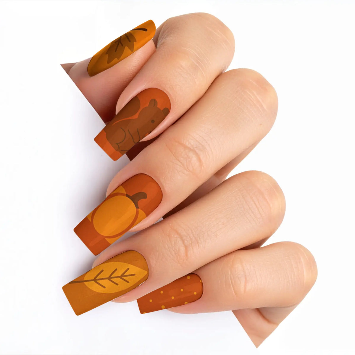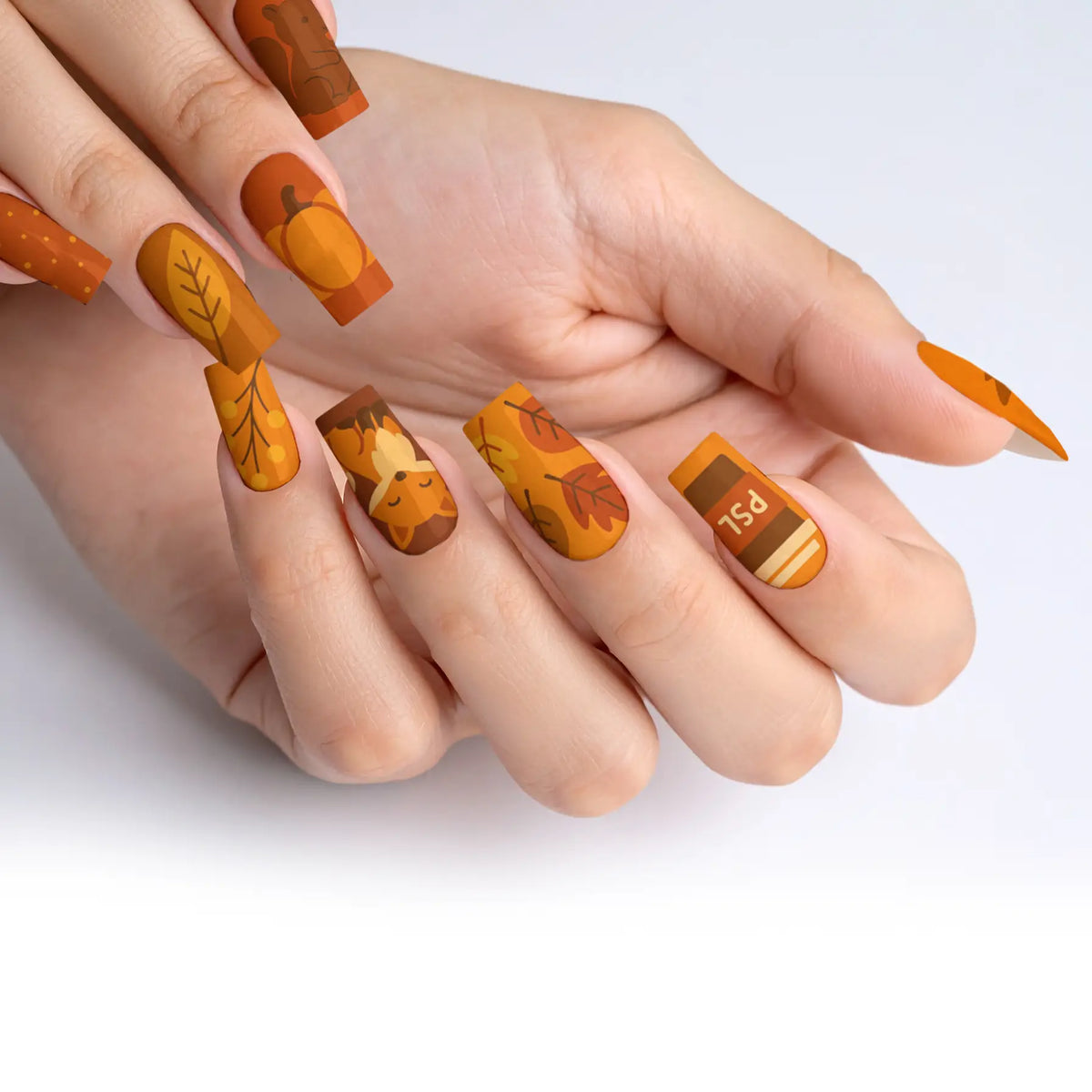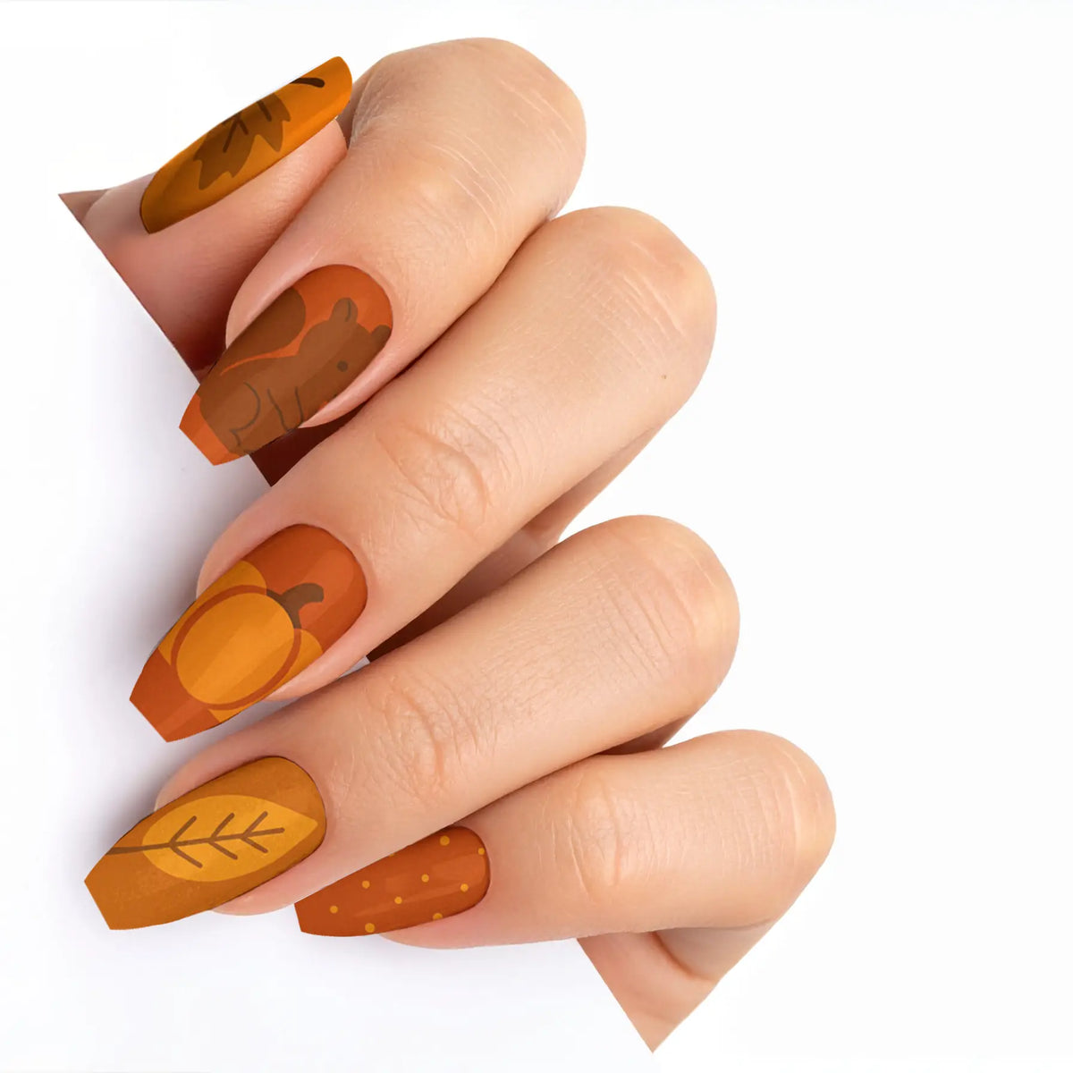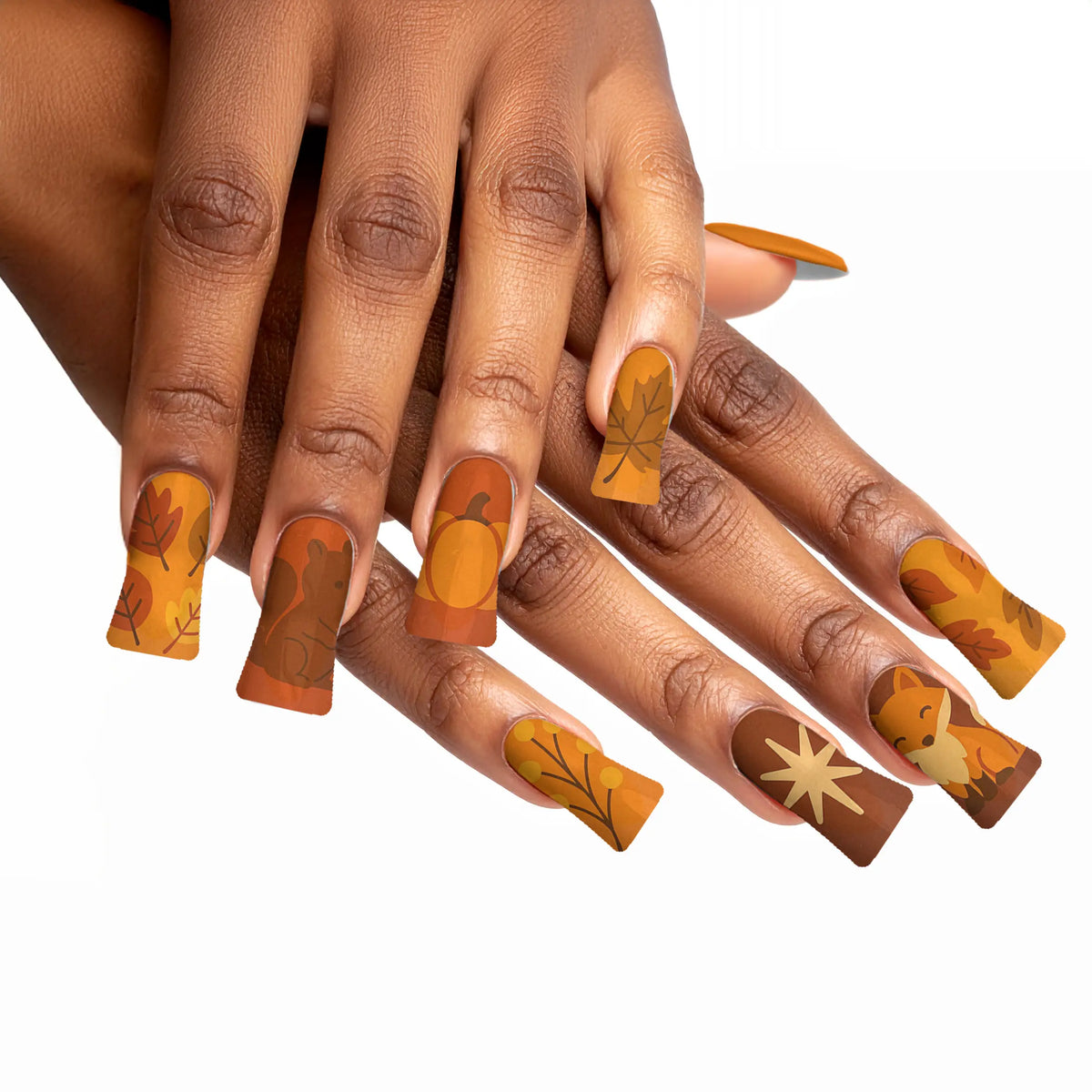 Step into the cozy embrace of autumn with our stunning collection of press-on nails, perfect for capturing the essence of a crisp, fall day. These chic nail designs draw inspiration from the rich, earthy palette of autumn, offering a range of brown tones that echo the beauty of nature. From the golden hues reminiscent of fallen leaves to the deep, inviting shades of espresso, each design is crafted to add a touch of seasonal elegance to your look. Transition seamlessly from a busy day at work to a sophisticated night out with these versatile press-ons.