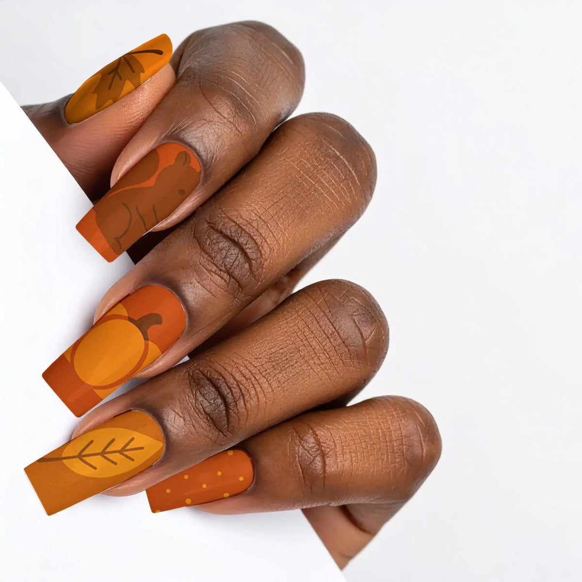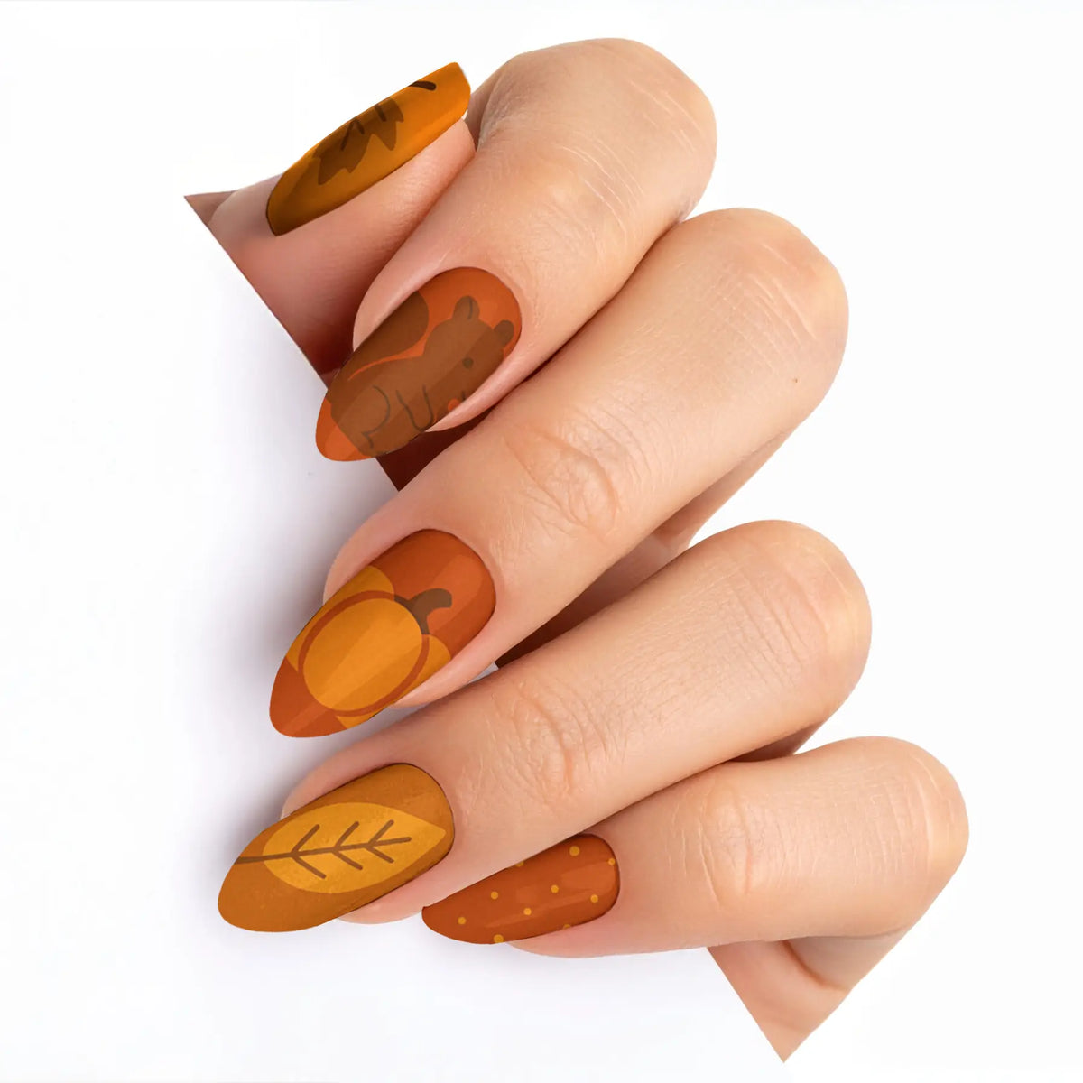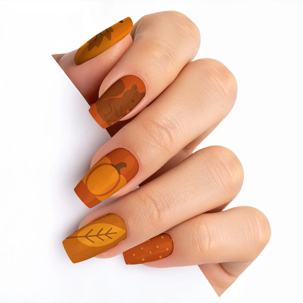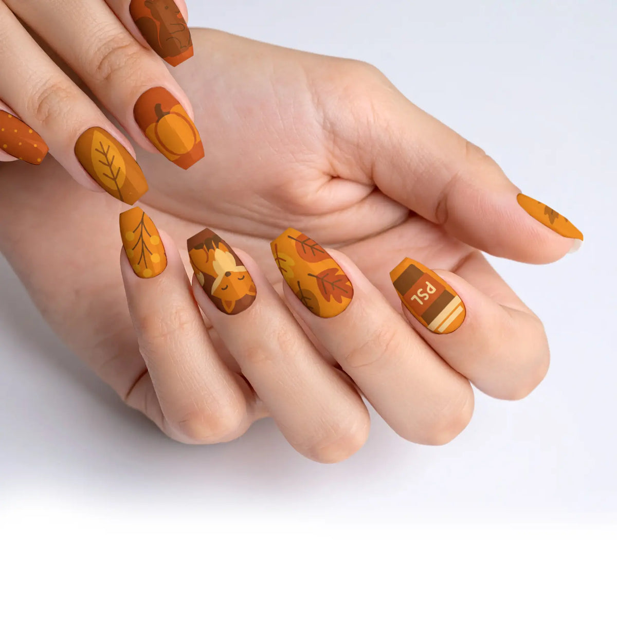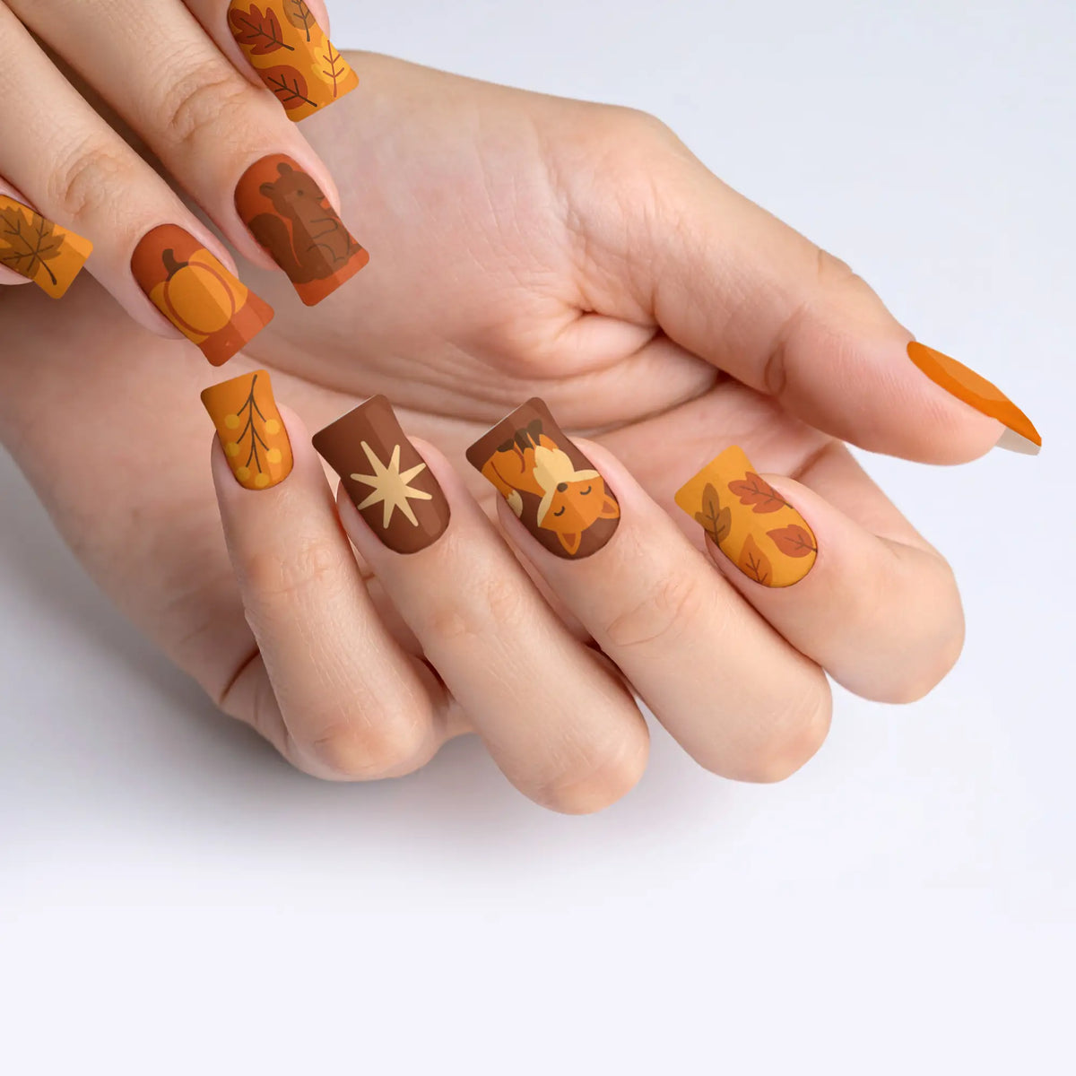 Step into the cozy embrace of autumn with our stunning collection of press-on nails, perfect for capturing the essence of a crisp, fall day. These chic nail designs draw inspiration from the rich, earthy palette of autumn, offering a range of brown tones that echo the beauty of nature. From the golden hues reminiscent of fallen leaves to the deep, inviting shades of espresso, each design is crafted to add a touch of seasonal elegance to your look. Transition seamlessly from a busy day at work to a sophisticated night out with these versatile press-ons.