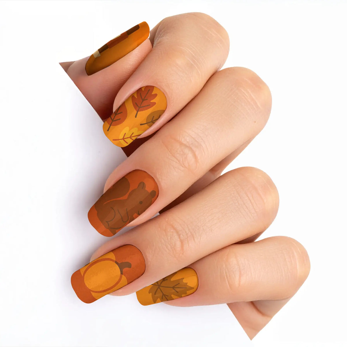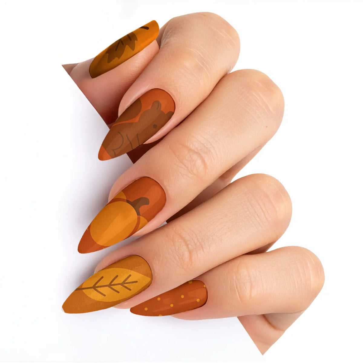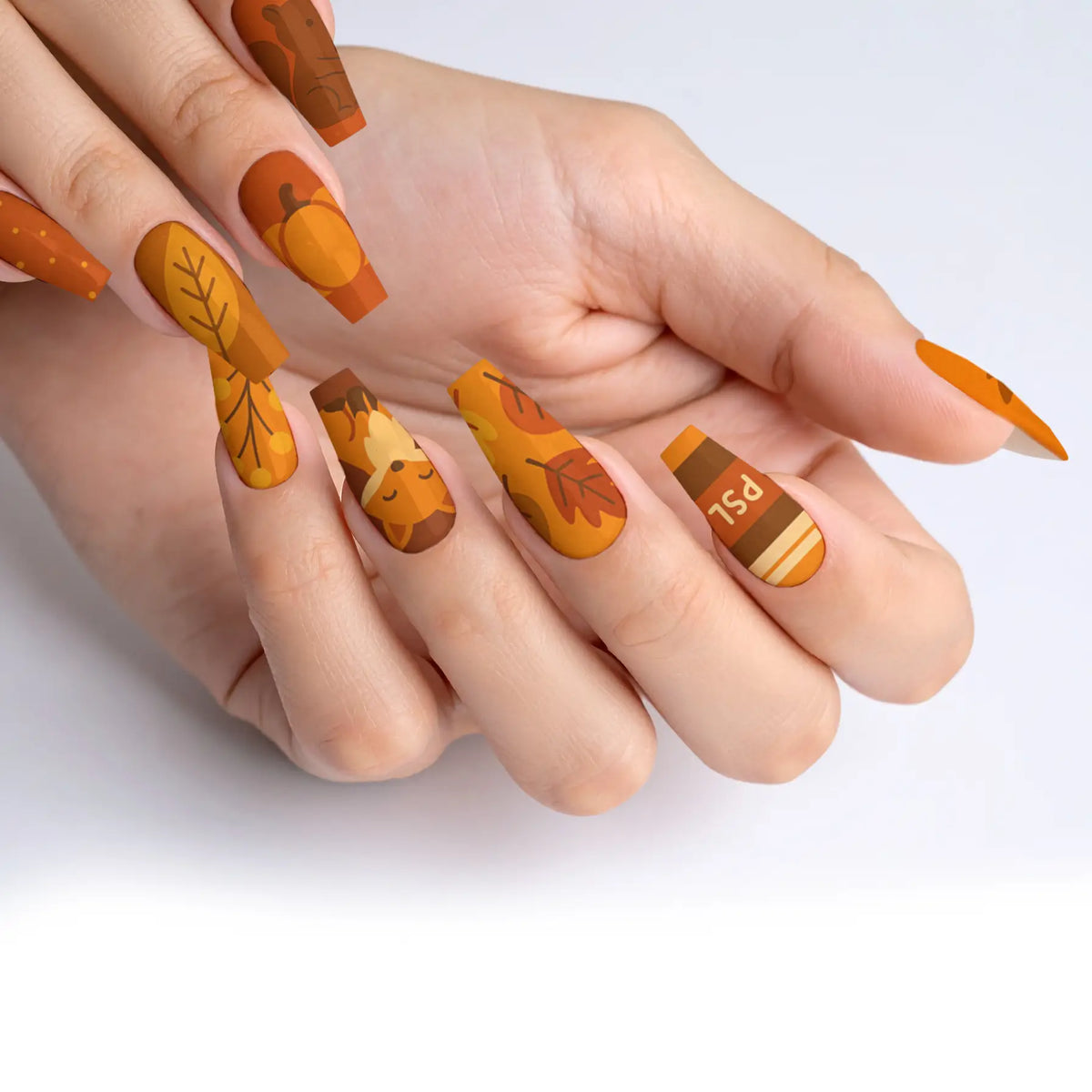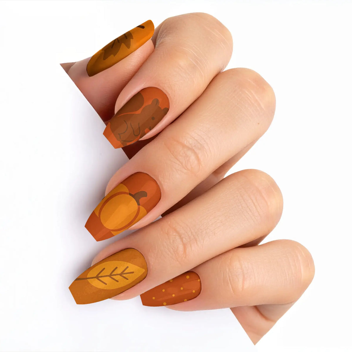 Step into the cozy embrace of autumn with our stunning collection of press-on nails, perfect for capturing the essence of a crisp, fall day. These chic nail designs draw inspiration from the rich, earthy palette of autumn, offering a range of brown tones that echo the beauty of nature. From the golden hues reminiscent of fallen leaves to the deep, inviting shades of espresso, each design is crafted to add a touch of seasonal elegance to your look. Transition seamlessly from a busy day at work to a sophisticated night out with these versatile press-ons.
