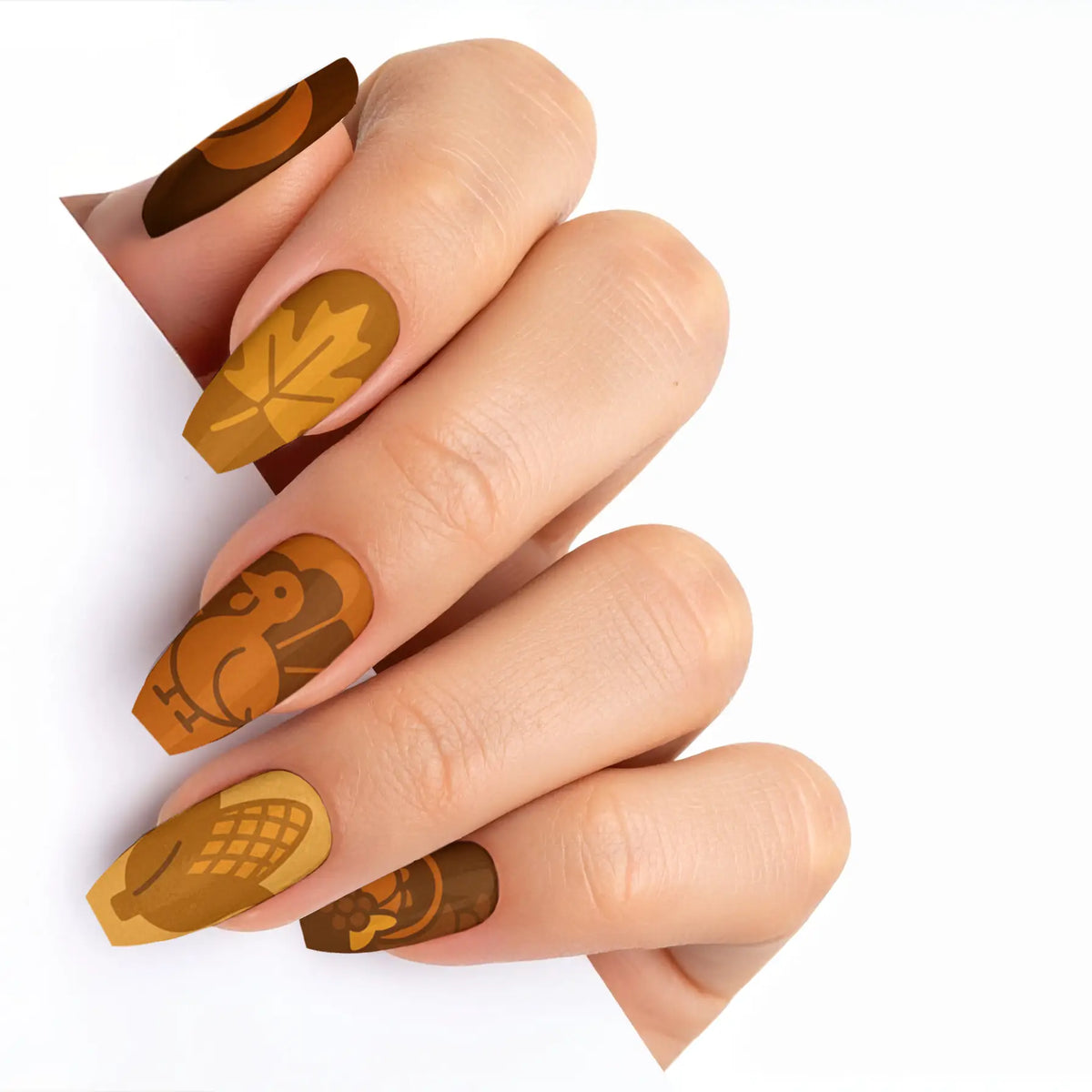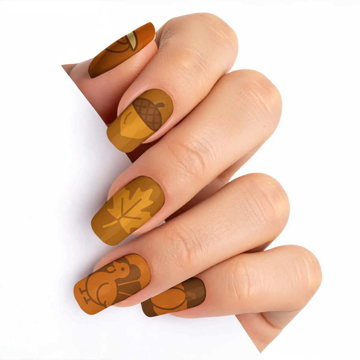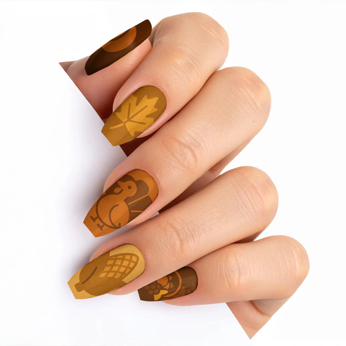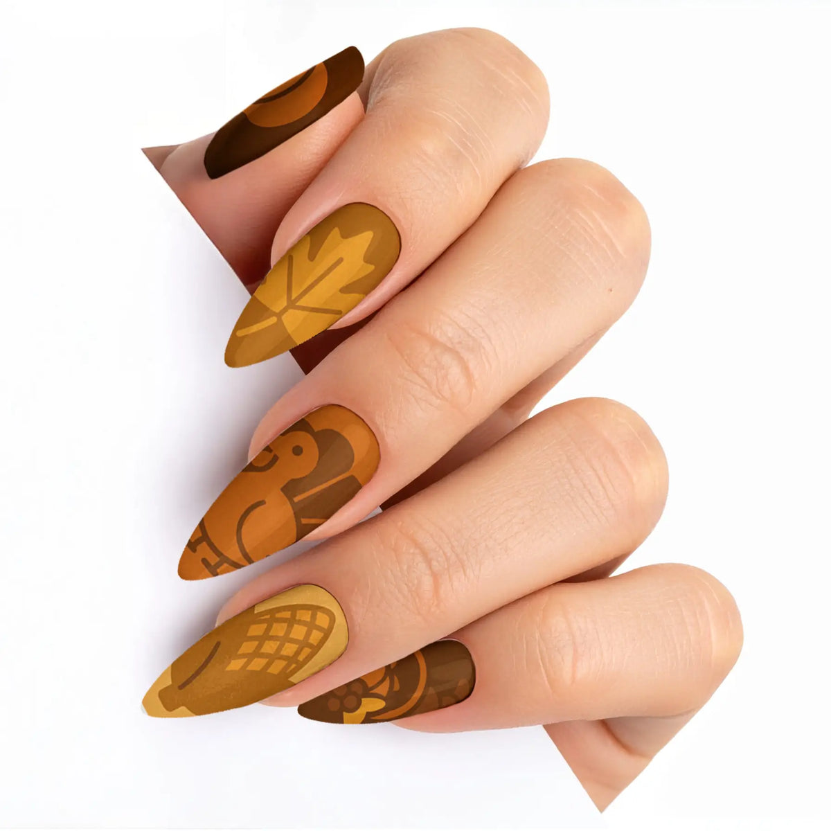 Turkey Toast Tips Brown Thanksgiving Press-On Nails
