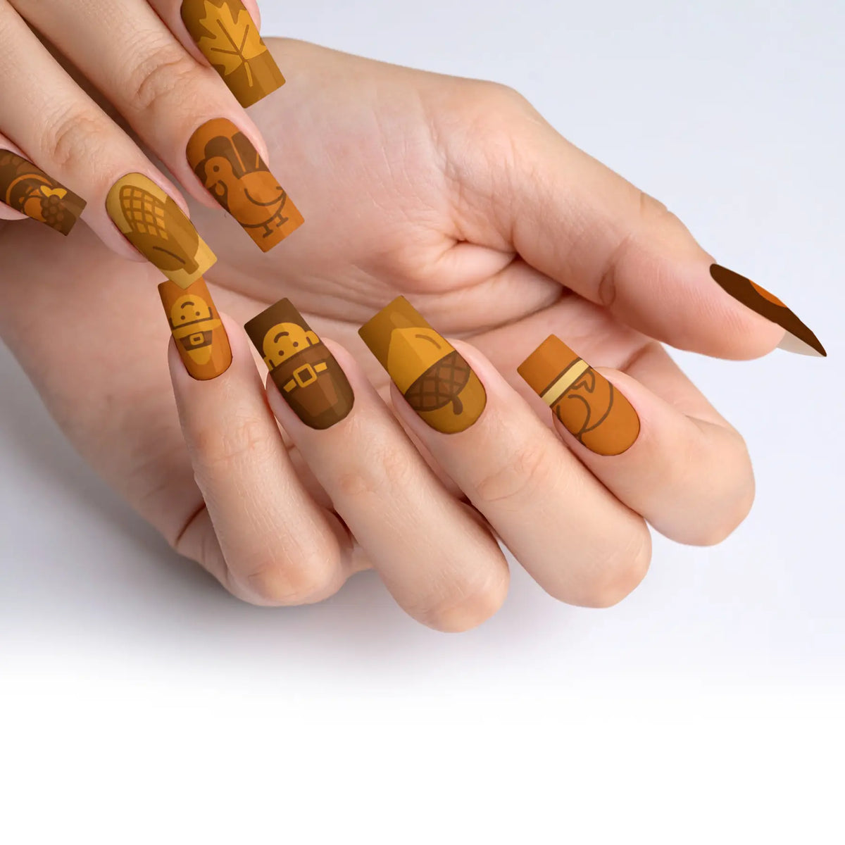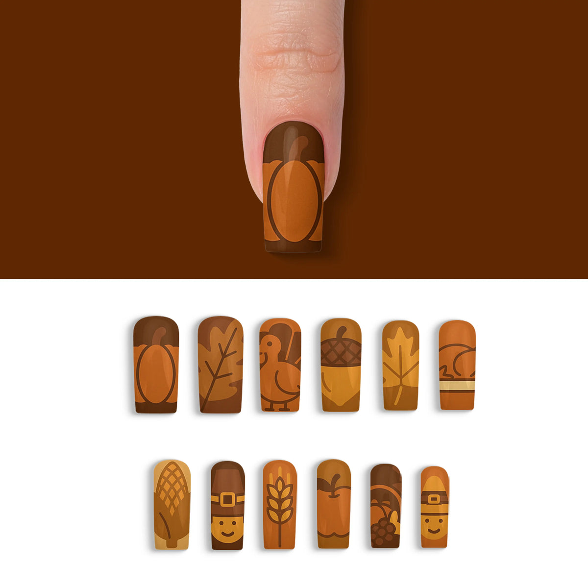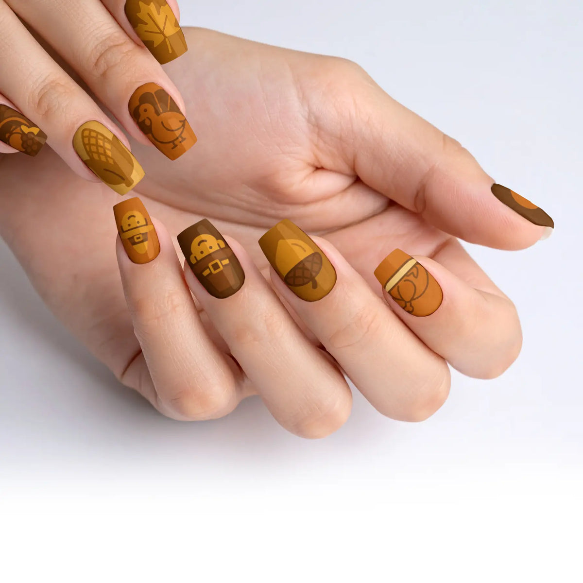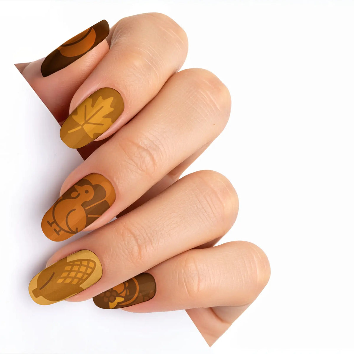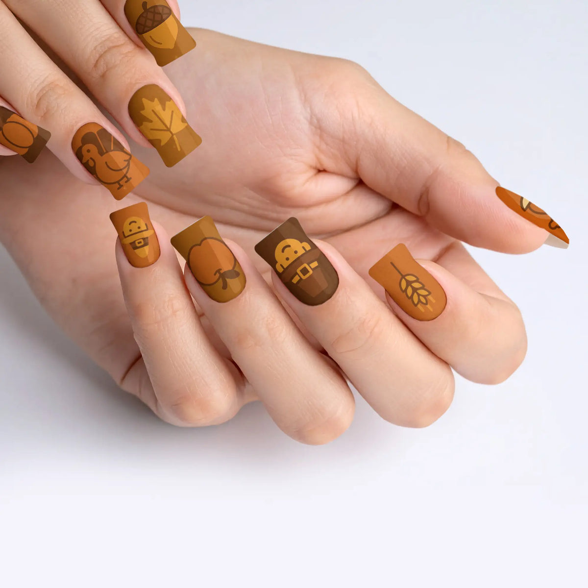 Turkey Toast Tips Brown Thanksgiving Press-On Nails