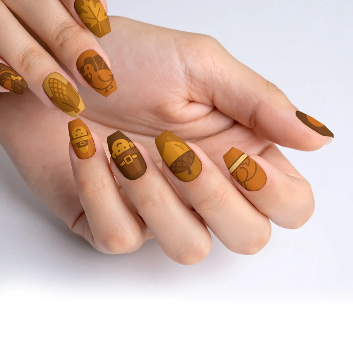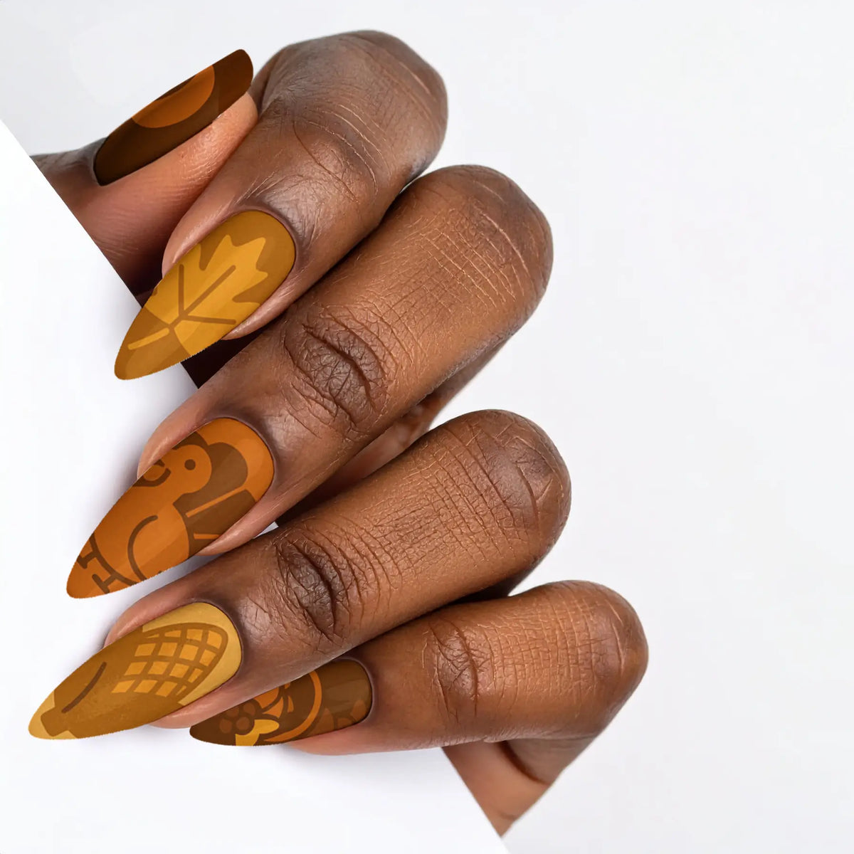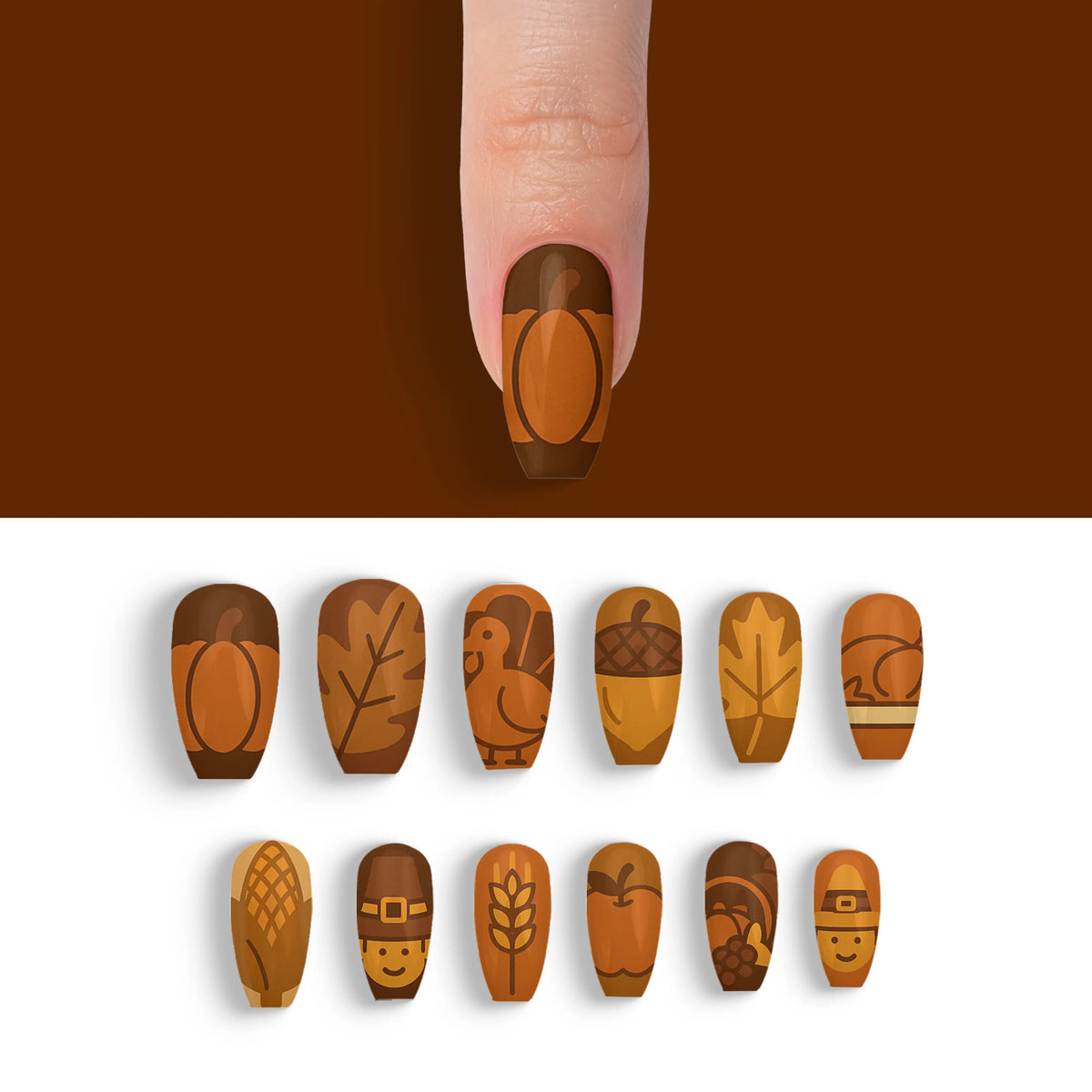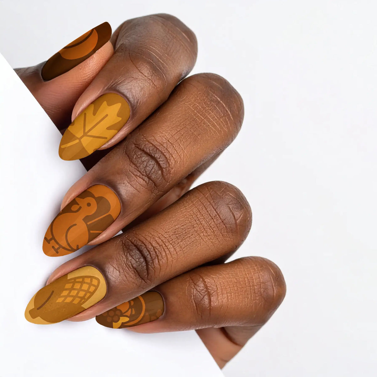 Turkey Toast Tips Brown Thanksgiving Press-On Nails
