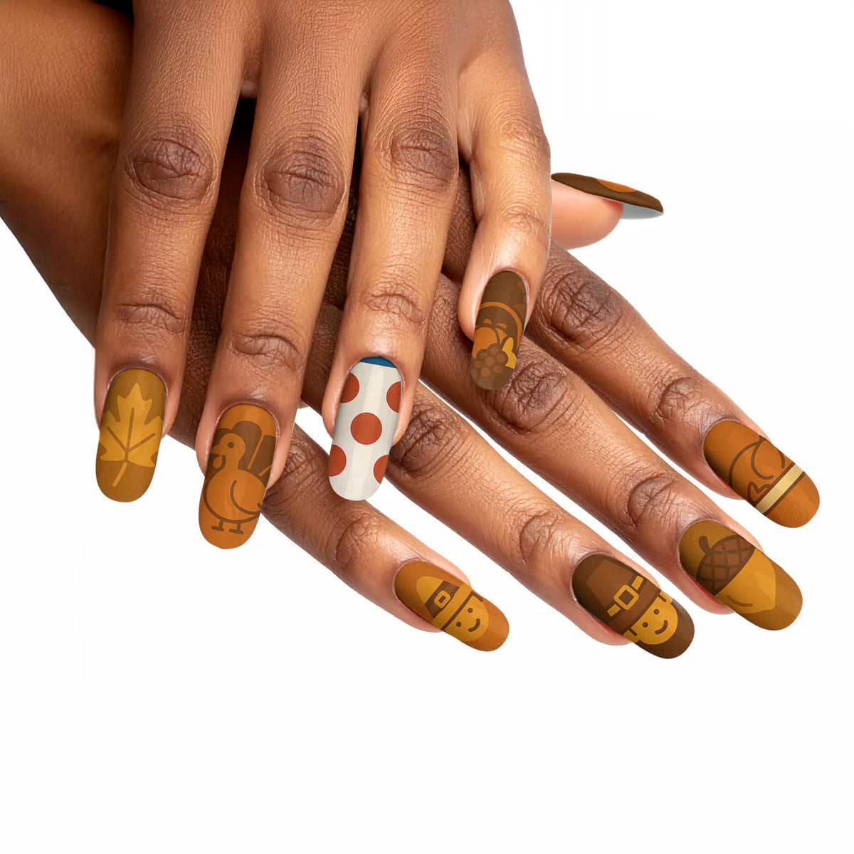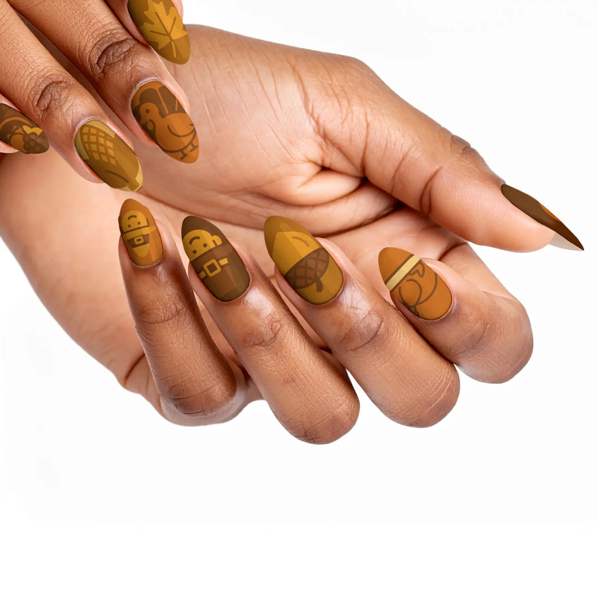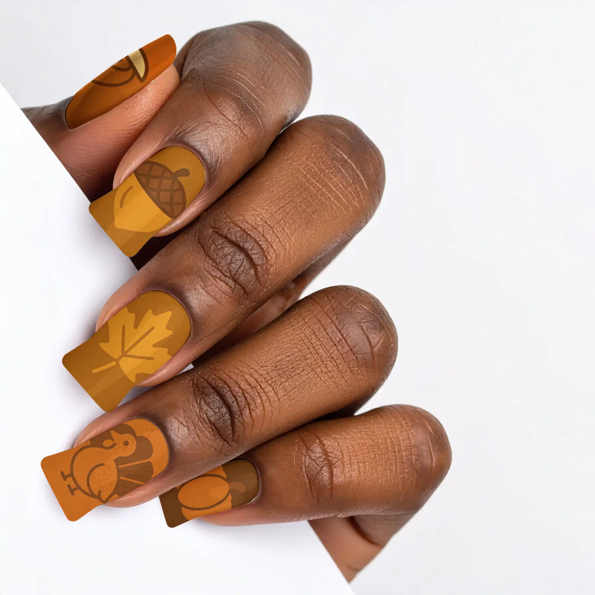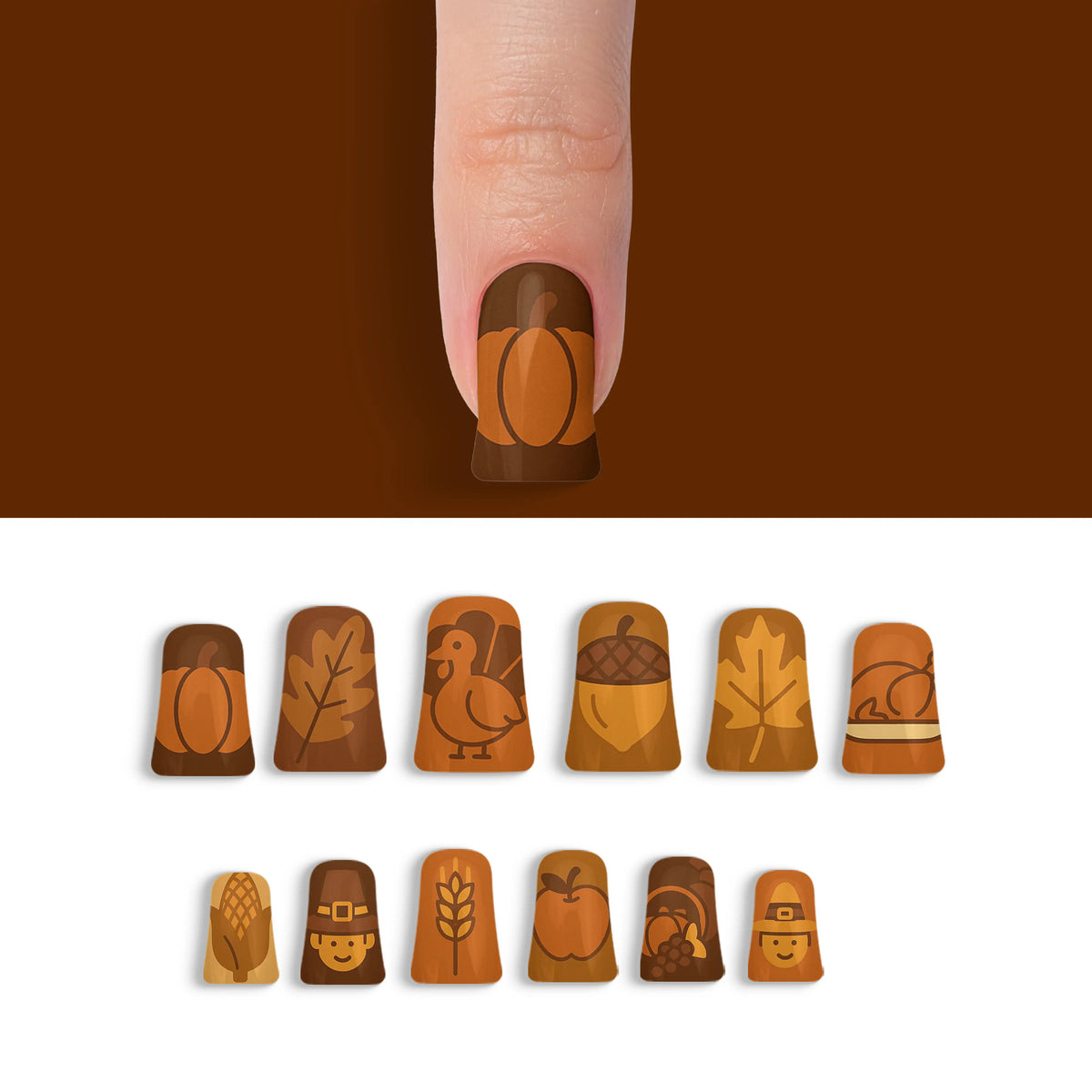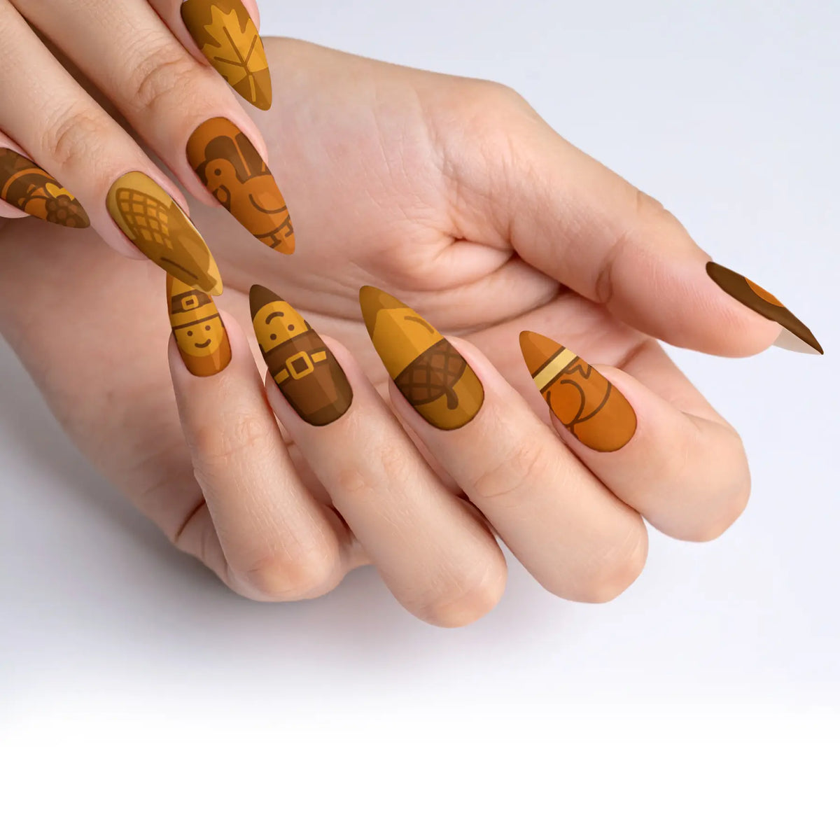 Turkey Toast Tips Brown Thanksgiving Press-On Nails