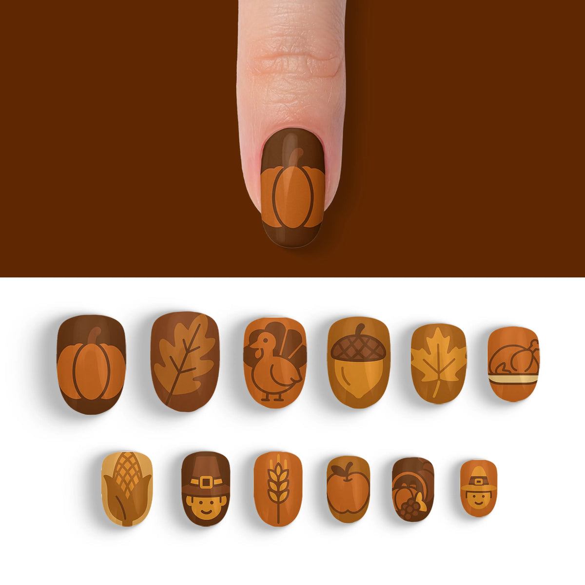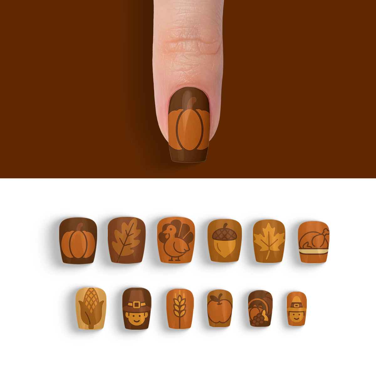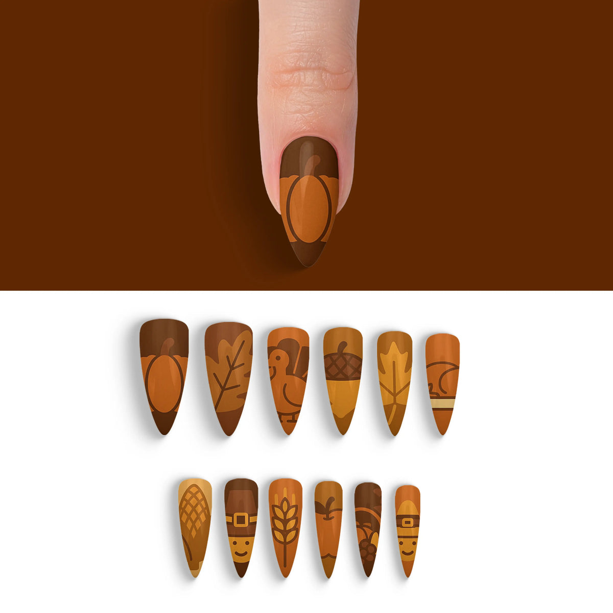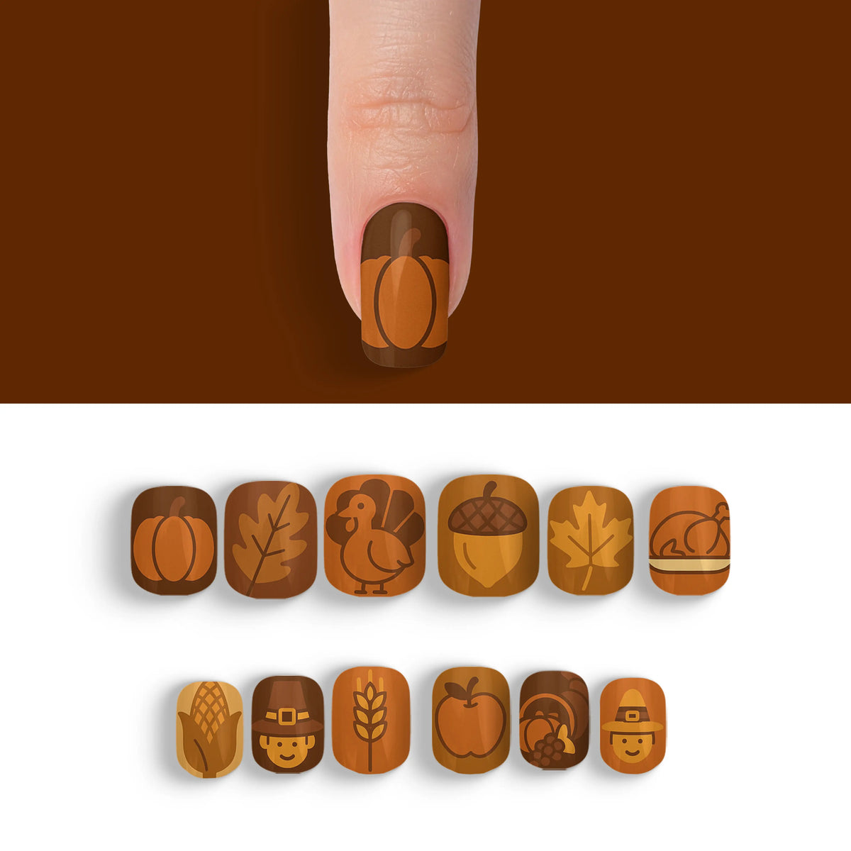 Turkey Toast Tips Brown Thanksgiving Press-On Nails