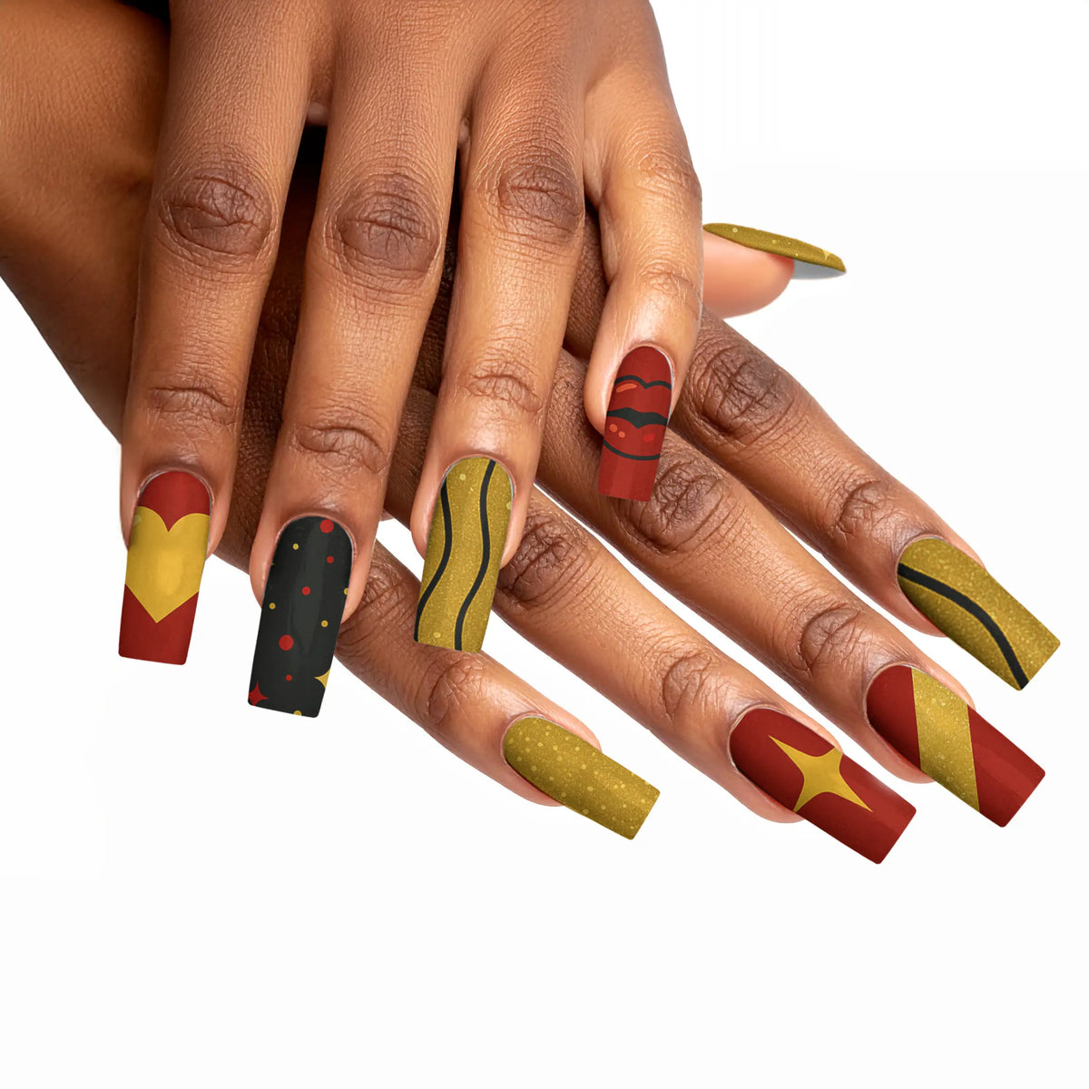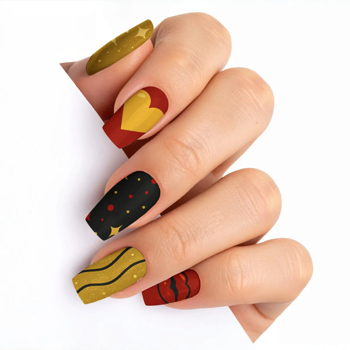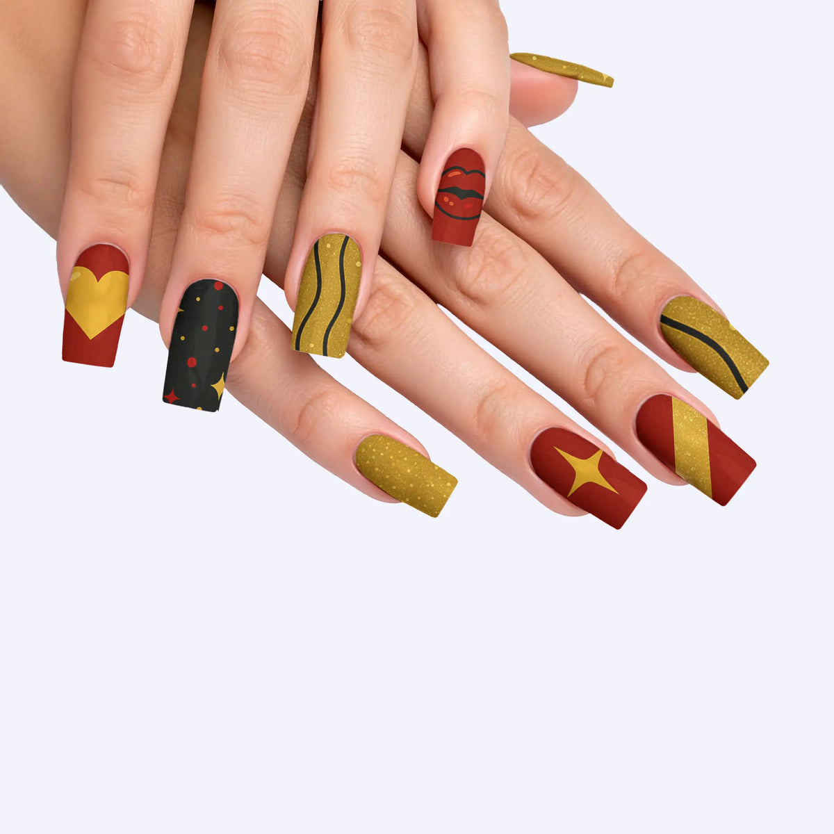 Step into a realm of sophistication with our Velvet Va-Va-Voomb Glam Press-On Nails, designed to infuse your style with a touch of luxury and glamour. This exclusive set is crafted to perfection, offering an elegant upgrade to any outfit, whether you're attending a lavish event or adding flair to your daily ensemble. Enjoy the convenience of salon-quality nails without leaving your home. Each chic design is not only a testament to style but also built to last, ensuring your nails remain flawless through your dynamic lifestyle.