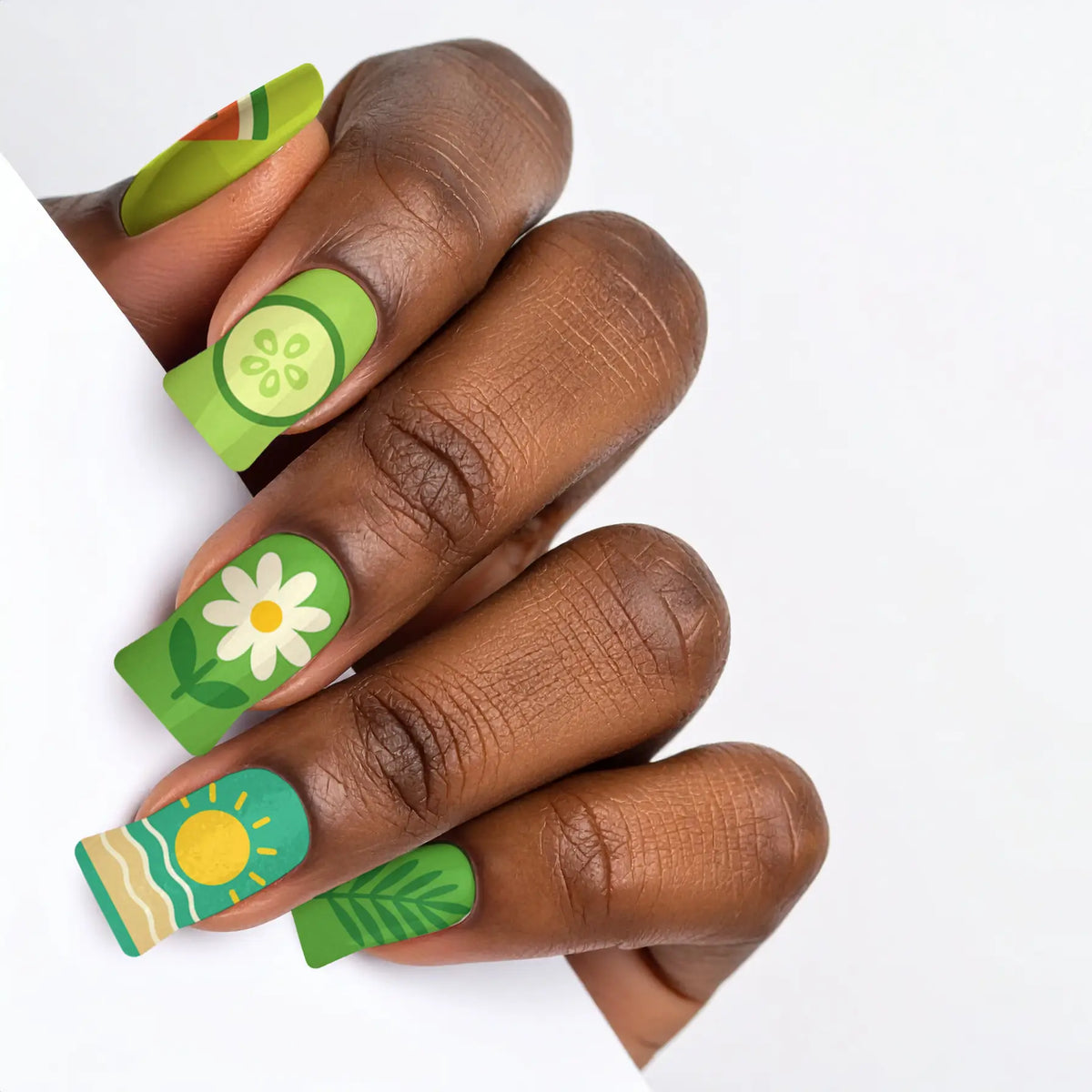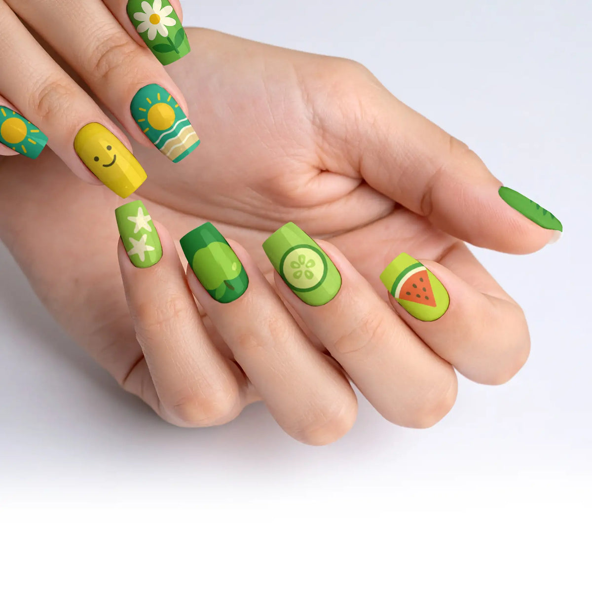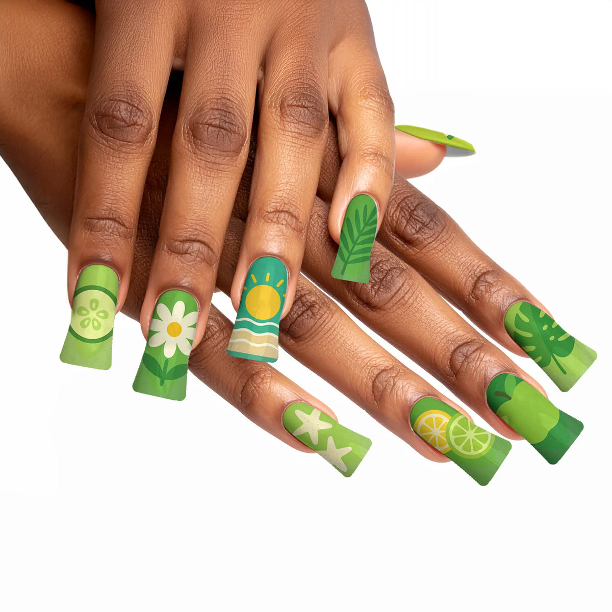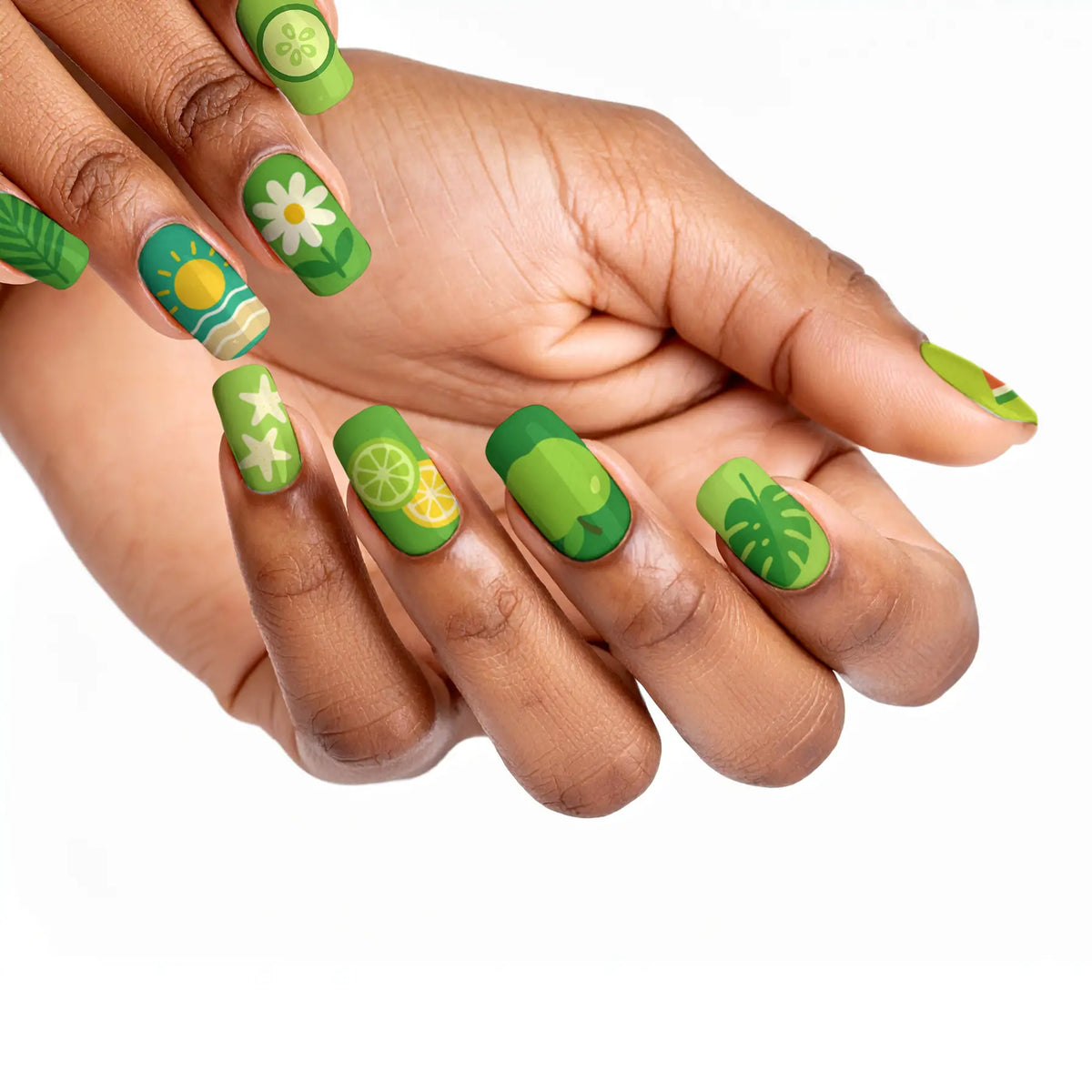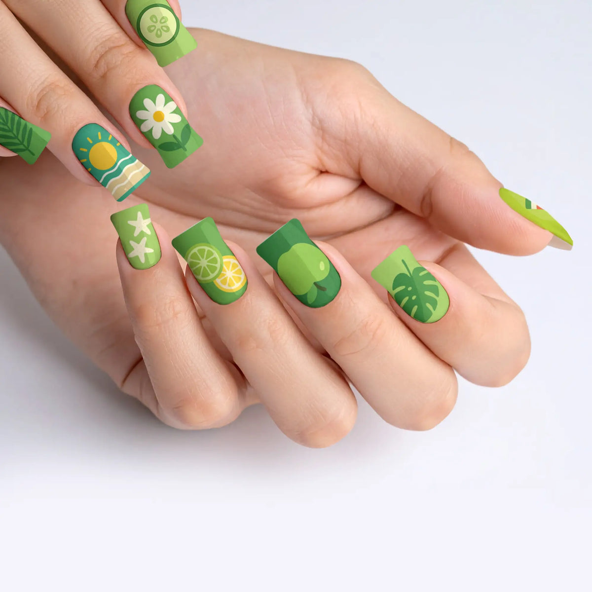 Step into a world where nature's vibrancy meets chic elegance with our Verdant Splash Greenery Vivacity Press-On Nails. This collection is your ticket to making a bold and refreshing statement, inspired by the lush beauty of nature's greens. Each set offers a seamless blend of style and sophistication, perfect for those who want to effortlessly capture attention. With a palette of refreshing green hues and 12 distinct designs, your nails will exude a fresh and modern flair, ideal for any occasion. Enjoy the convenience of a salon-quality finish right at home, with a simple application process that guarantees both durability and reusability.