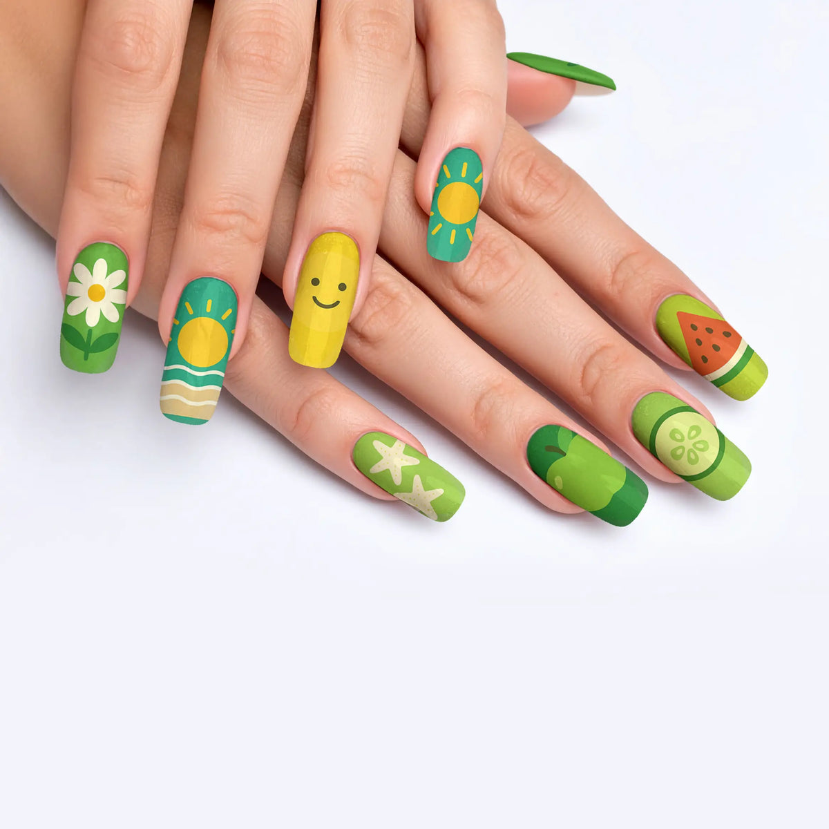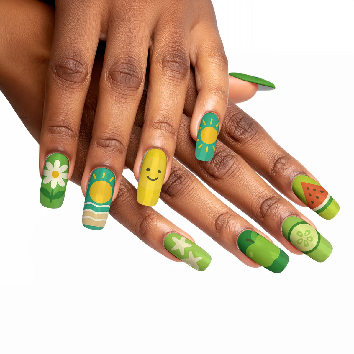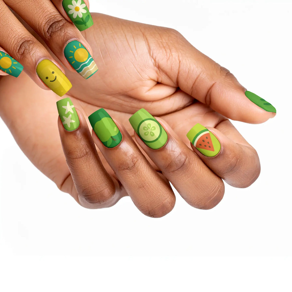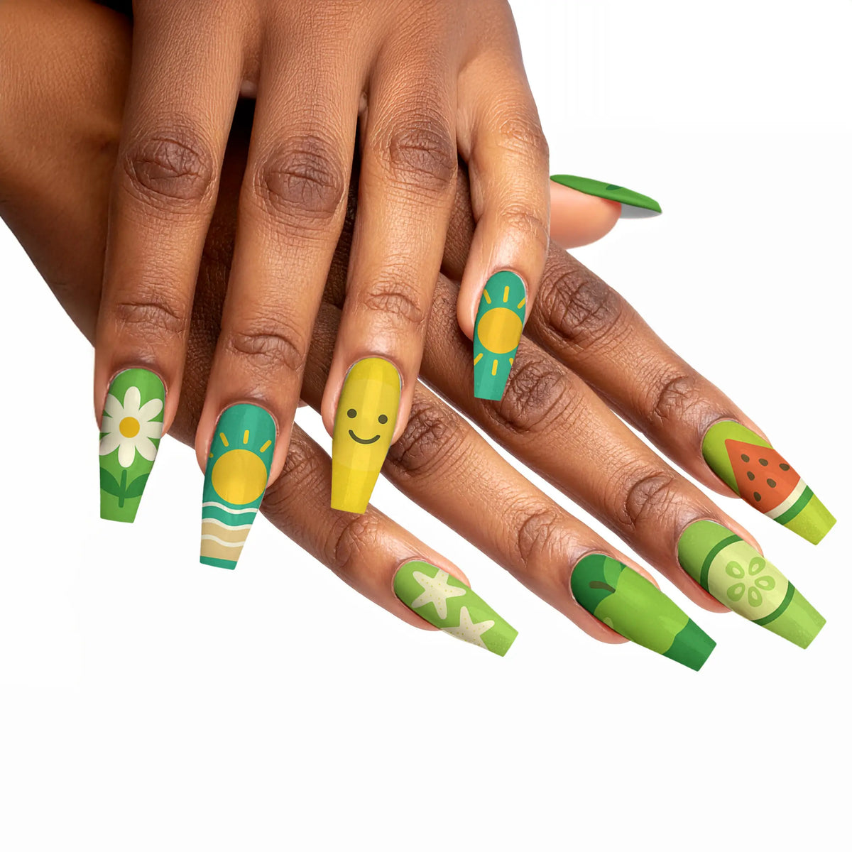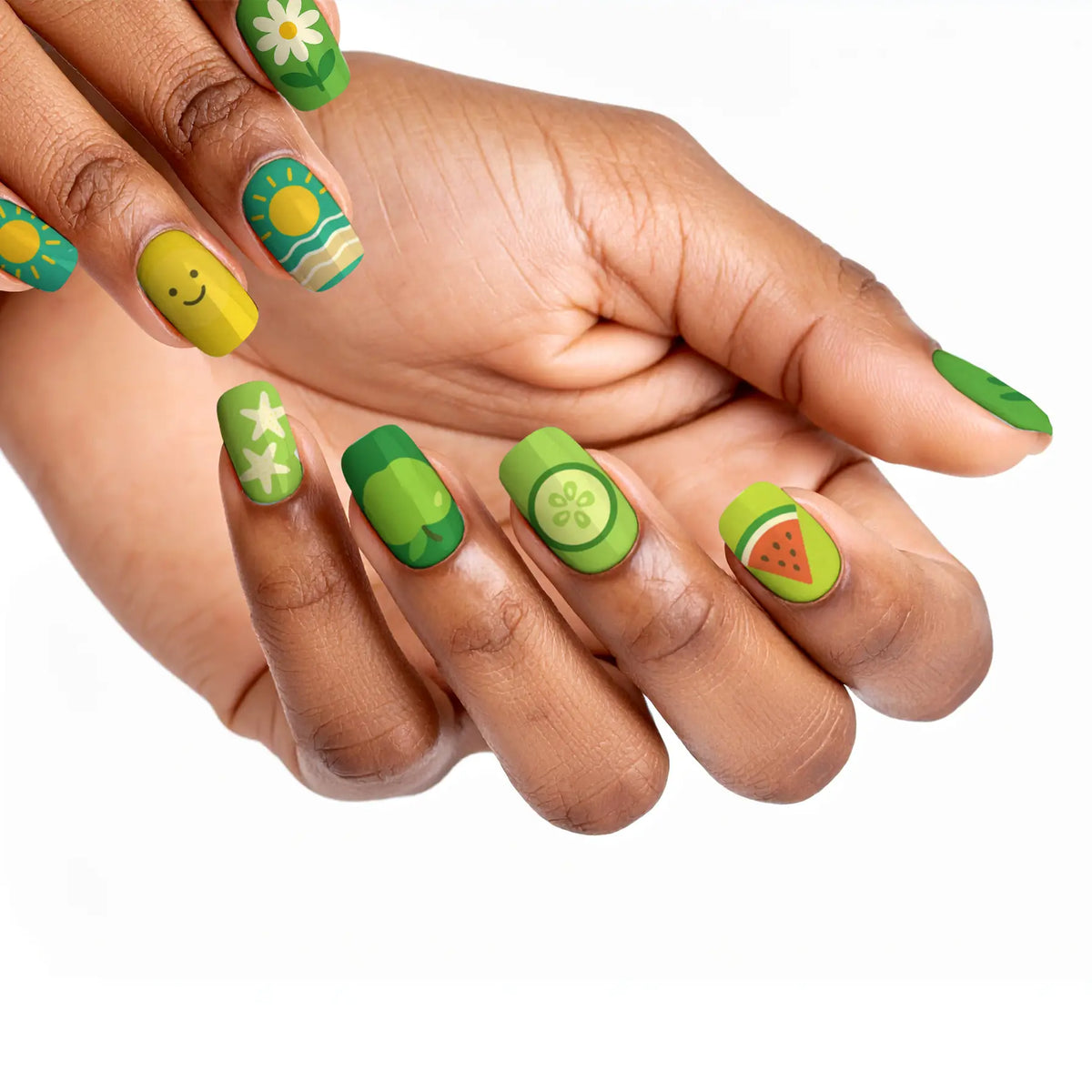 Step into a world where nature's vibrancy meets chic elegance with our Verdant Splash Greenery Vivacity Press-On Nails. This collection is your ticket to making a bold and refreshing statement, inspired by the lush beauty of nature's greens. Each set offers a seamless blend of style and sophistication, perfect for those who want to effortlessly capture attention. With a palette of refreshing green hues and 12 distinct designs, your nails will exude a fresh and modern flair, ideal for any occasion. Enjoy the convenience of a salon-quality finish right at home, with a simple application process that guarantees both durability and reusability.