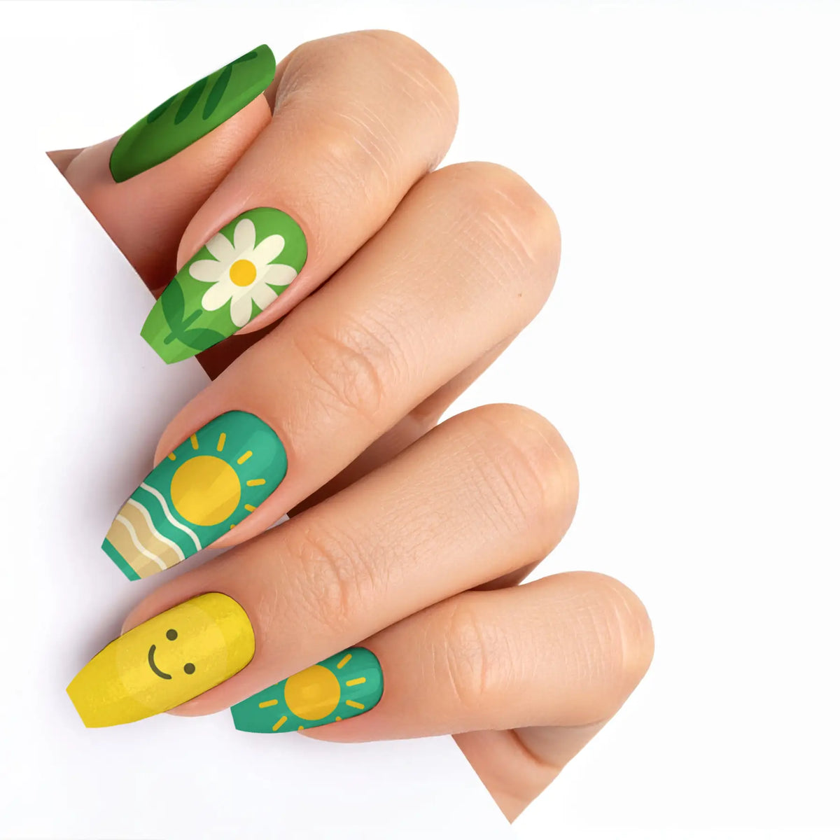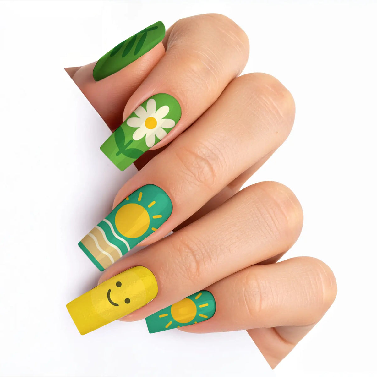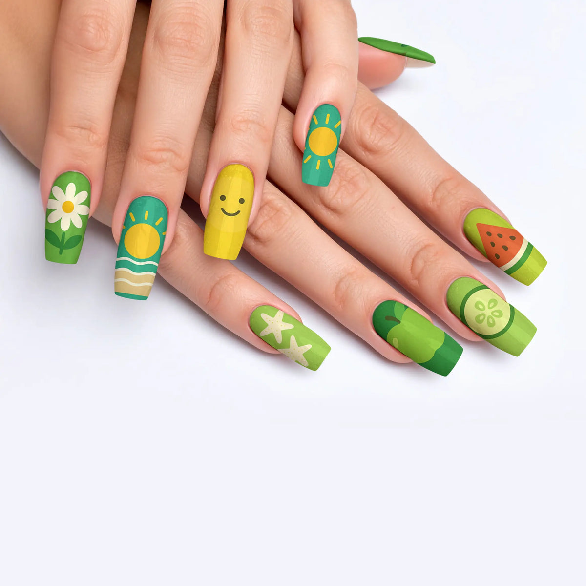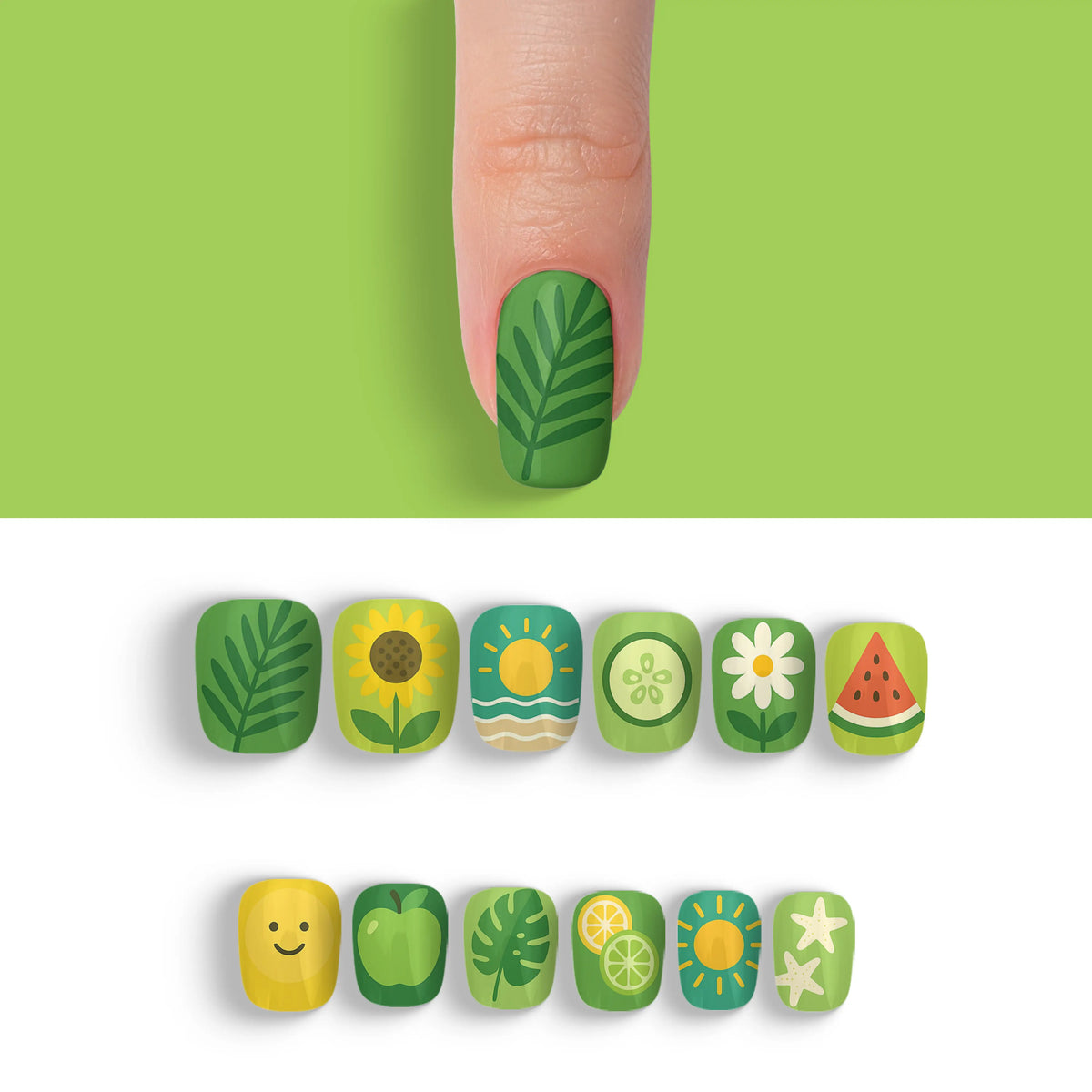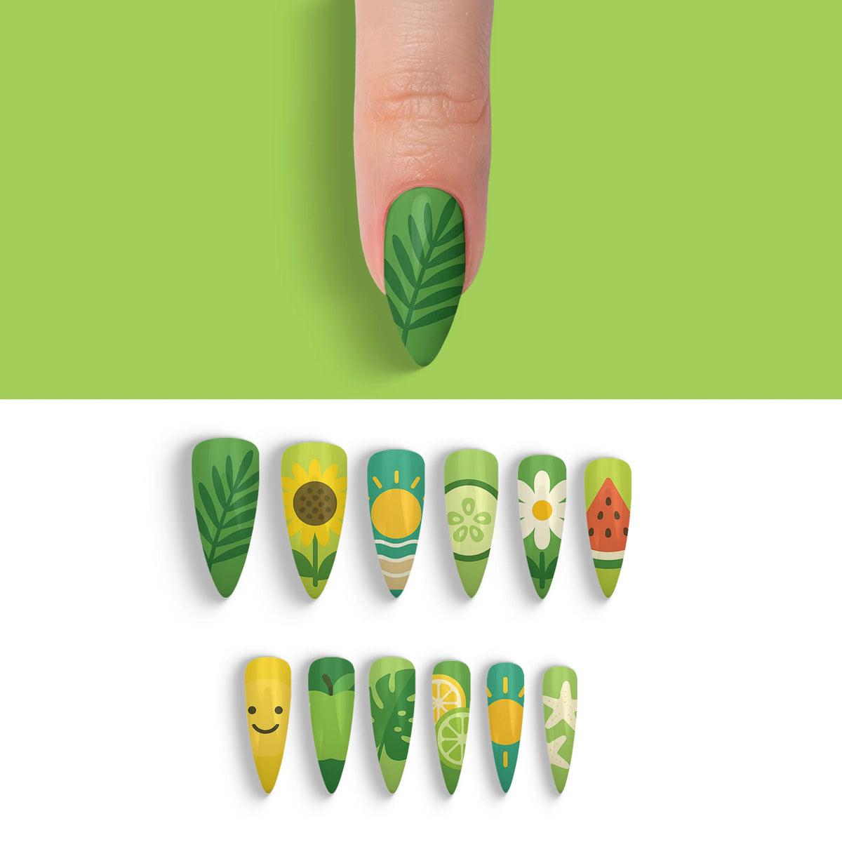 Step into a world where nature's vibrancy meets chic elegance with our Verdant Splash Greenery Vivacity Press-On Nails. This collection is your ticket to making a bold and refreshing statement, inspired by the lush beauty of nature's greens. Each set offers a seamless blend of style and sophistication, perfect for those who want to effortlessly capture attention. With a palette of refreshing green hues and 12 distinct designs, your nails will exude a fresh and modern flair, ideal for any occasion. Enjoy the convenience of a salon-quality finish right at home, with a simple application process that guarantees both durability and reusability.