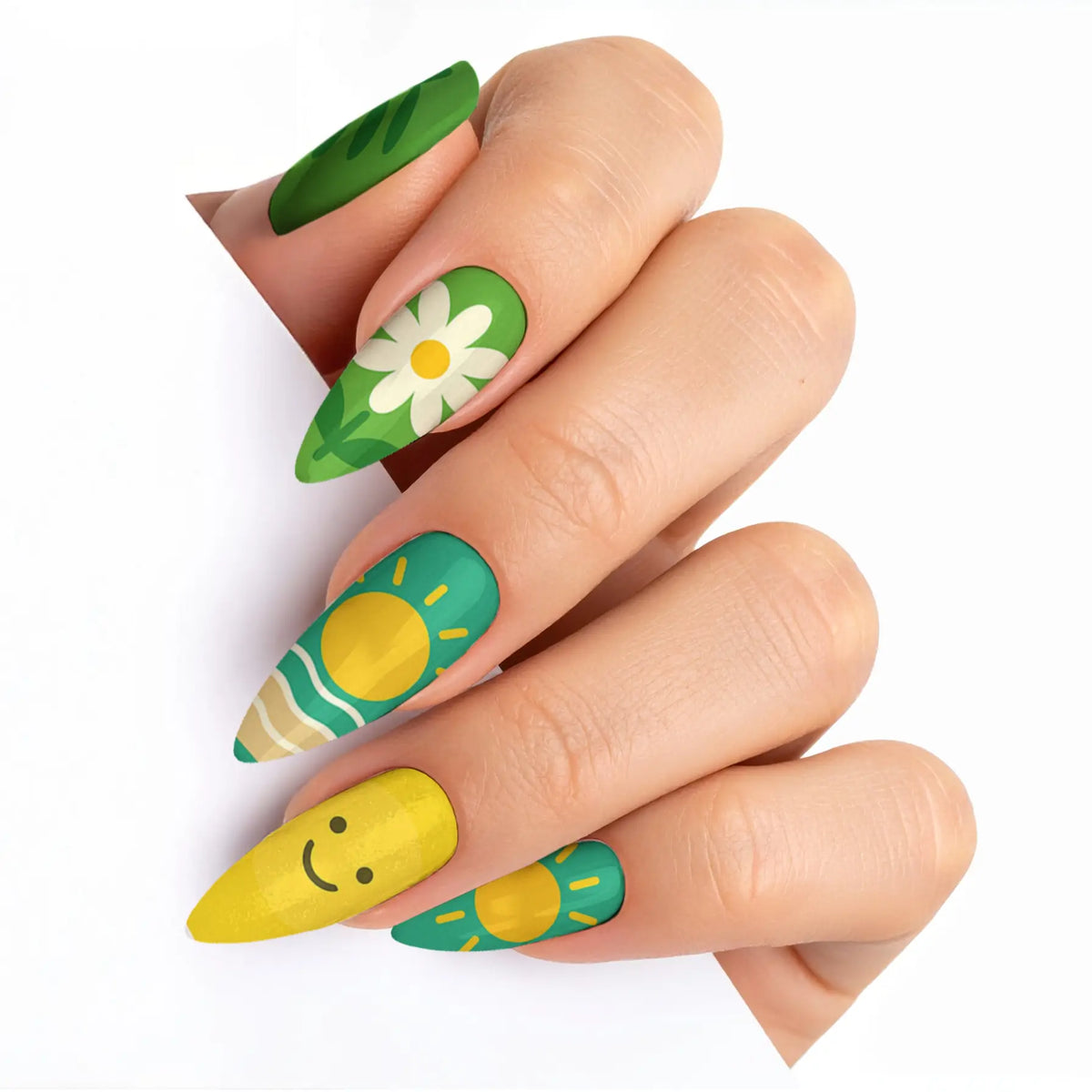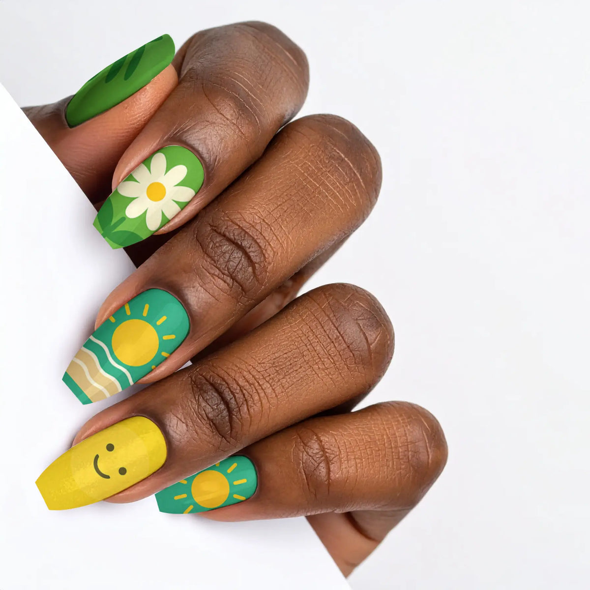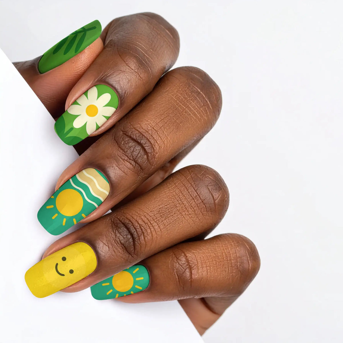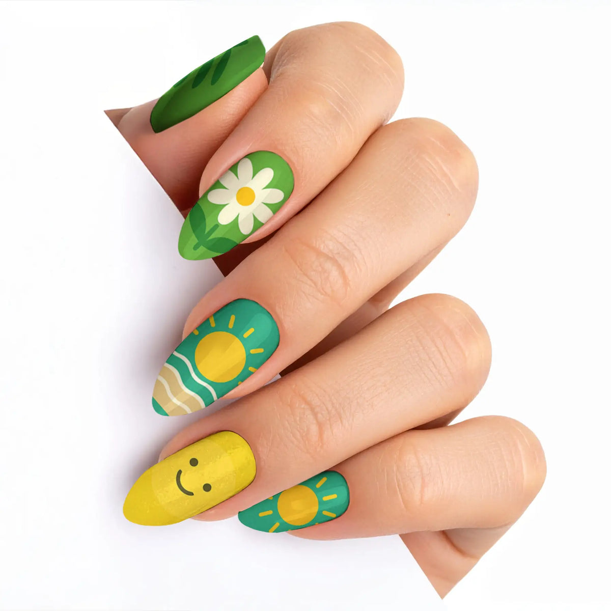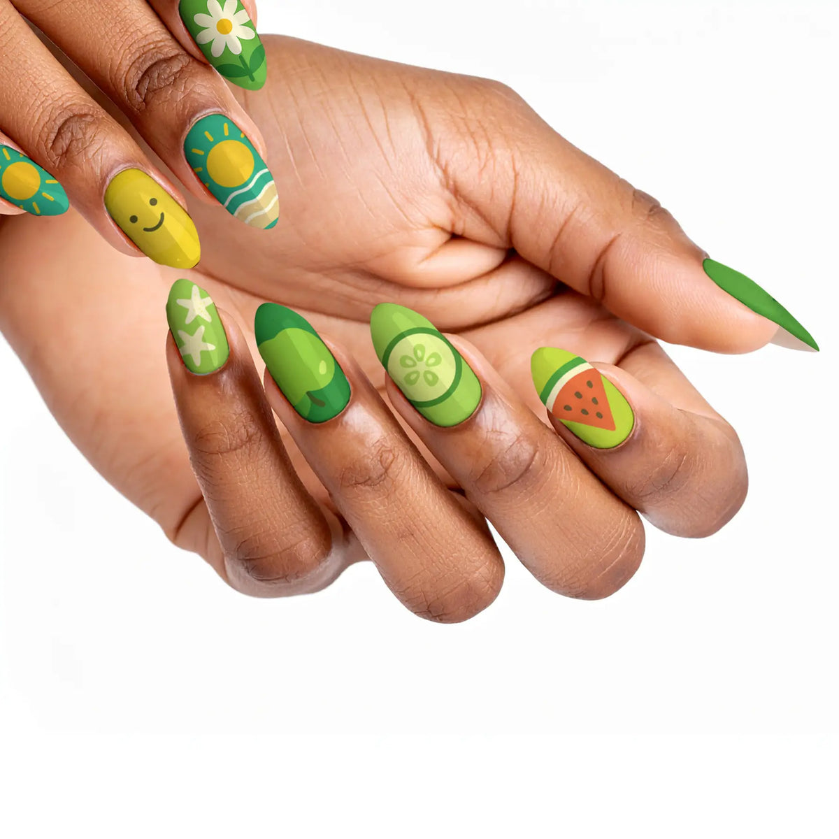 Step into a world where nature's vibrancy meets chic elegance with our Verdant Splash Greenery Vivacity Press-On Nails. This collection is your ticket to making a bold and refreshing statement, inspired by the lush beauty of nature's greens. Each set offers a seamless blend of style and sophistication, perfect for those who want to effortlessly capture attention. With a palette of refreshing green hues and 12 distinct designs, your nails will exude a fresh and modern flair, ideal for any occasion. Enjoy the convenience of a salon-quality finish right at home, with a simple application process that guarantees both durability and reusability.