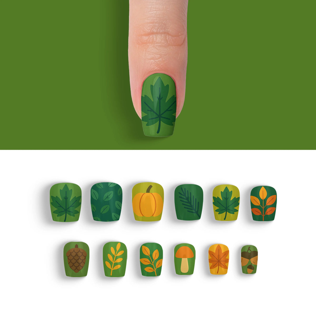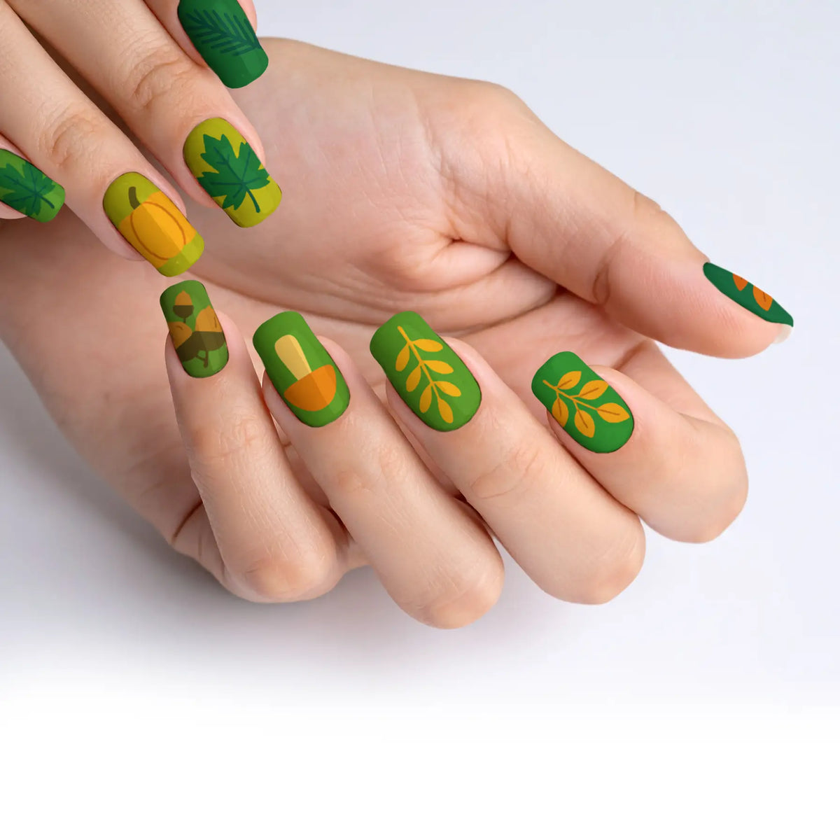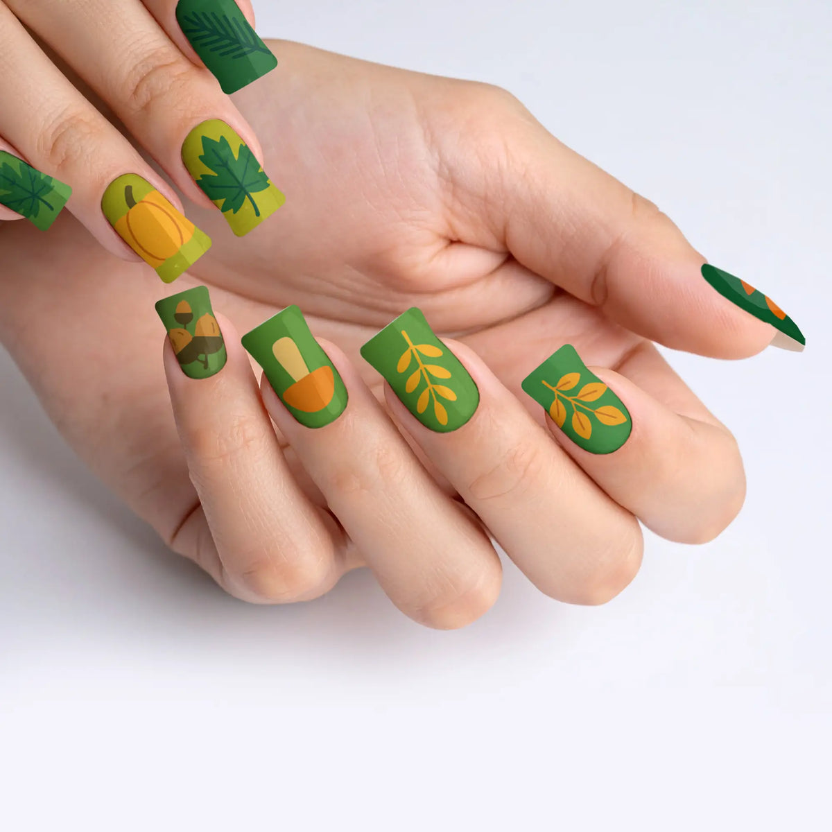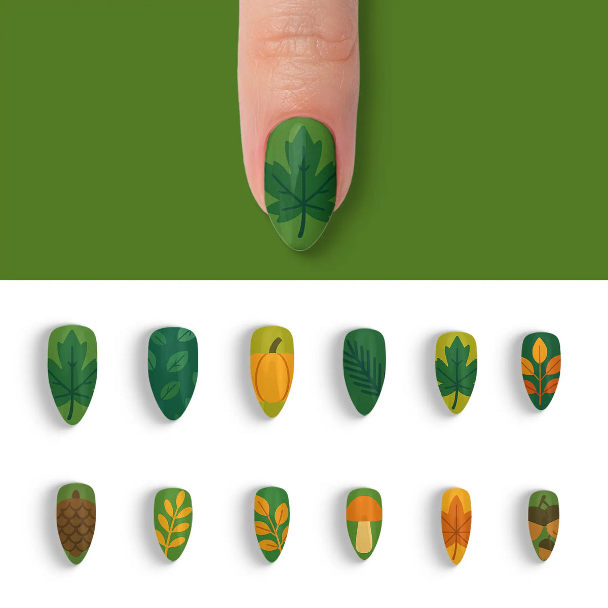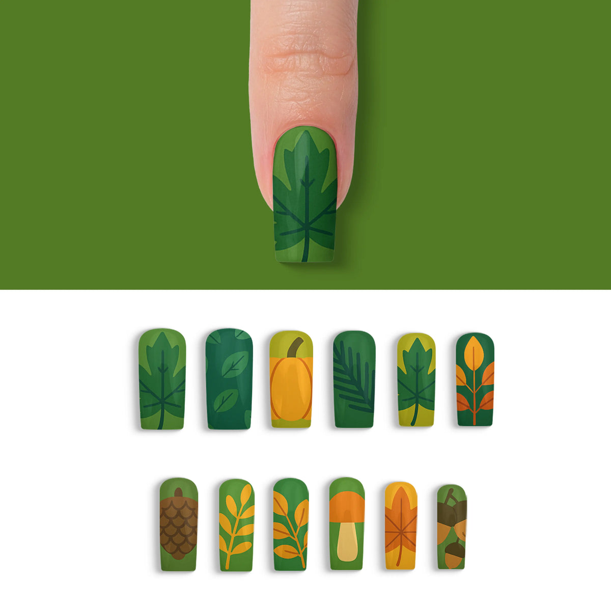 Step into a world of natural elegance with our Verdant Whirl Green Fall Press-On Nails, designed for those who adore the rich allure of green. This collection features 12 exclusive designs, each capturing the essence of the season's transition from the golden tones of autumn to the deep greens of evergreen forests. Enjoy salon-like quality in the comfort of your home, with shades that bring the vibrancy of nature to your fingertips.