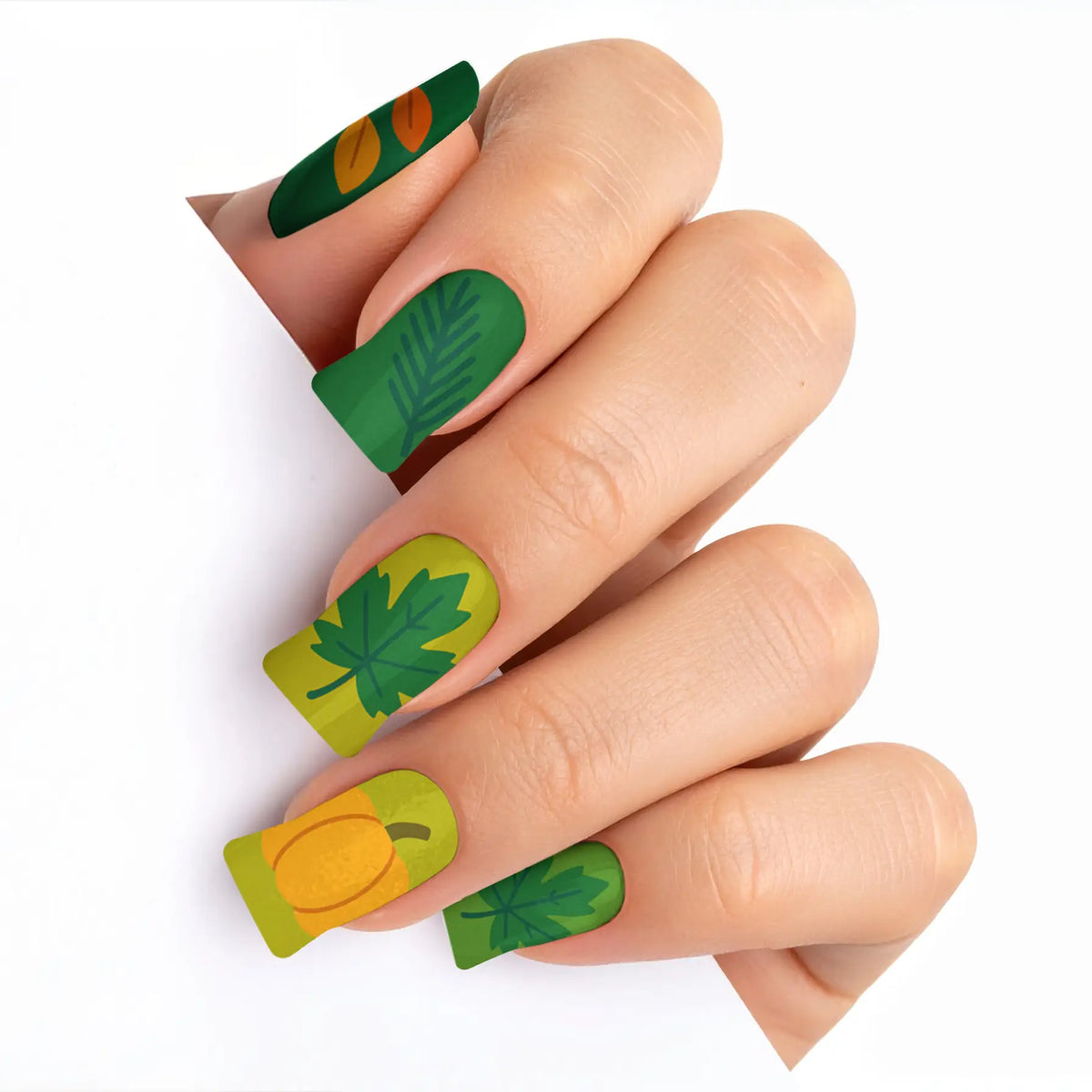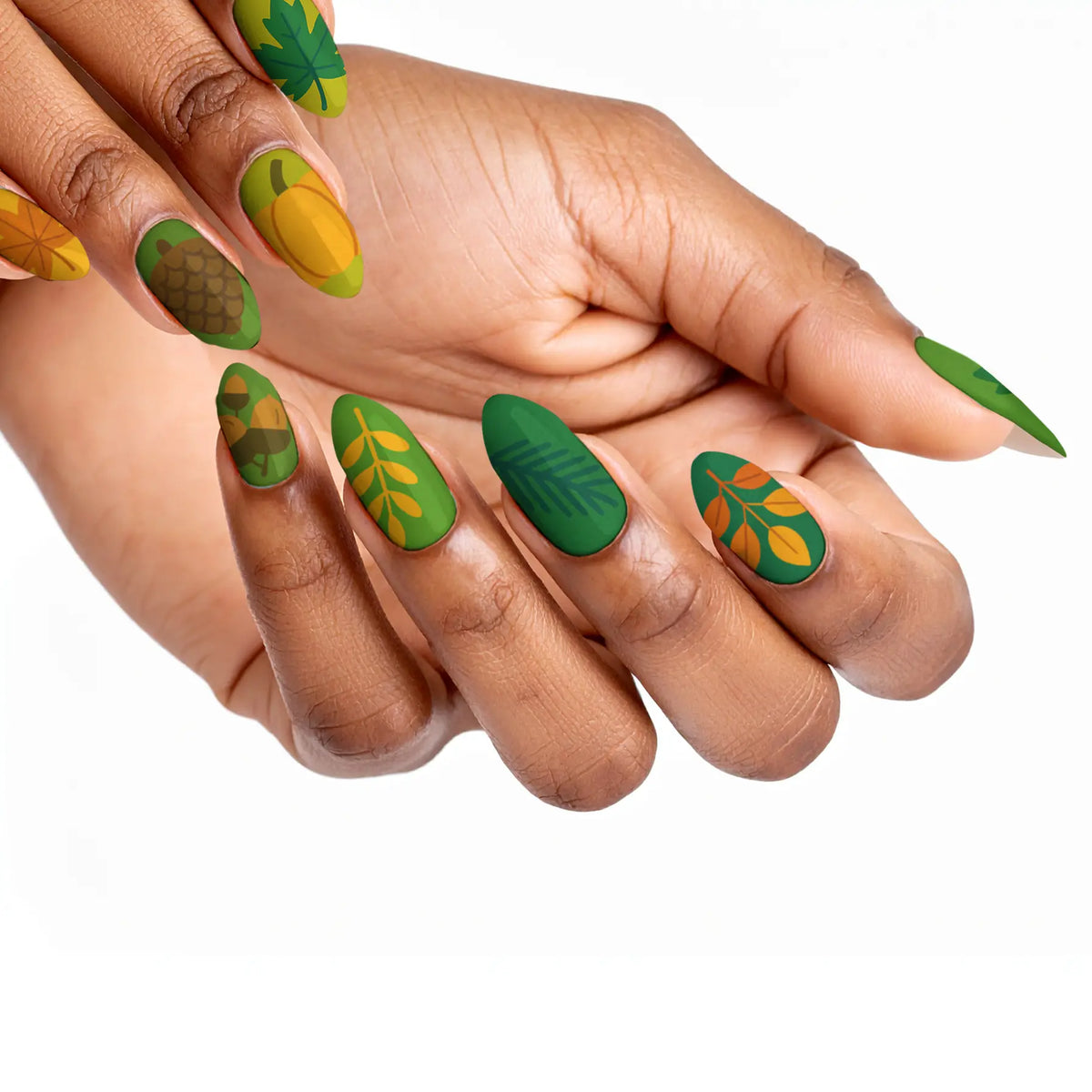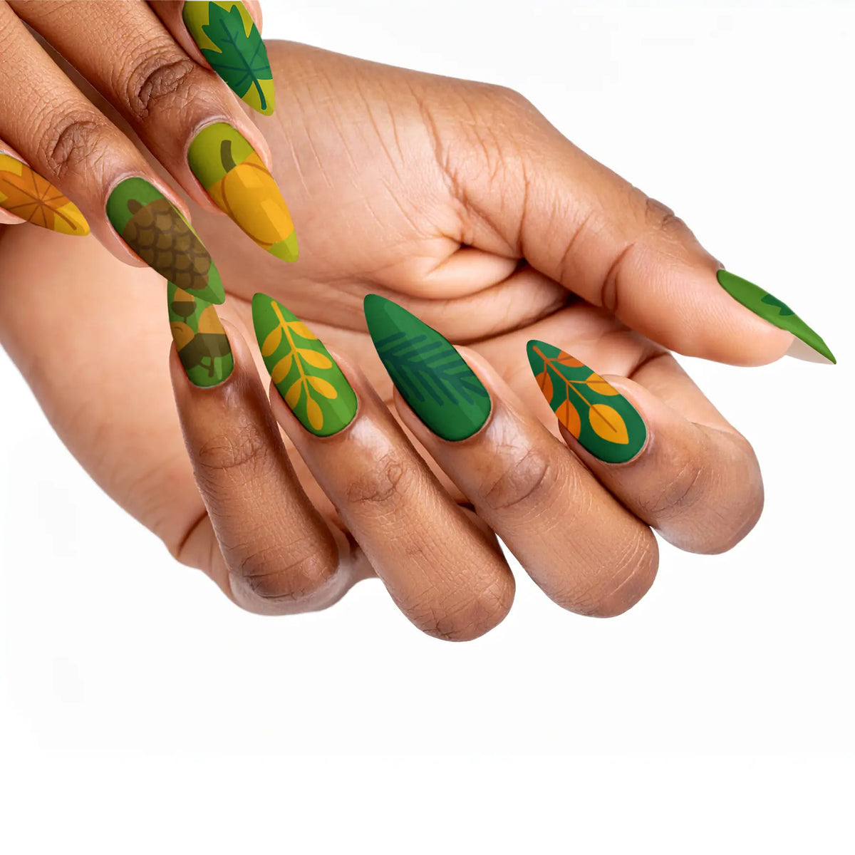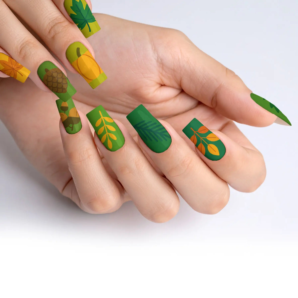 Step into a world of natural elegance with our Verdant Whirl Green Fall Press-On Nails, designed for those who adore the rich allure of green. This collection features 12 exclusive designs, each capturing the essence of the season's transition from the golden tones of autumn to the deep greens of evergreen forests. Enjoy salon-like quality in the comfort of your home, with shades that bring the vibrancy of nature to your fingertips.