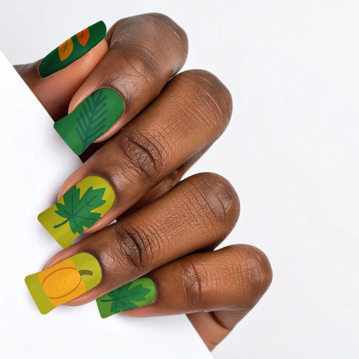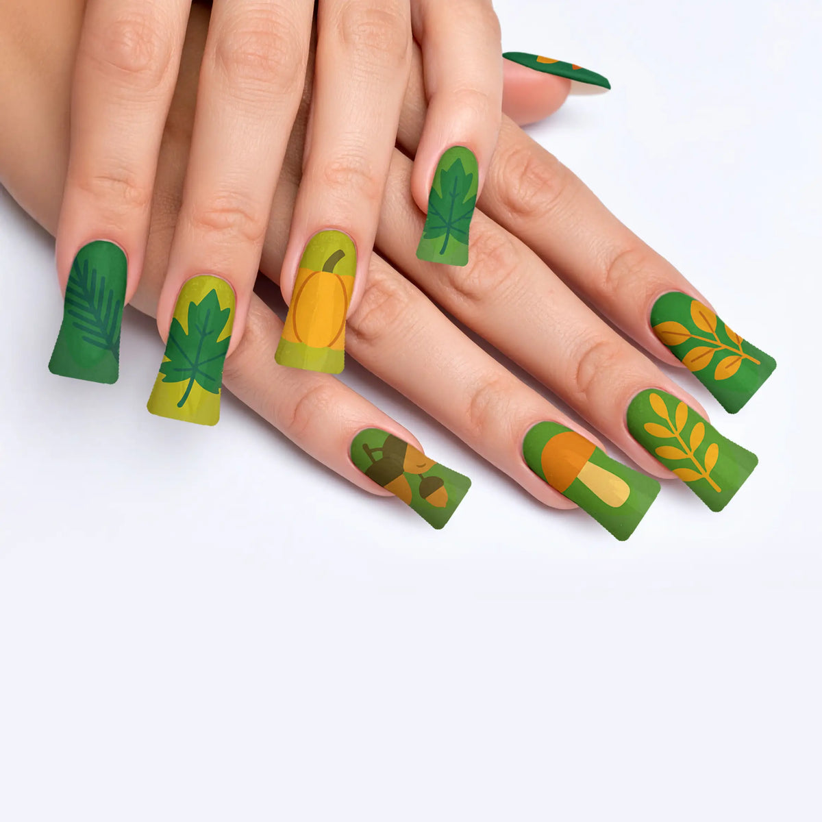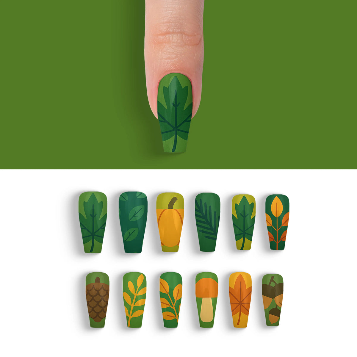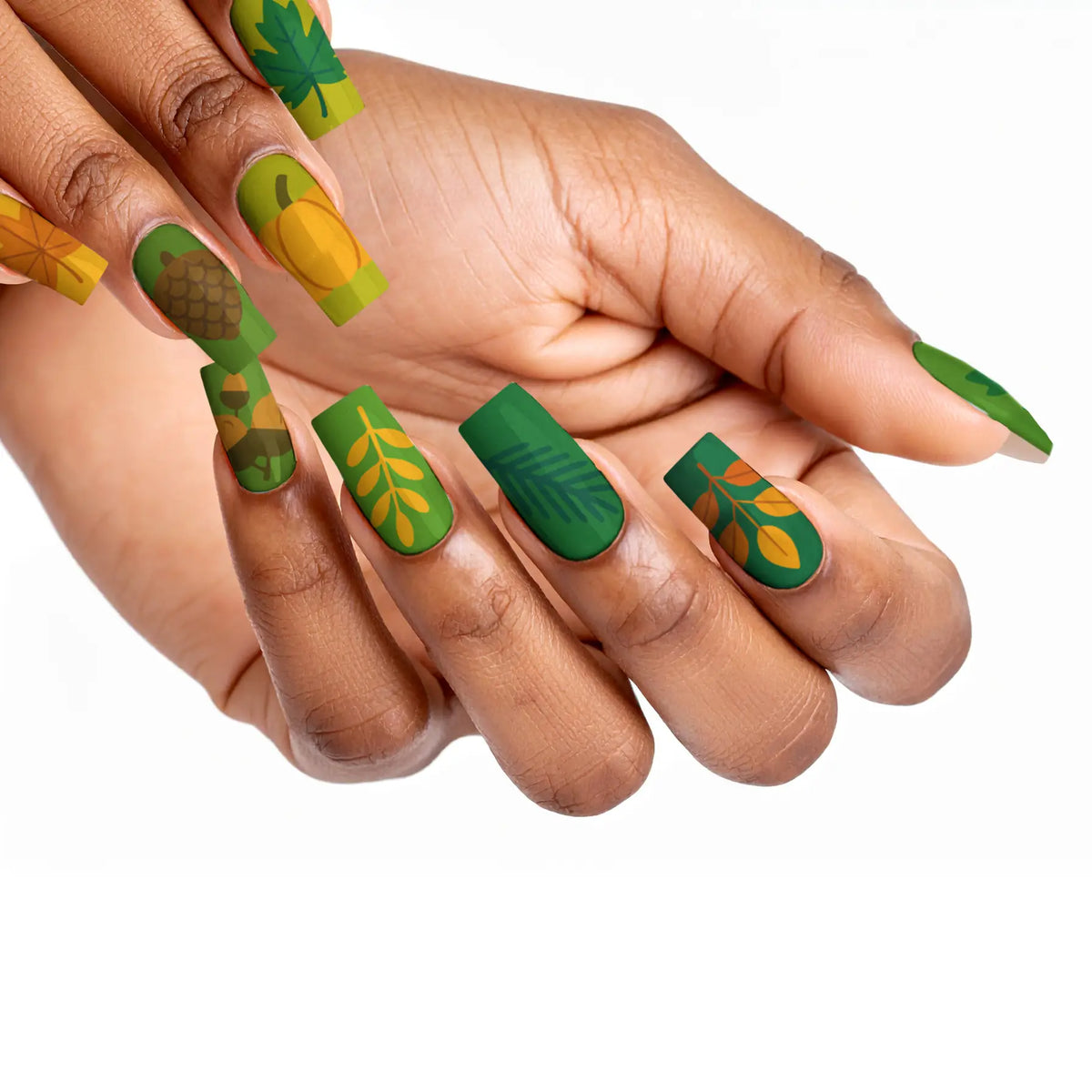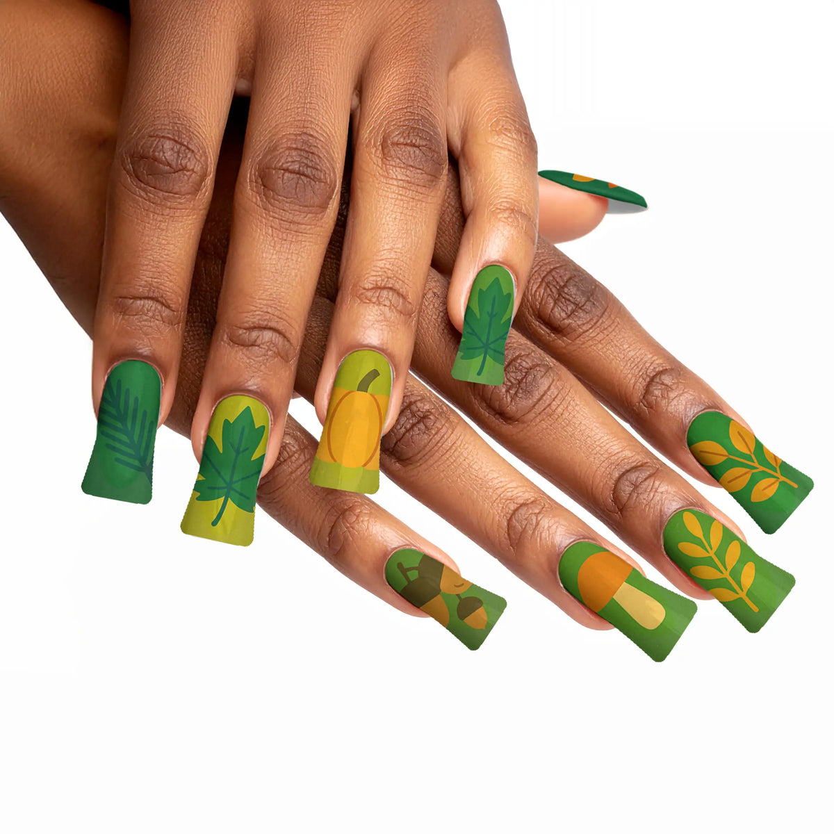 Step into a world of natural elegance with our Verdant Whirl Green Fall Press-On Nails, designed for those who adore the rich allure of green. This collection features 12 exclusive designs, each capturing the essence of the season's transition from the golden tones of autumn to the deep greens of evergreen forests. Enjoy salon-like quality in the comfort of your home, with shades that bring the vibrancy of nature to your fingertips.