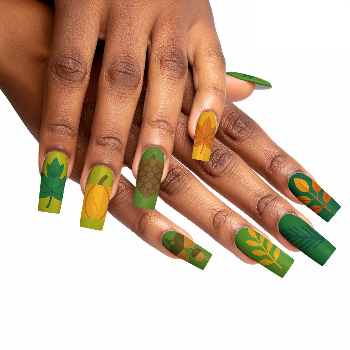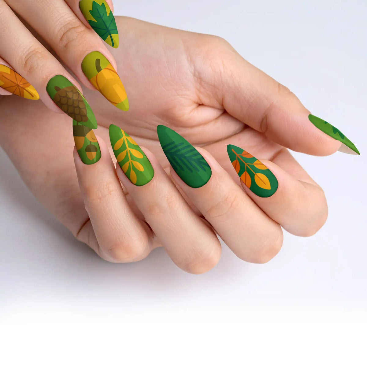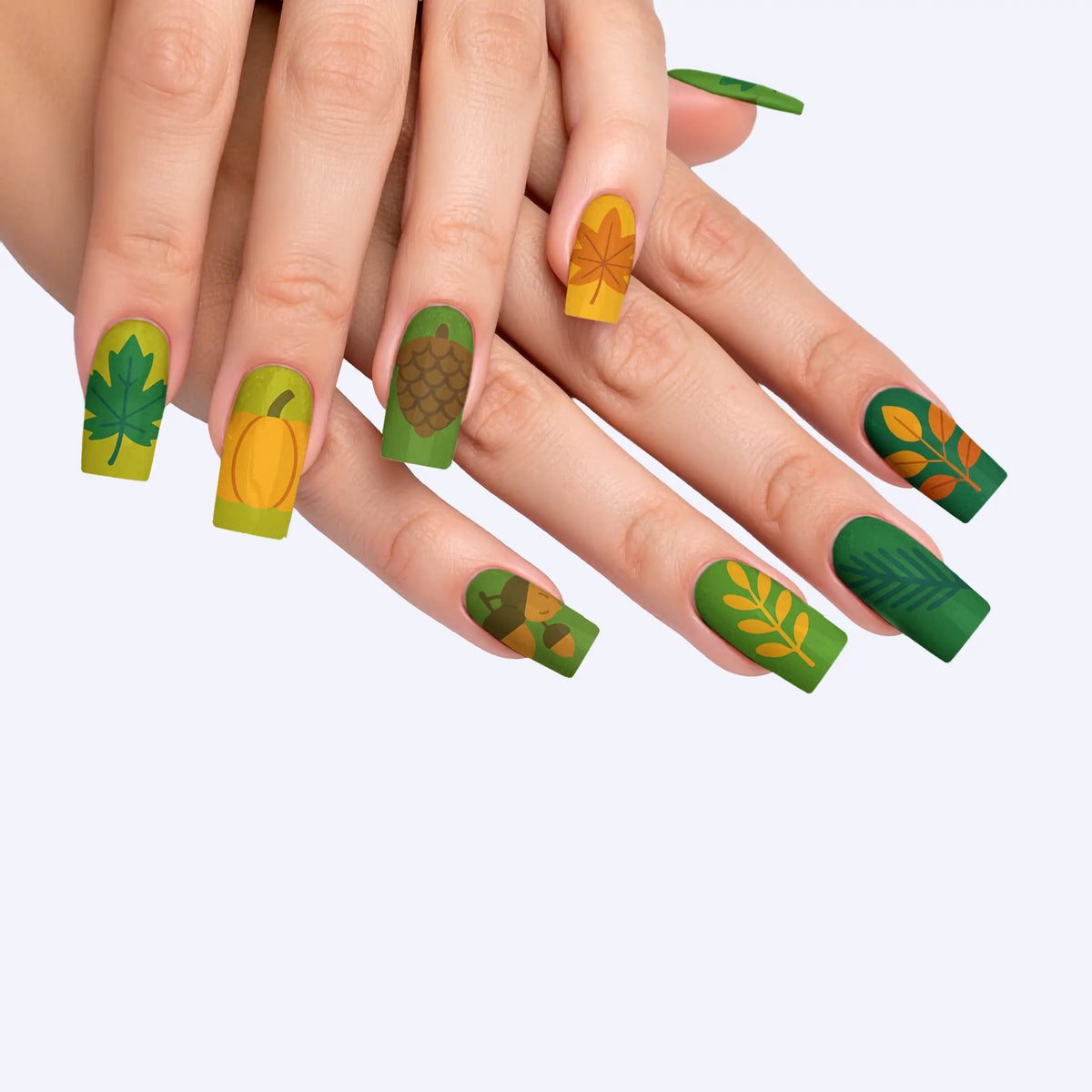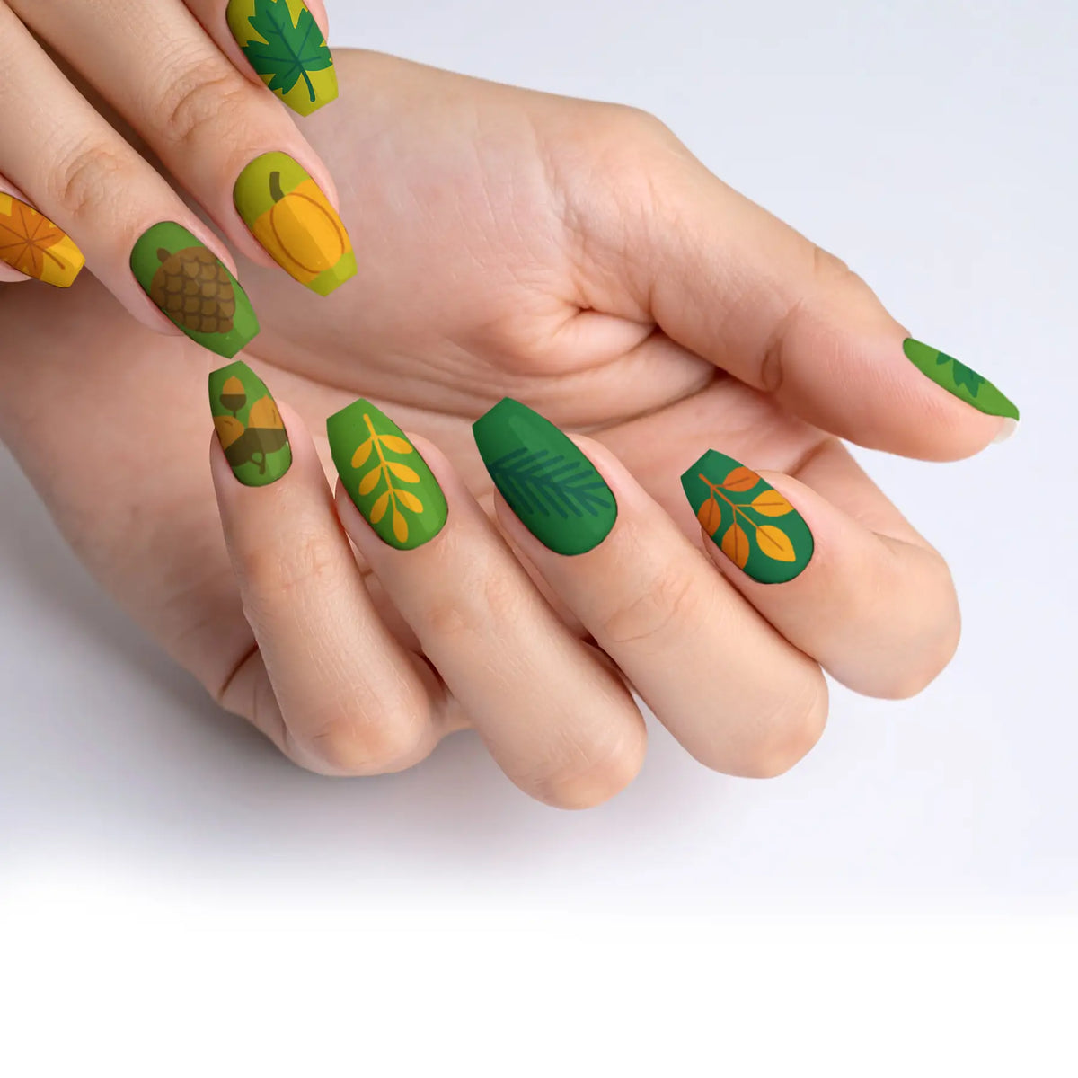 Step into a world of natural elegance with our Verdant Whirl Green Fall Press-On Nails, designed for those who adore the rich allure of green. This collection features 12 exclusive designs, each capturing the essence of the season's transition from the golden tones of autumn to the deep greens of evergreen forests. Enjoy salon-like quality in the comfort of your home, with shades that bring the vibrancy of nature to your fingertips.