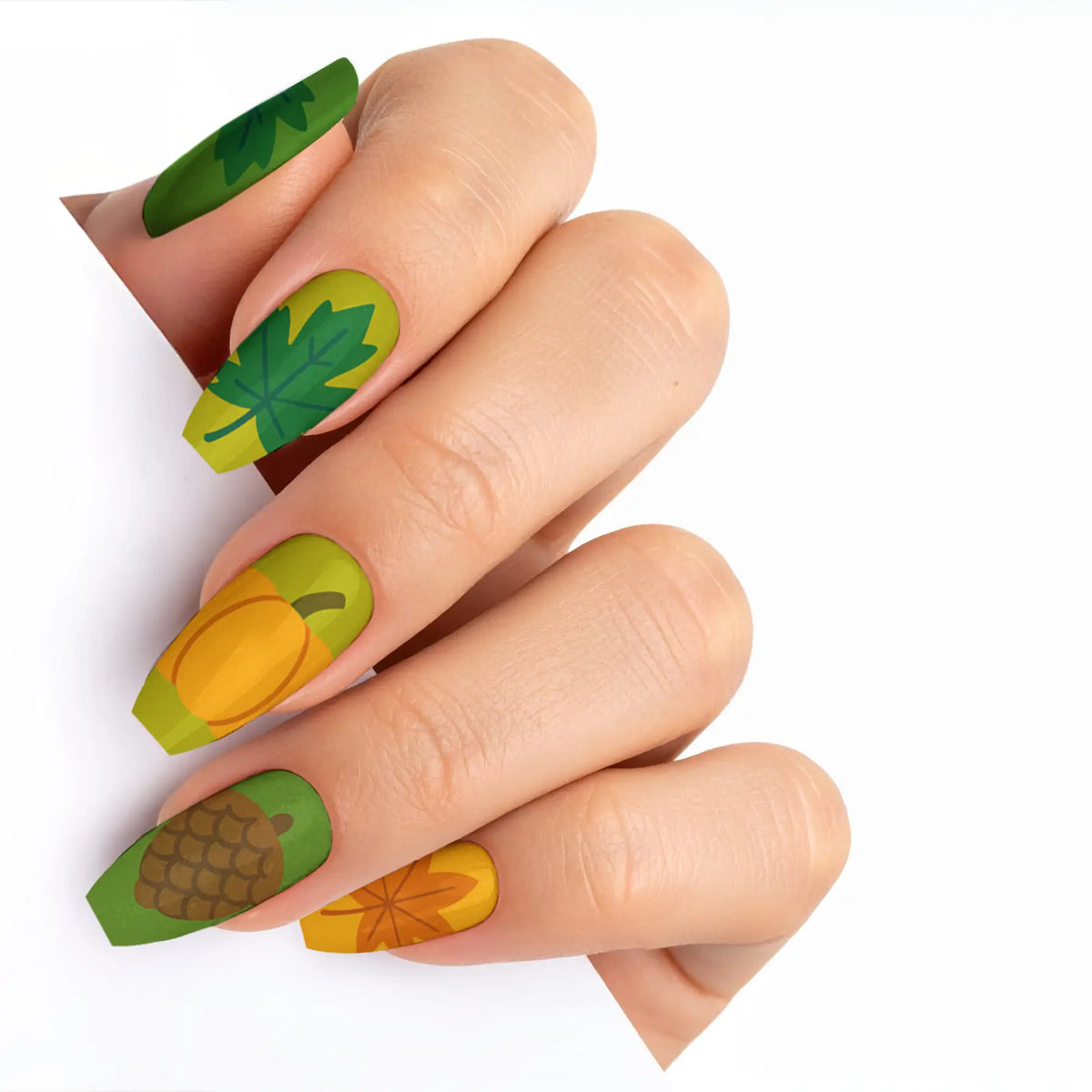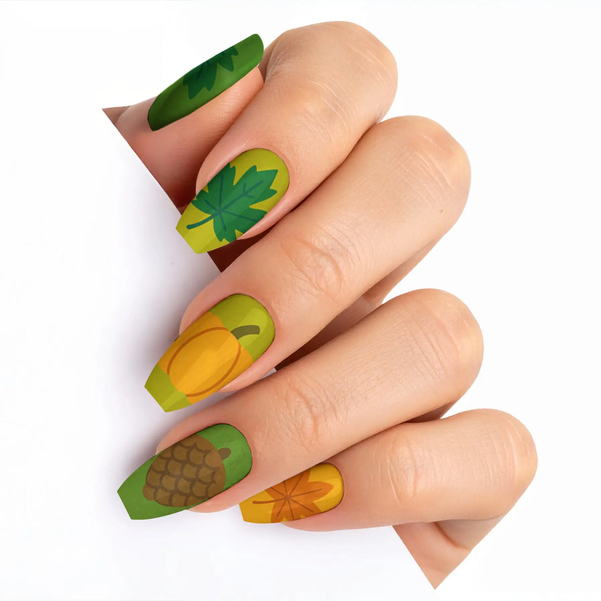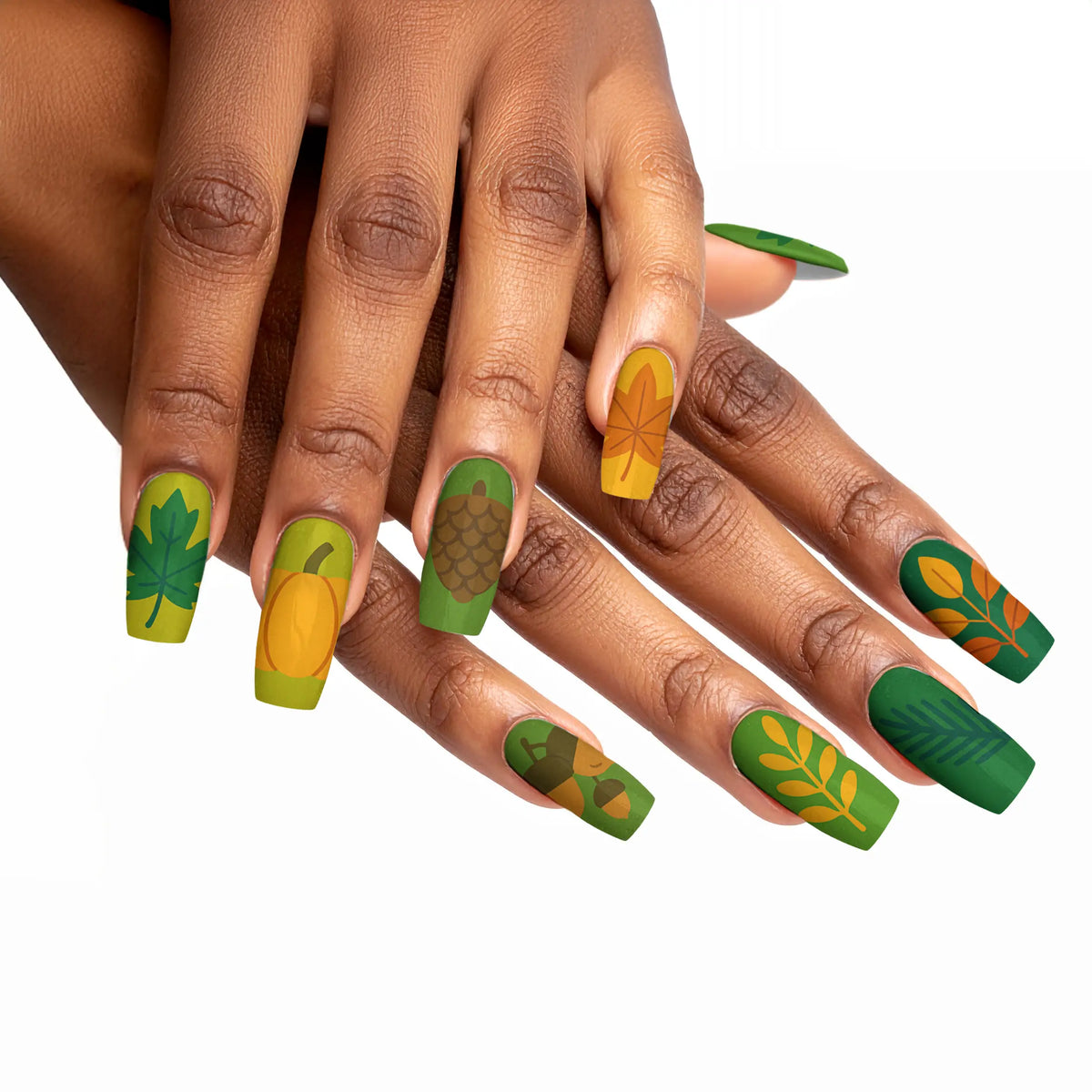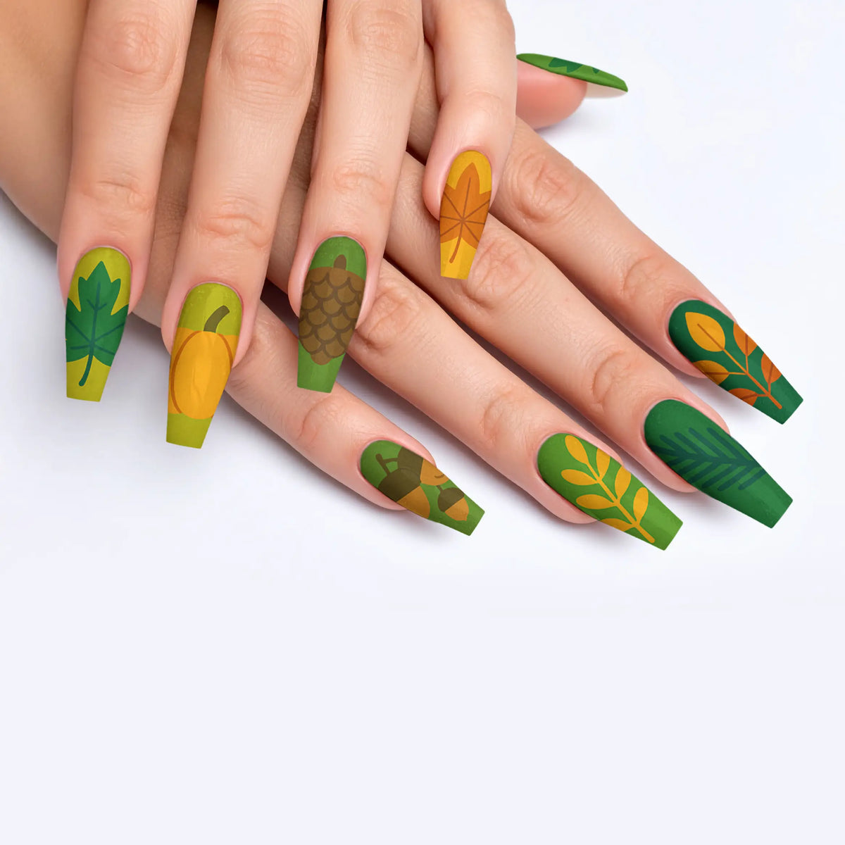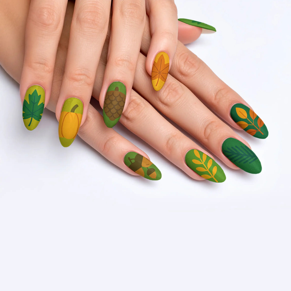 Step into a world of natural elegance with our Verdant Whirl Green Fall Press-On Nails, designed for those who adore the rich allure of green. This collection features 12 exclusive designs, each capturing the essence of the season's transition from the golden tones of autumn to the deep greens of evergreen forests. Enjoy salon-like quality in the comfort of your home, with shades that bring the vibrancy of nature to your fingertips.
