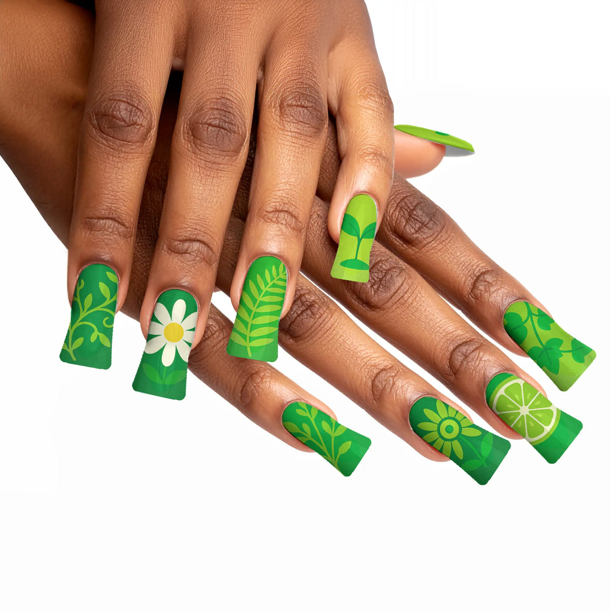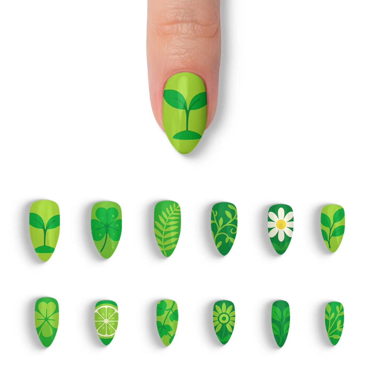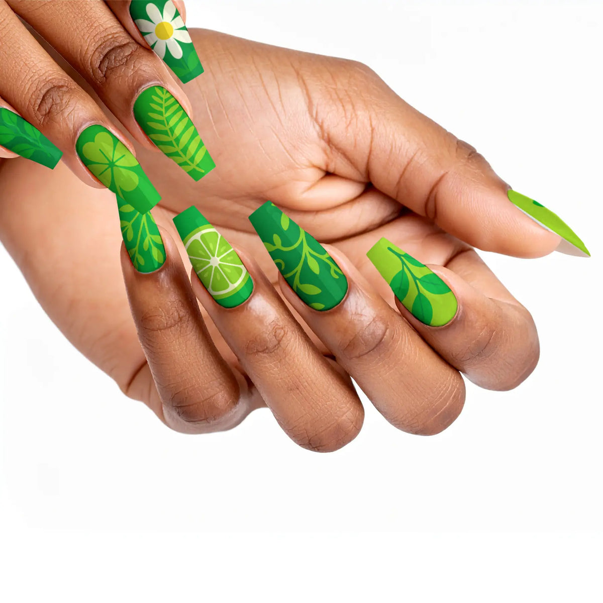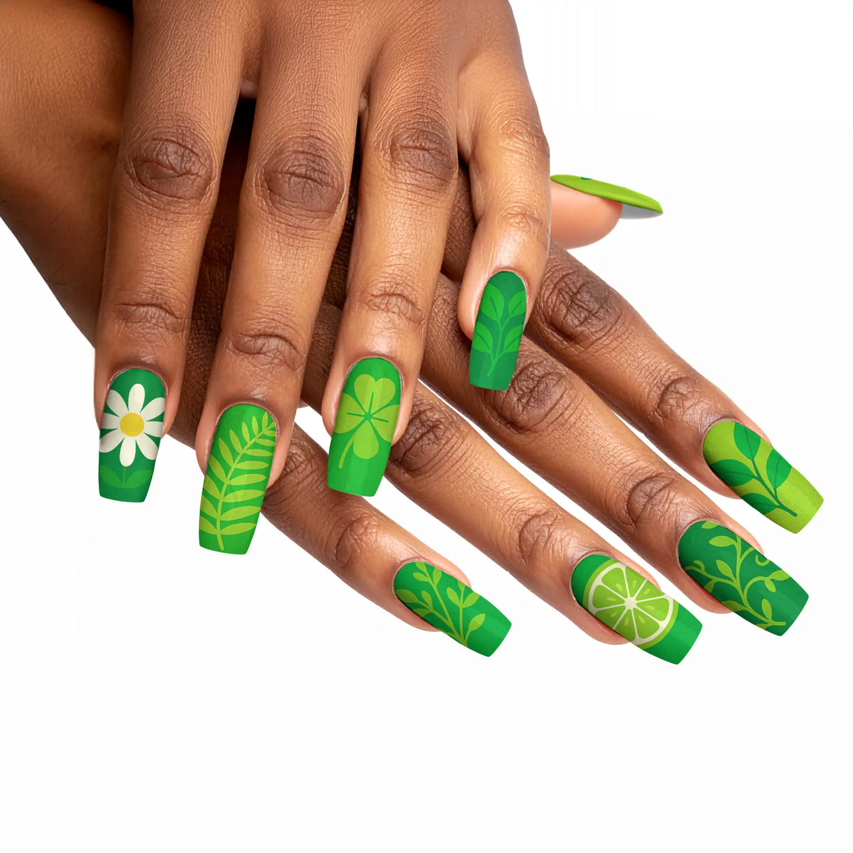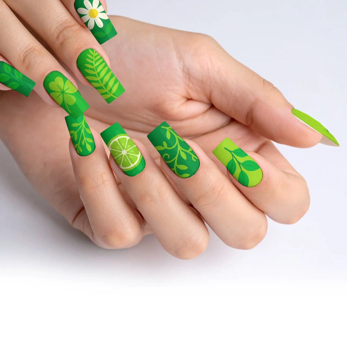 Embrace the essence of spring with our captivating set of press-on nails, designed to reflect the vibrant greens found in nature's revival. Each nail features a stunning shade that ranges from fresh mint to rich emerald, capturing the spirit of renewal and growth. Perfect for adding a touch of elegance to any ensemble, these nails deliver a salon-quality finish that elevates your style without the need for a professional appointment. Ideal for a garden party or a simple daily refresh, they add a delightful burst of color to any outfit.