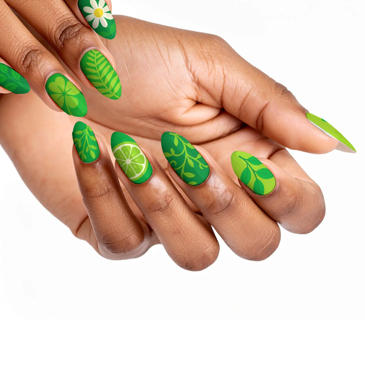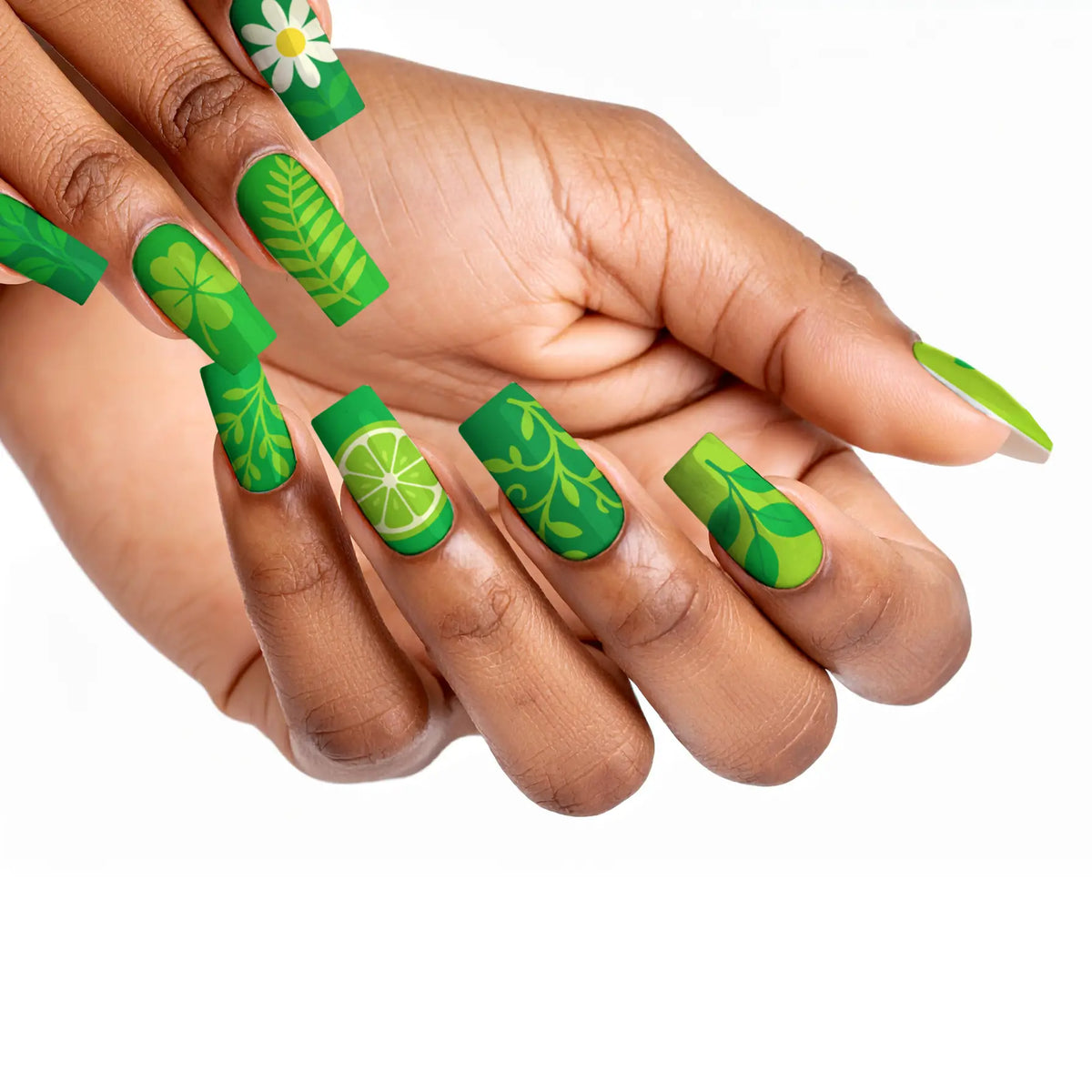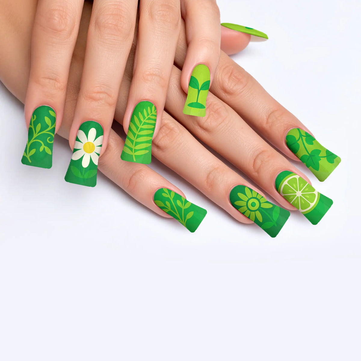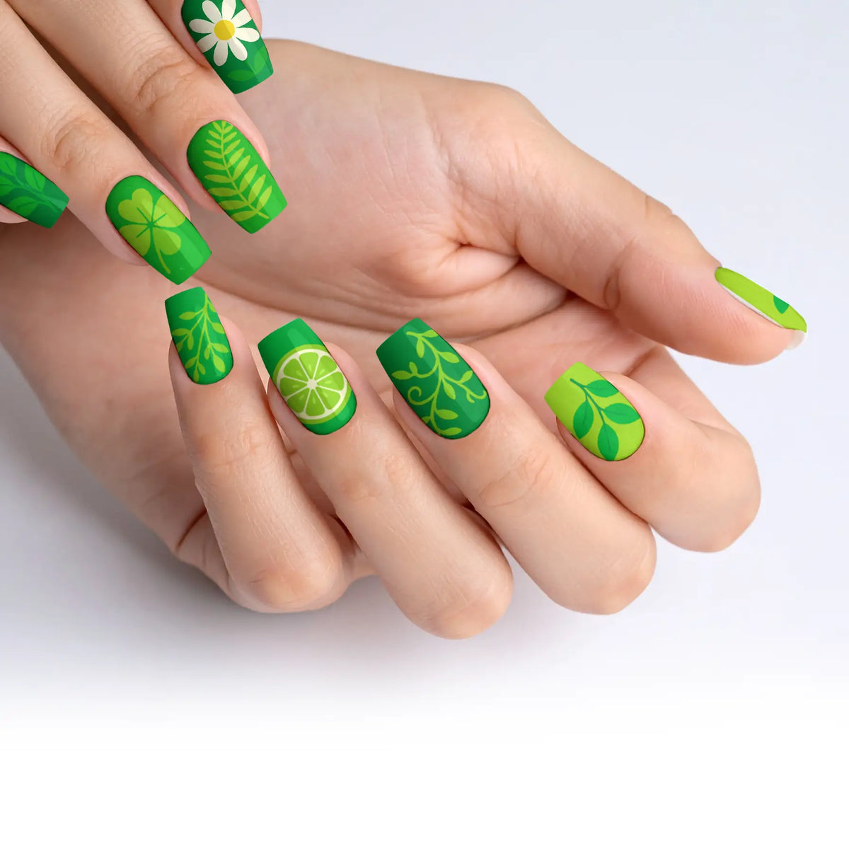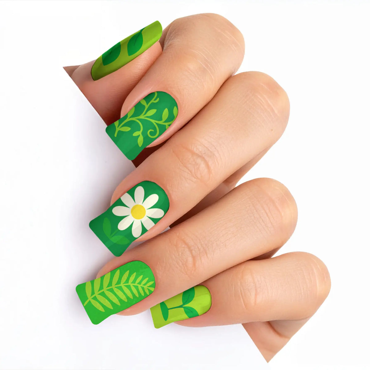 Embrace the essence of spring with our captivating set of press-on nails, designed to reflect the vibrant greens found in nature's revival. Each nail features a stunning shade that ranges from fresh mint to rich emerald, capturing the spirit of renewal and growth. Perfect for adding a touch of elegance to any ensemble, these nails deliver a salon-quality finish that elevates your style without the need for a professional appointment. Ideal for a garden party or a simple daily refresh, they add a delightful burst of color to any outfit.