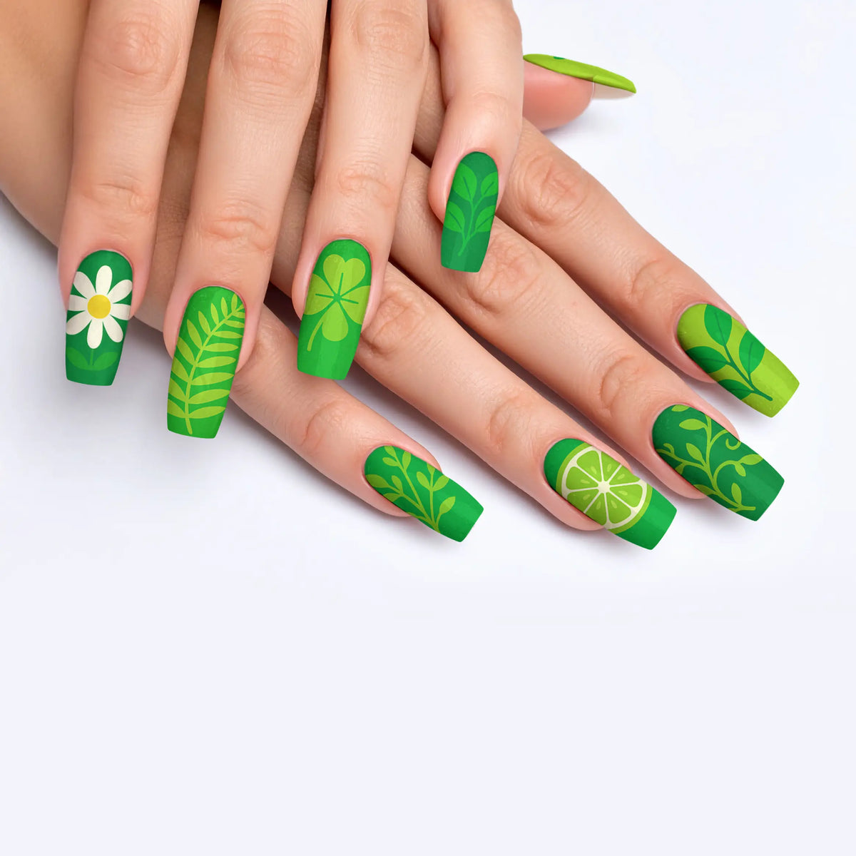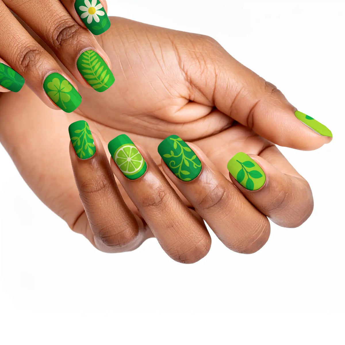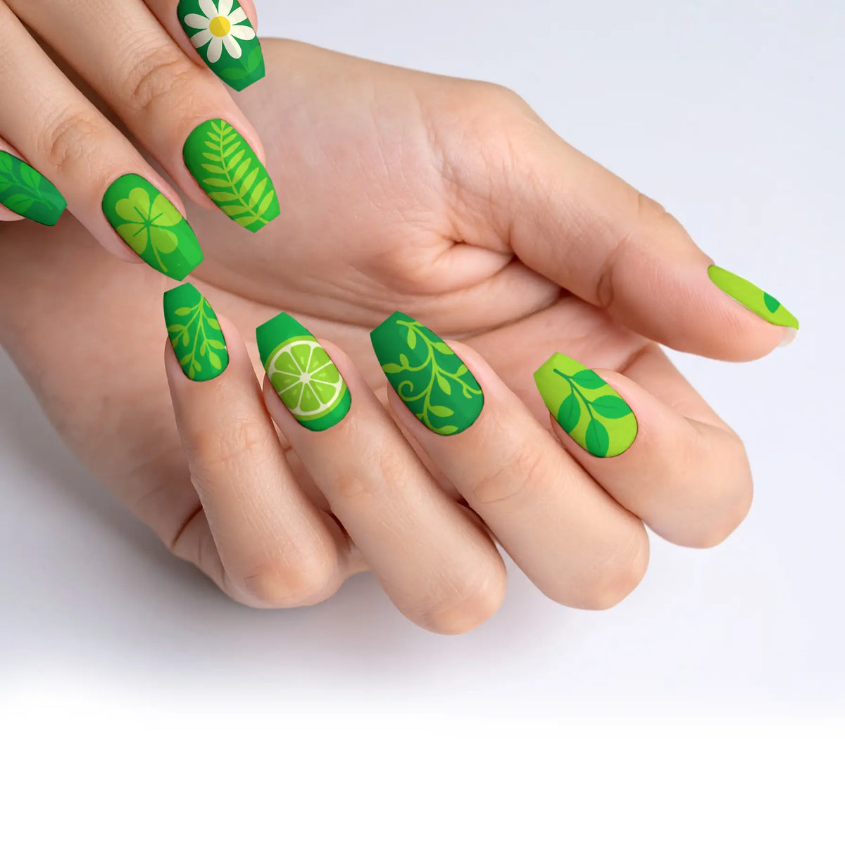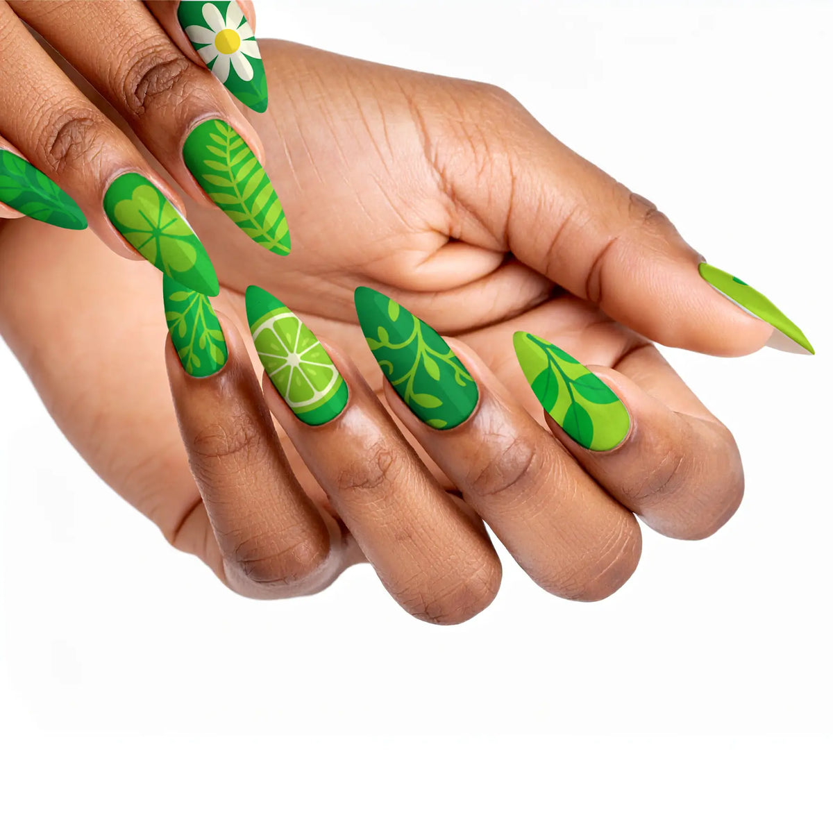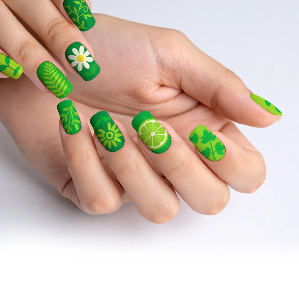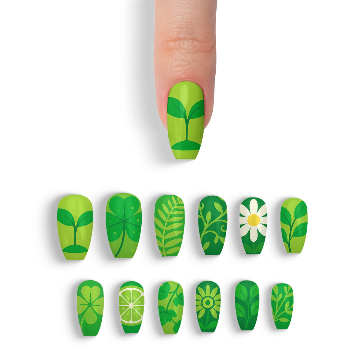 Embrace the essence of spring with our captivating set of press-on nails, designed to reflect the vibrant greens found in nature's revival. Each nail features a stunning shade that ranges from fresh mint to rich emerald, capturing the spirit of renewal and growth. Perfect for adding a touch of elegance to any ensemble, these nails deliver a salon-quality finish that elevates your style without the need for a professional appointment. Ideal for a garden party or a simple daily refresh, they add a delightful burst of color to any outfit.
