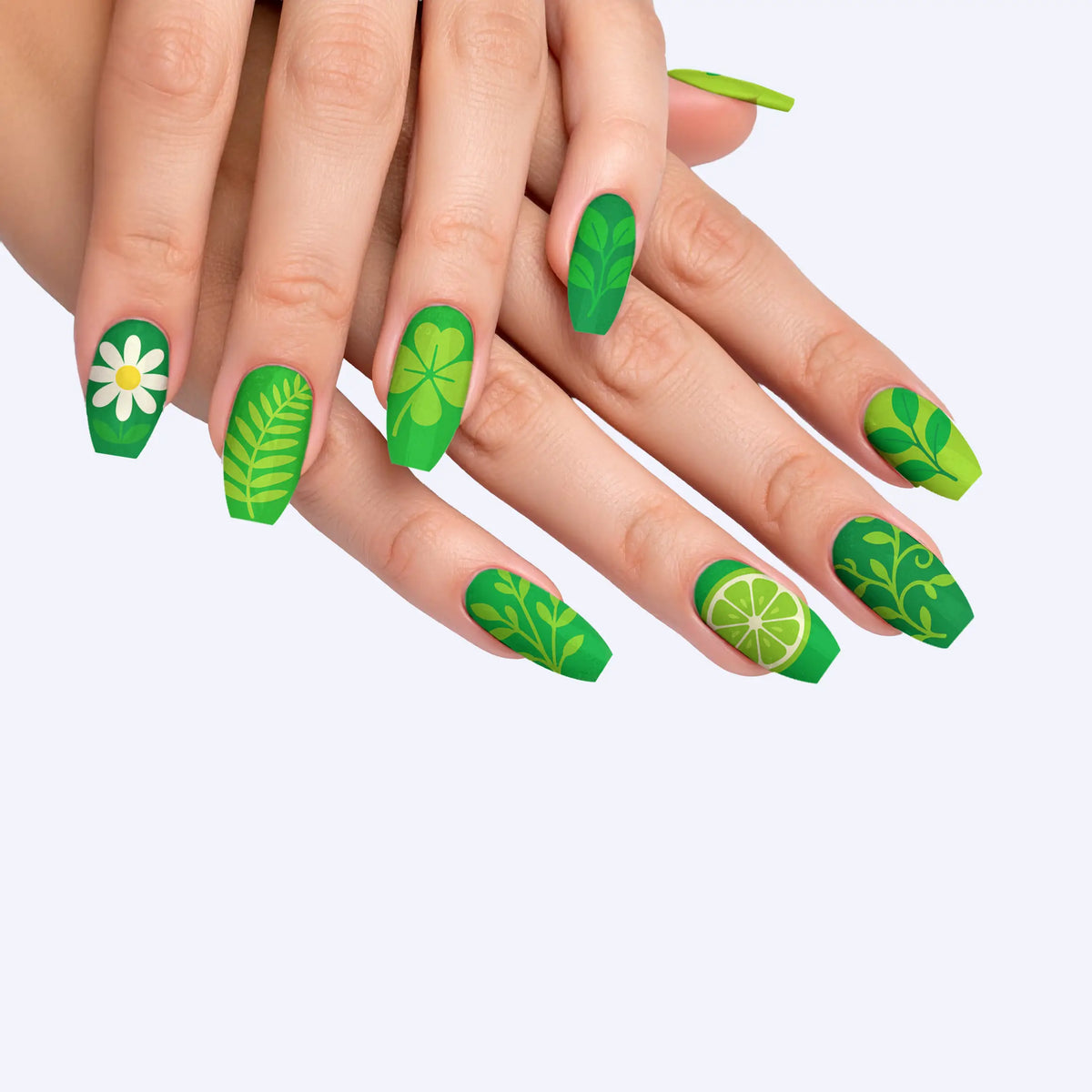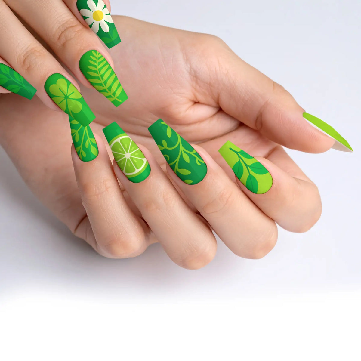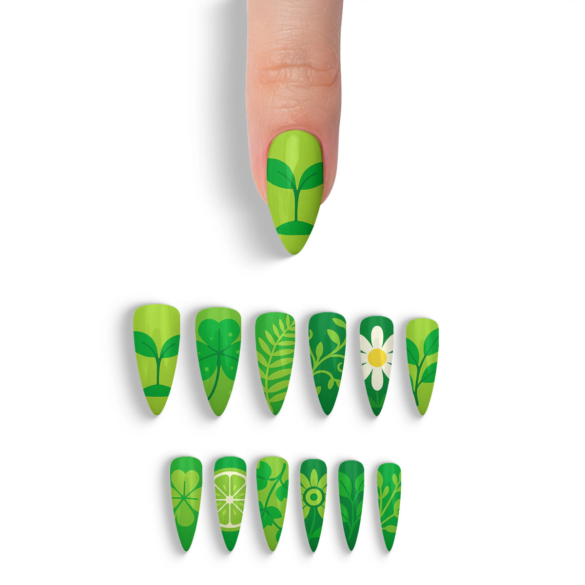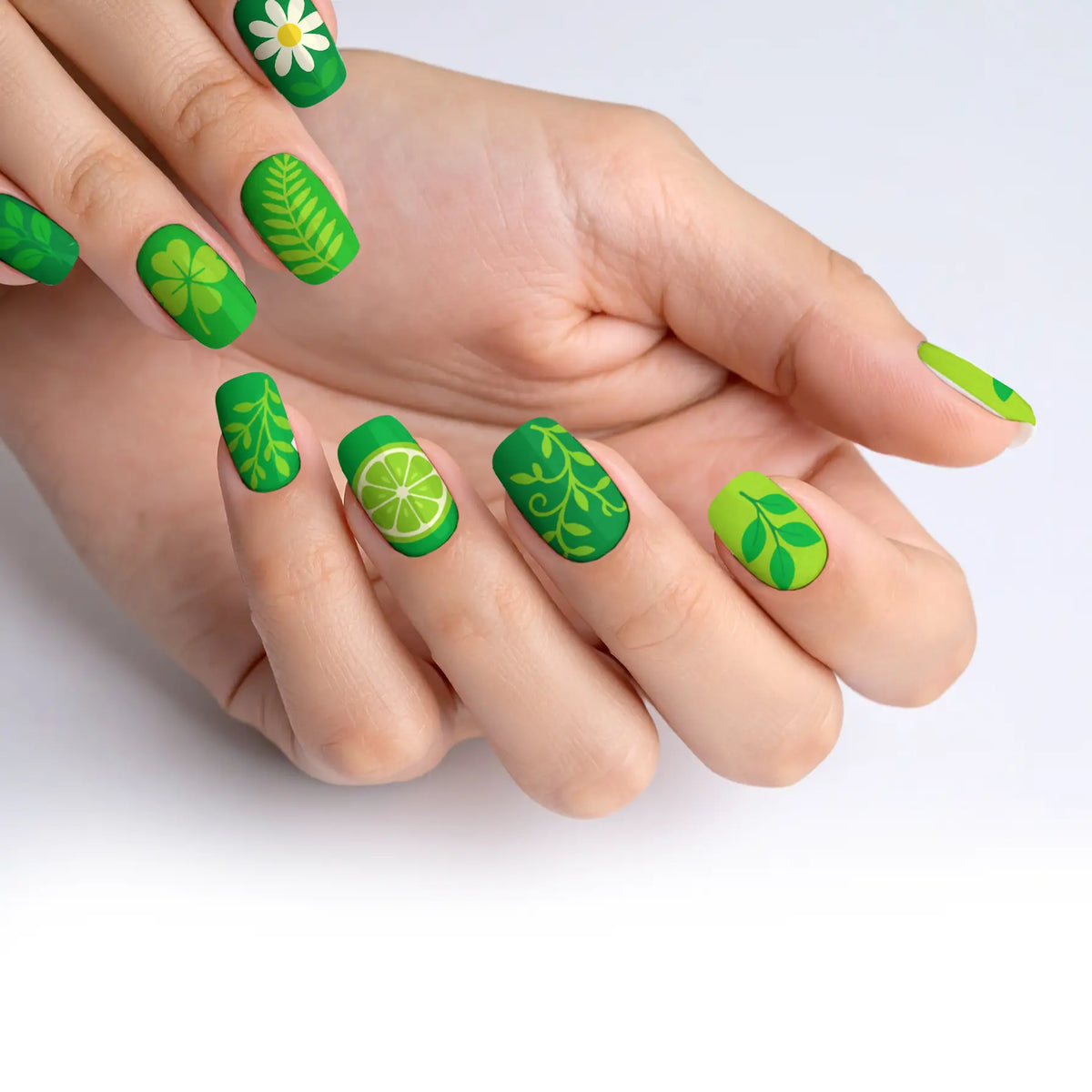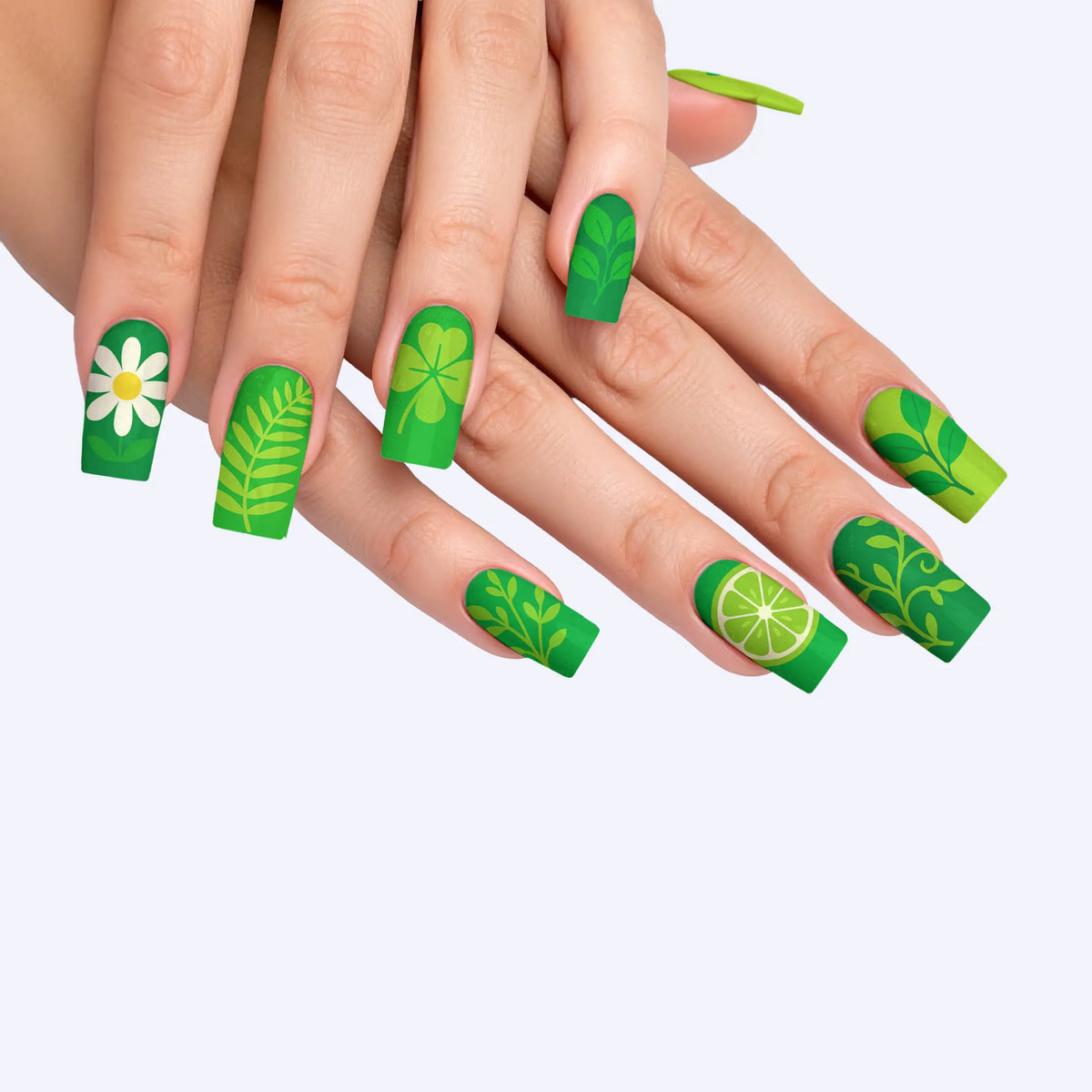 Embrace the essence of spring with our captivating set of press-on nails, designed to reflect the vibrant greens found in nature's revival. Each nail features a stunning shade that ranges from fresh mint to rich emerald, capturing the spirit of renewal and growth. Perfect for adding a touch of elegance to any ensemble, these nails deliver a salon-quality finish that elevates your style without the need for a professional appointment. Ideal for a garden party or a simple daily refresh, they add a delightful burst of color to any outfit.