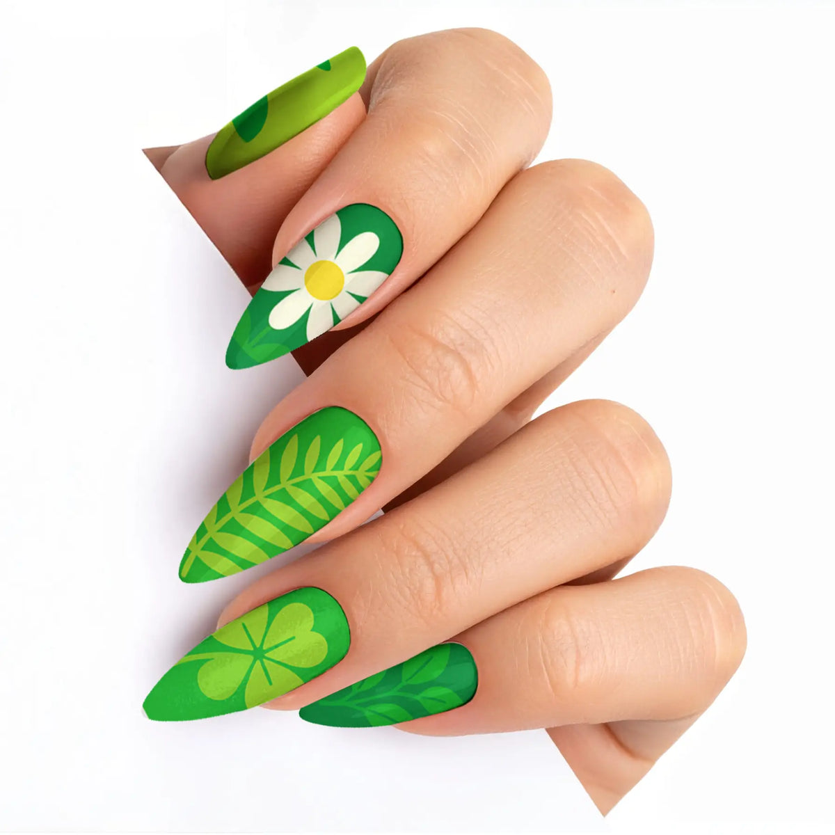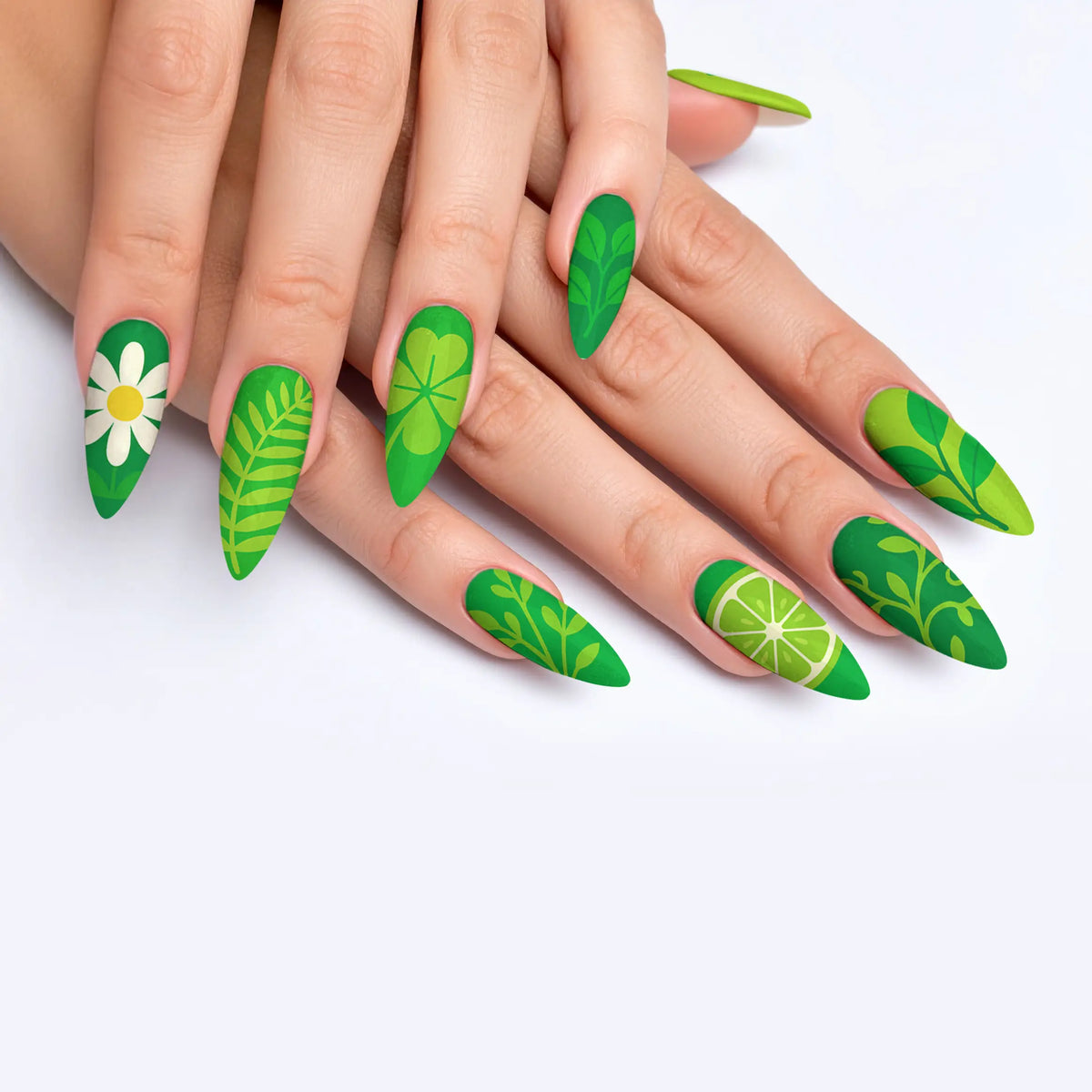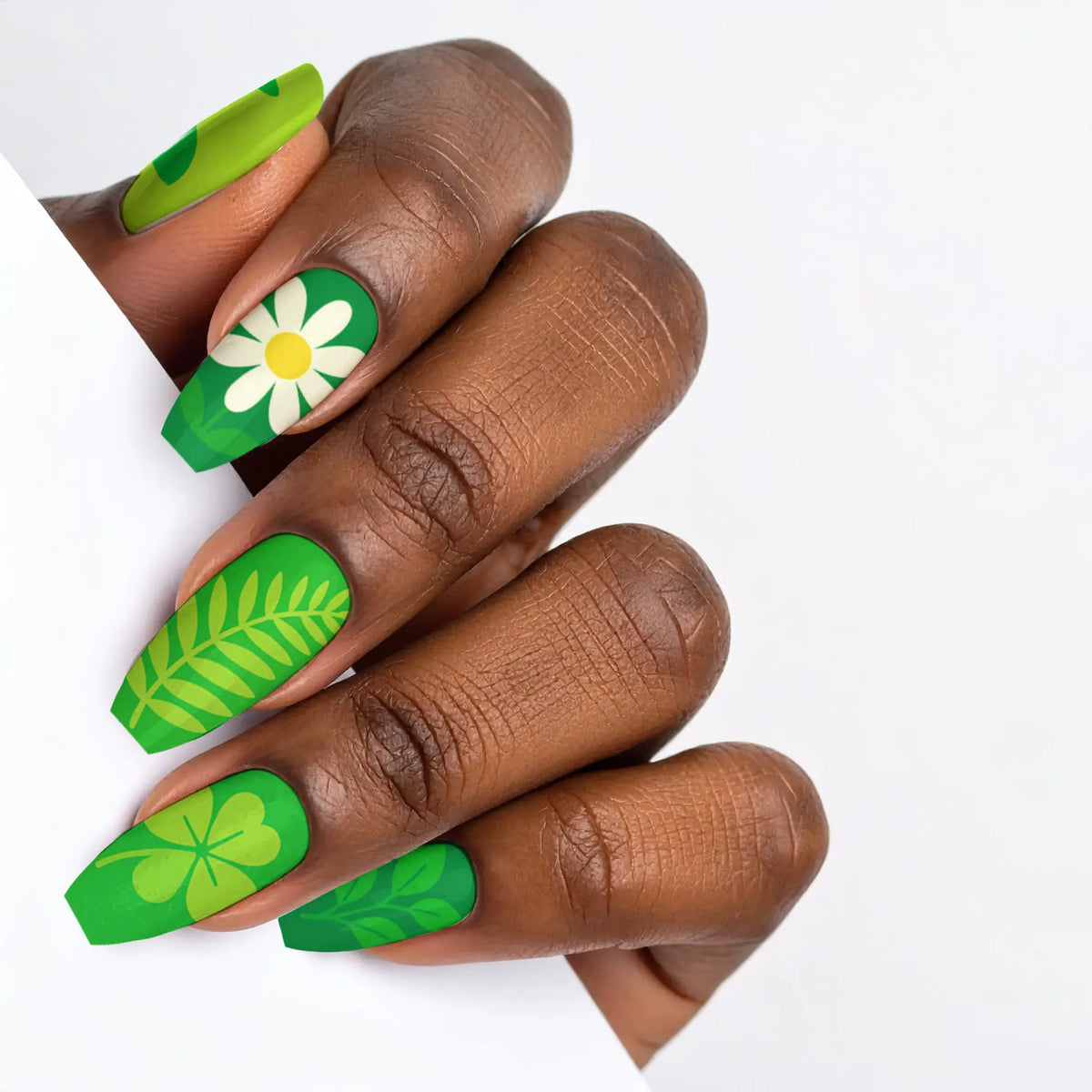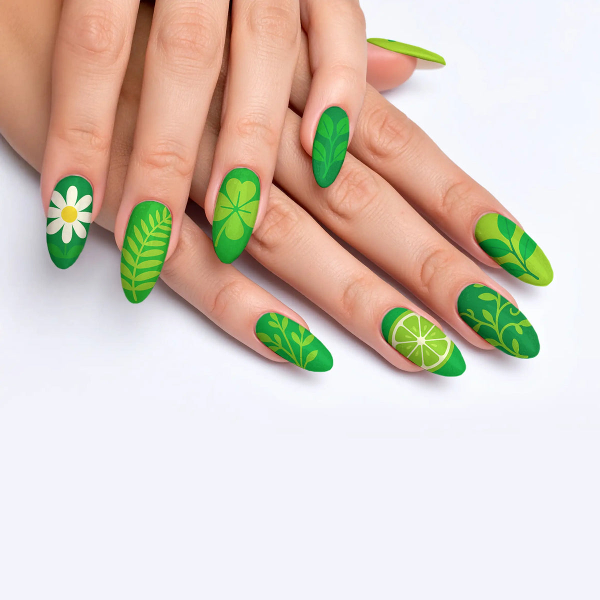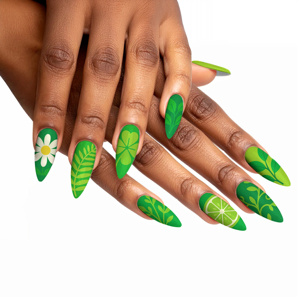Embrace the essence of spring with our captivating set of press-on nails, designed to reflect the vibrant greens found in nature's revival. Each nail features a stunning shade that ranges from fresh mint to rich emerald, capturing the spirit of renewal and growth. Perfect for adding a touch of elegance to any ensemble, these nails deliver a salon-quality finish that elevates your style without the need for a professional appointment. Ideal for a garden party or a simple daily refresh, they add a delightful burst of color to any outfit.